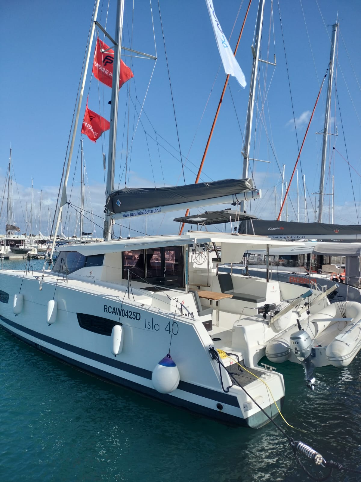 | Outside | Anker mit Kette, Außendusche, Badeleiter, Biminitop, Lifeline System |