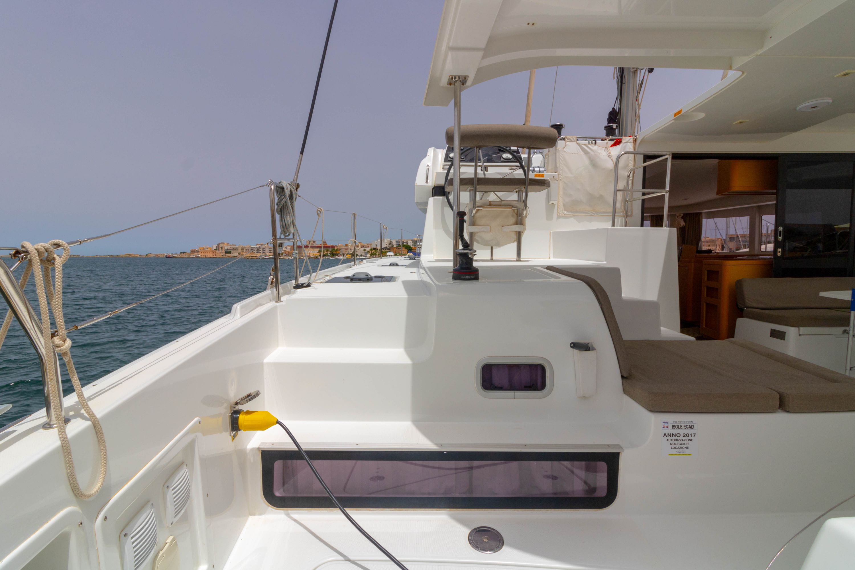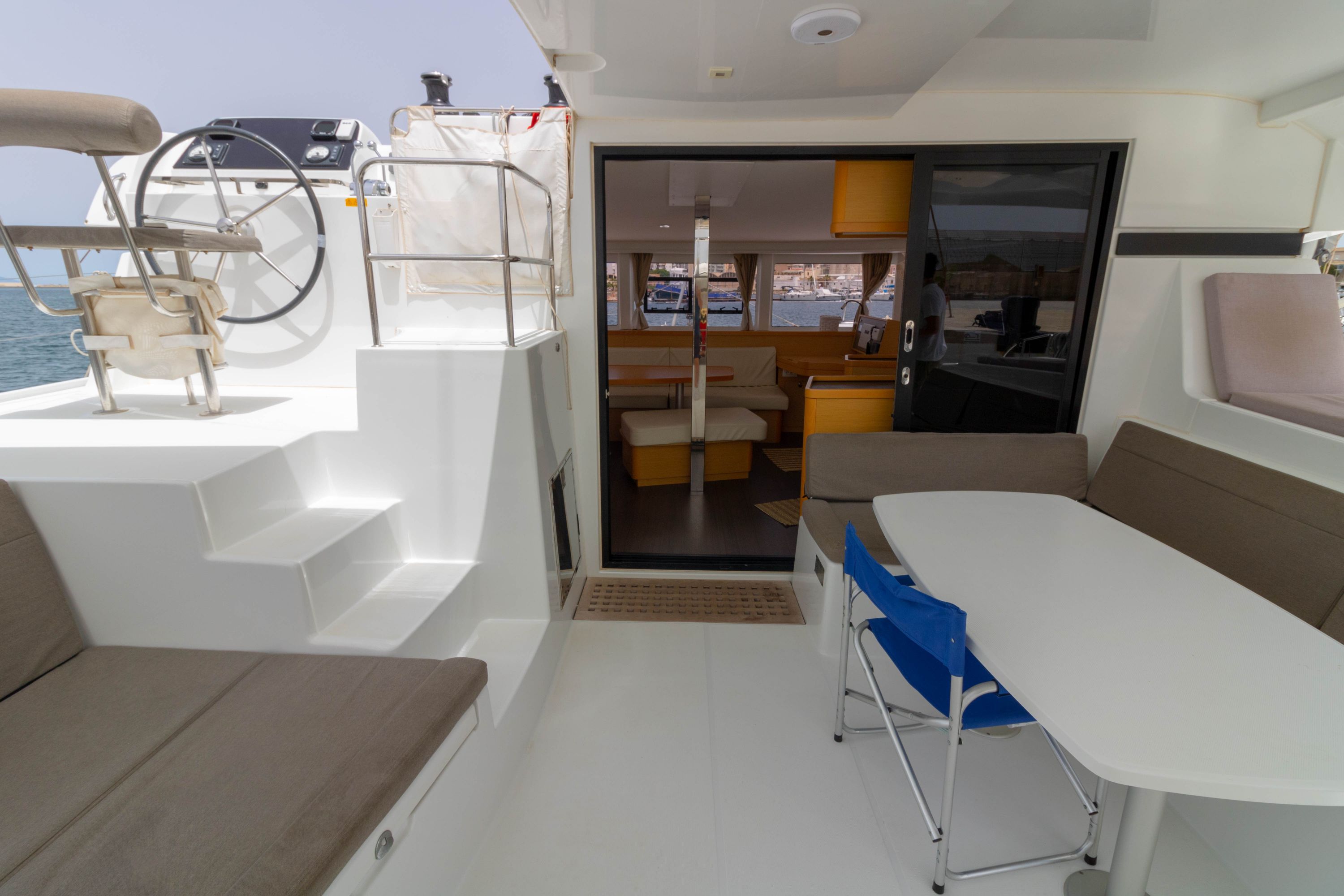 | Outside | Biminitop, Cockpittisch, elektr. Ankerwinsch, Festmacherleinen, Solaranlage, Winschen |
