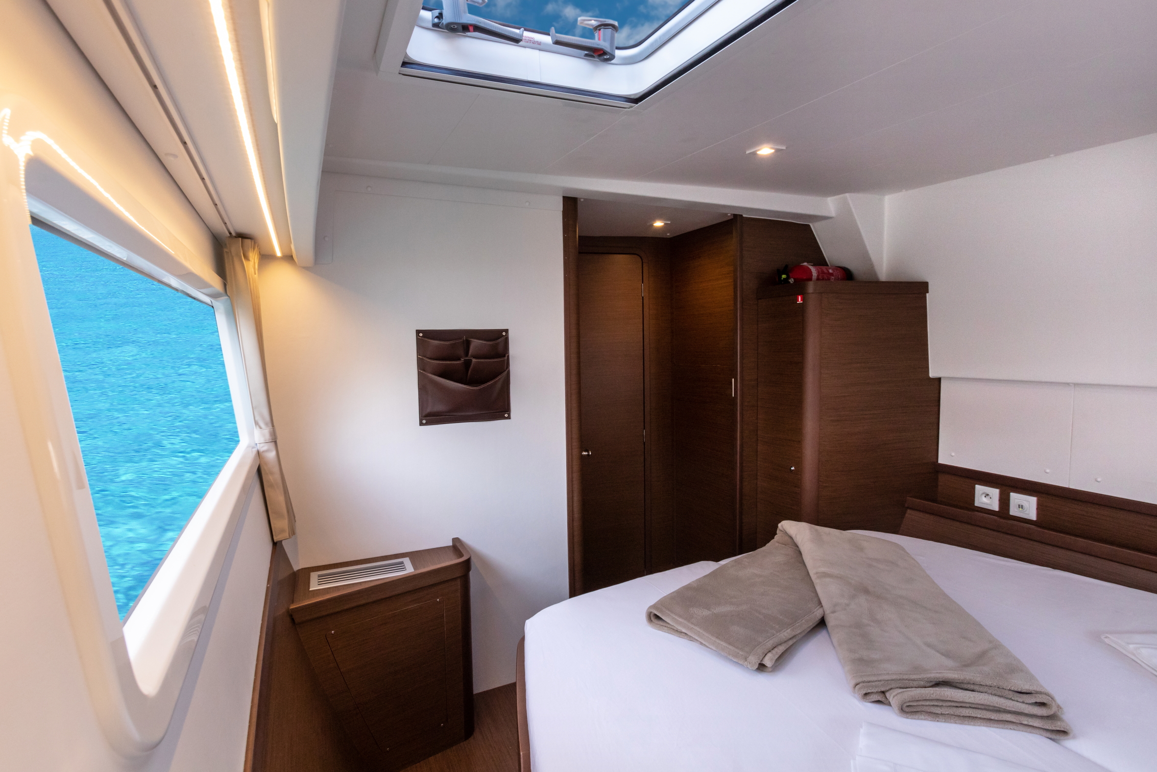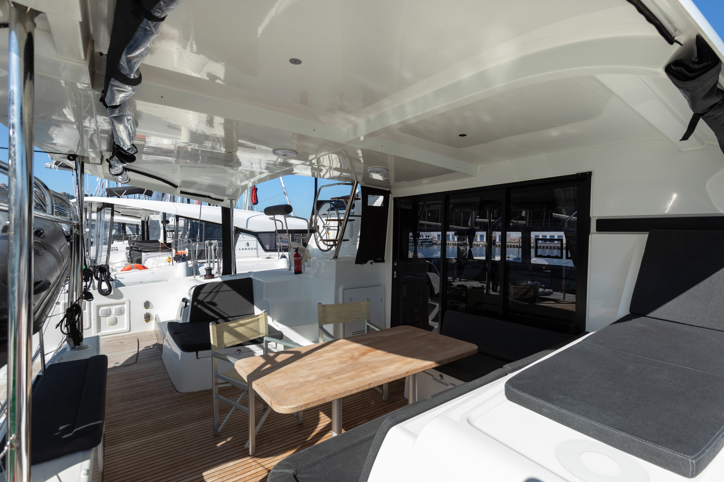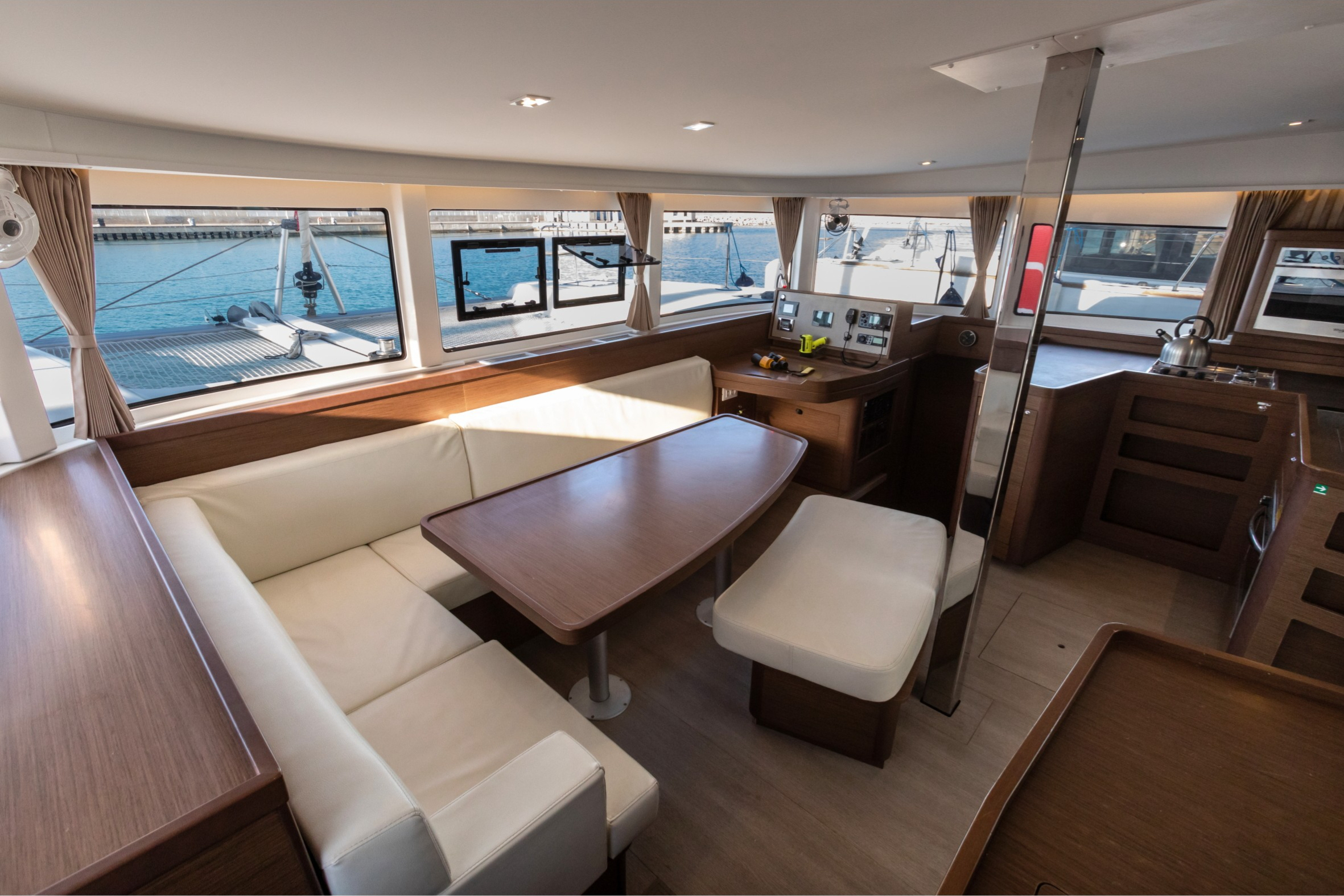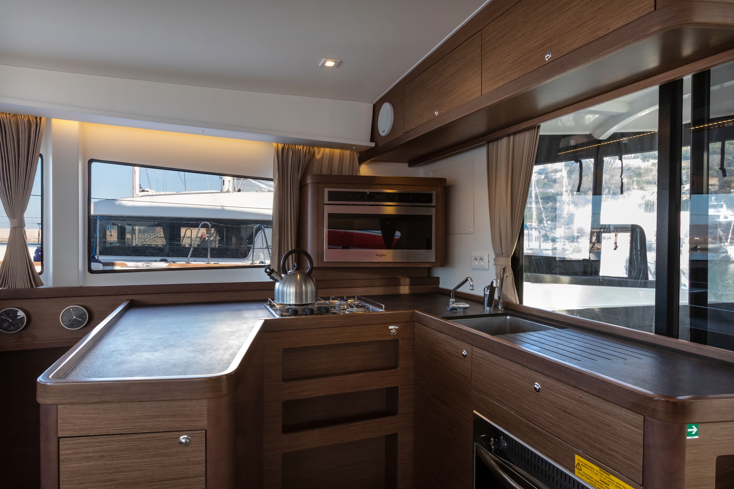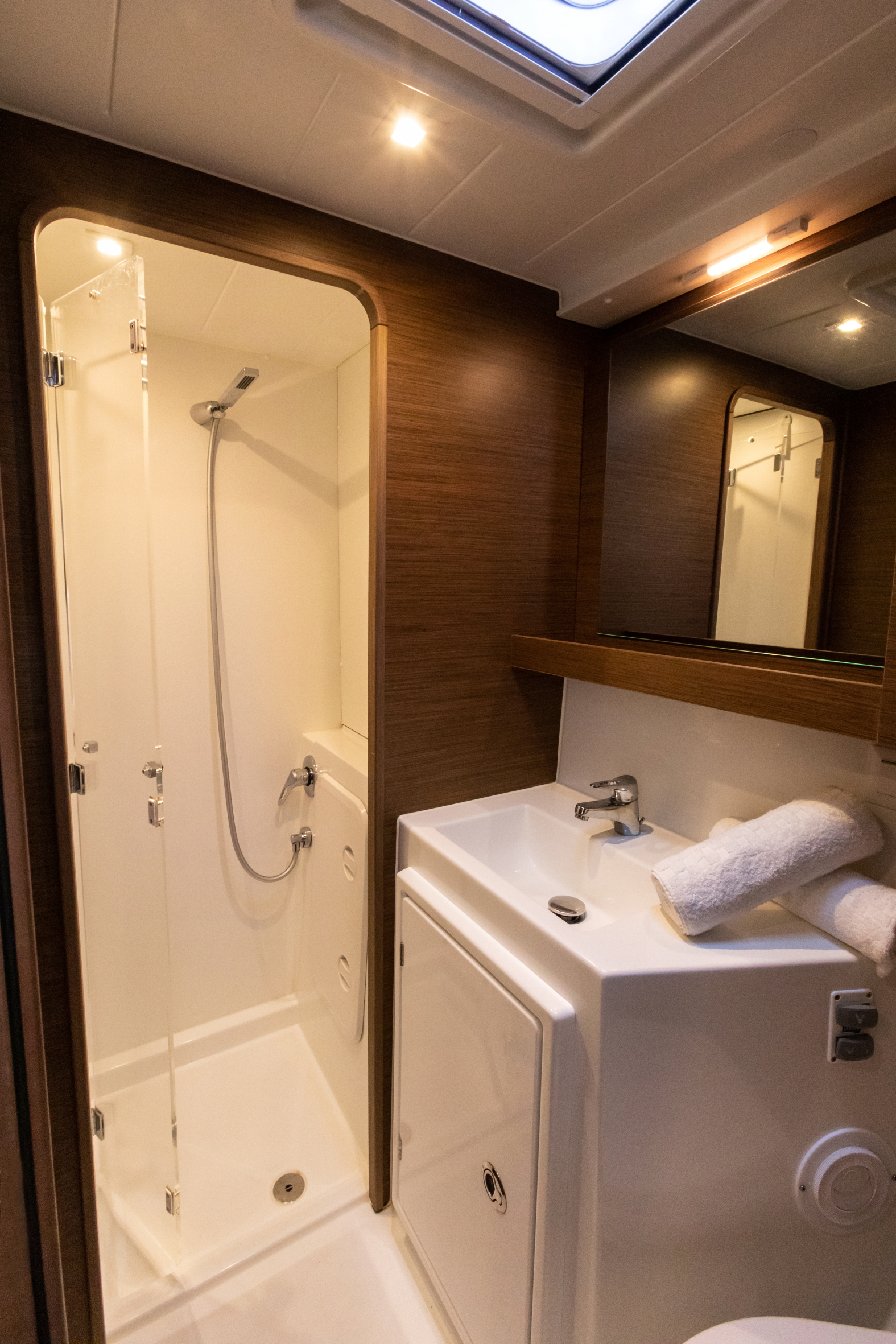 | Inside | Gasherd mit Backofen, Generator, Inverter 12V/220V, Klimaanlage (ohne Landstrombedarf), Kühlschrank, Landstromkabel, Luftpumpe für Beiboot, Mikrowelle, USB Steckdose, Ventilator, Warmwasser, Watermaker, WC (elektr.) |
