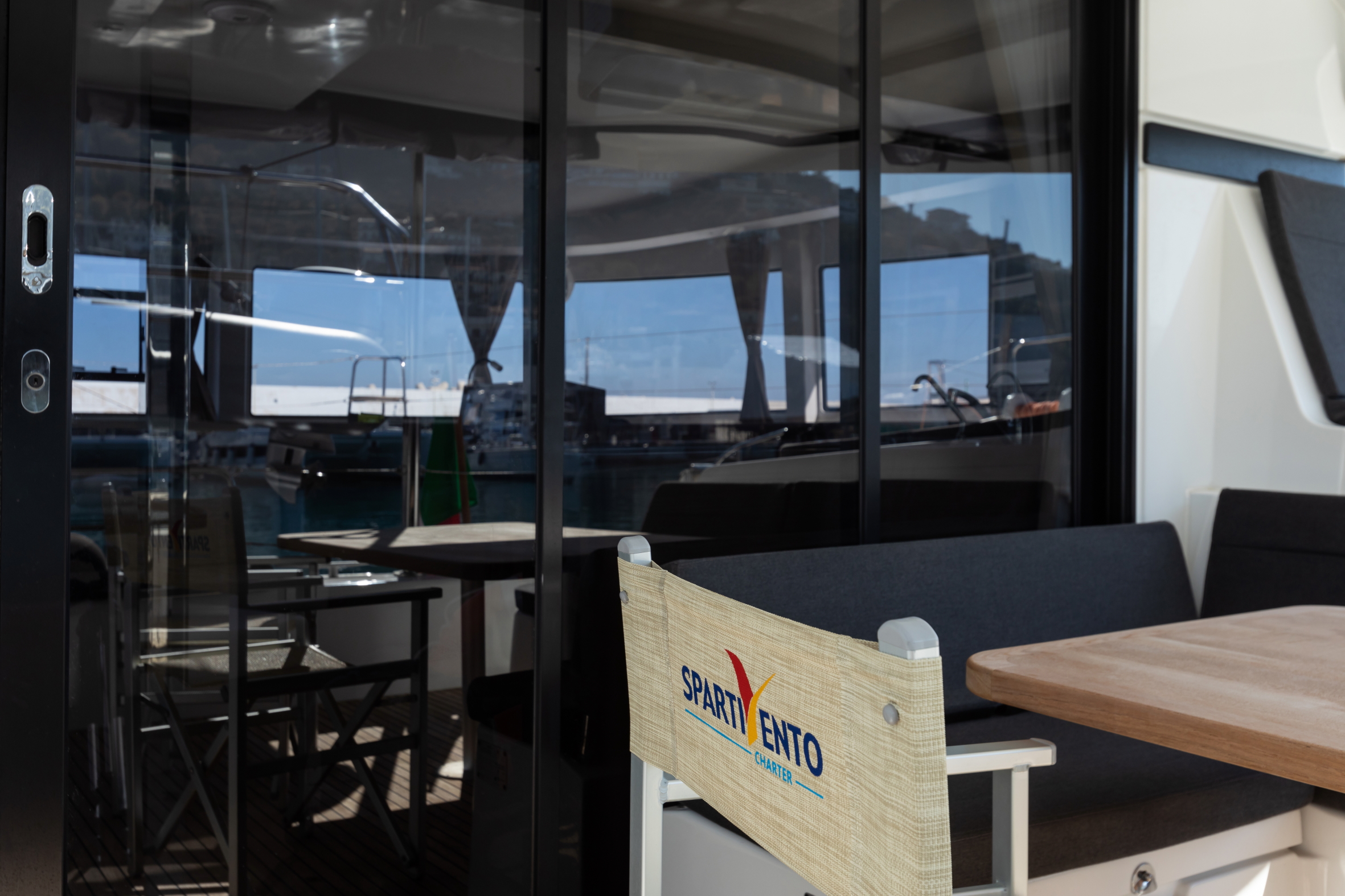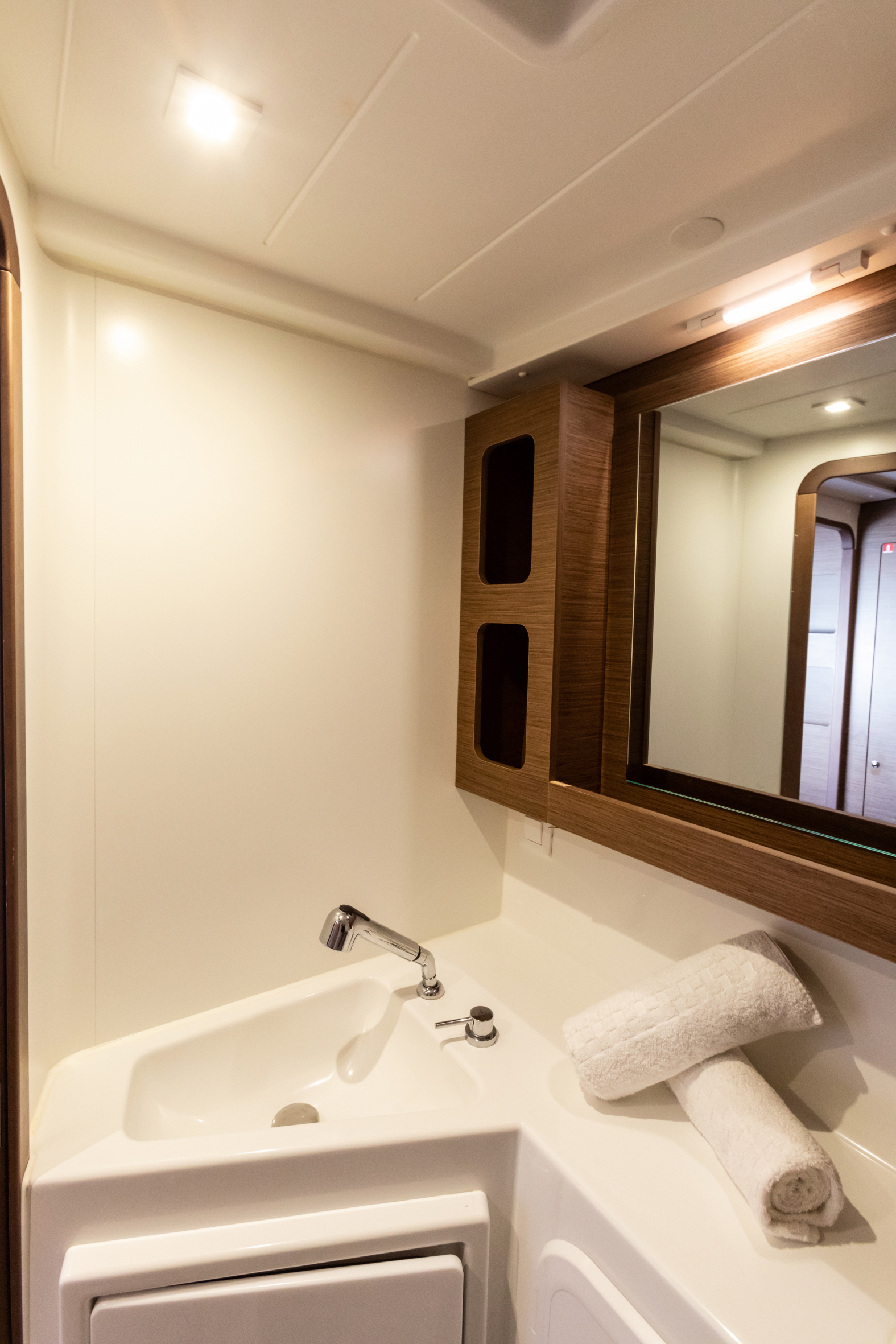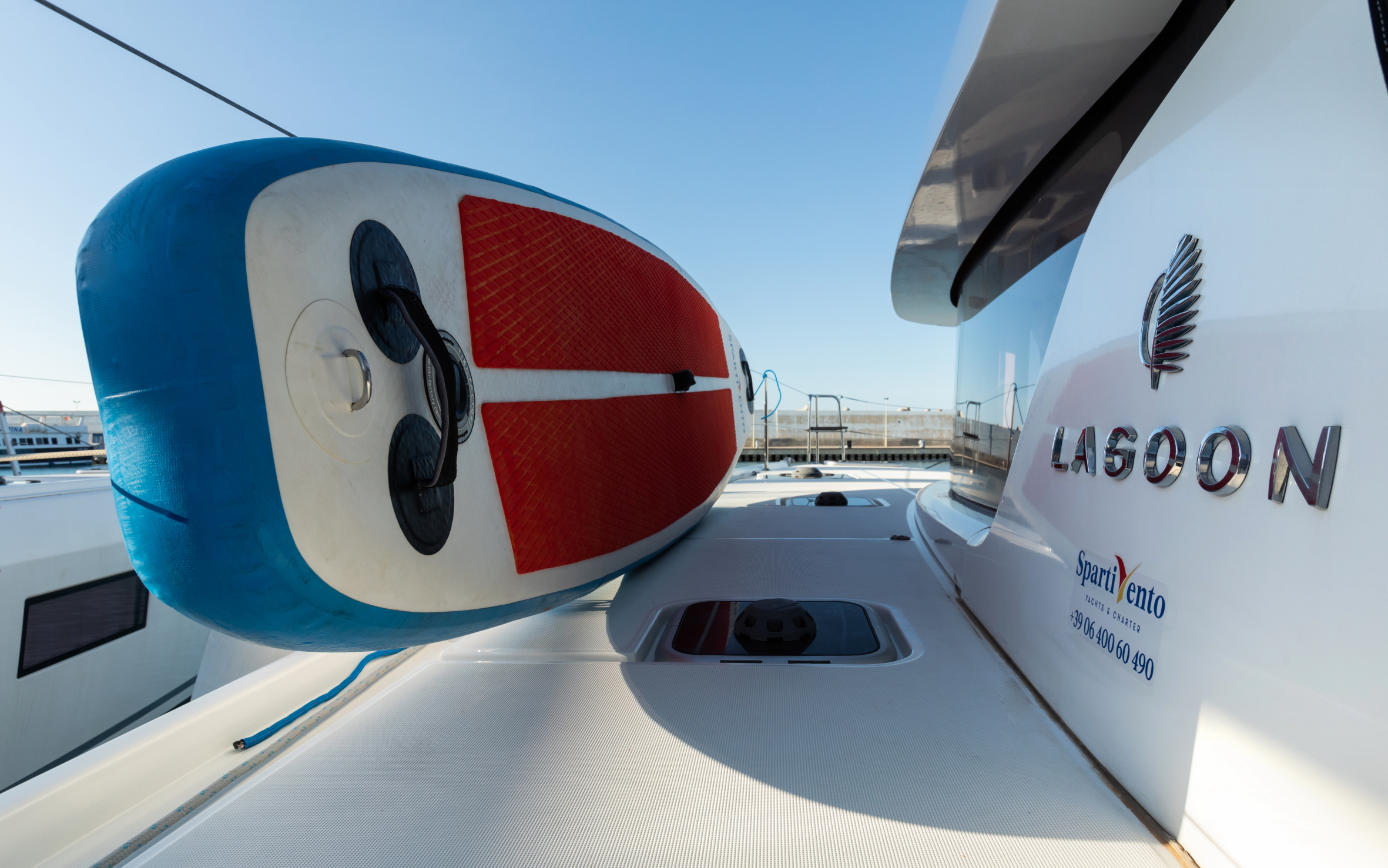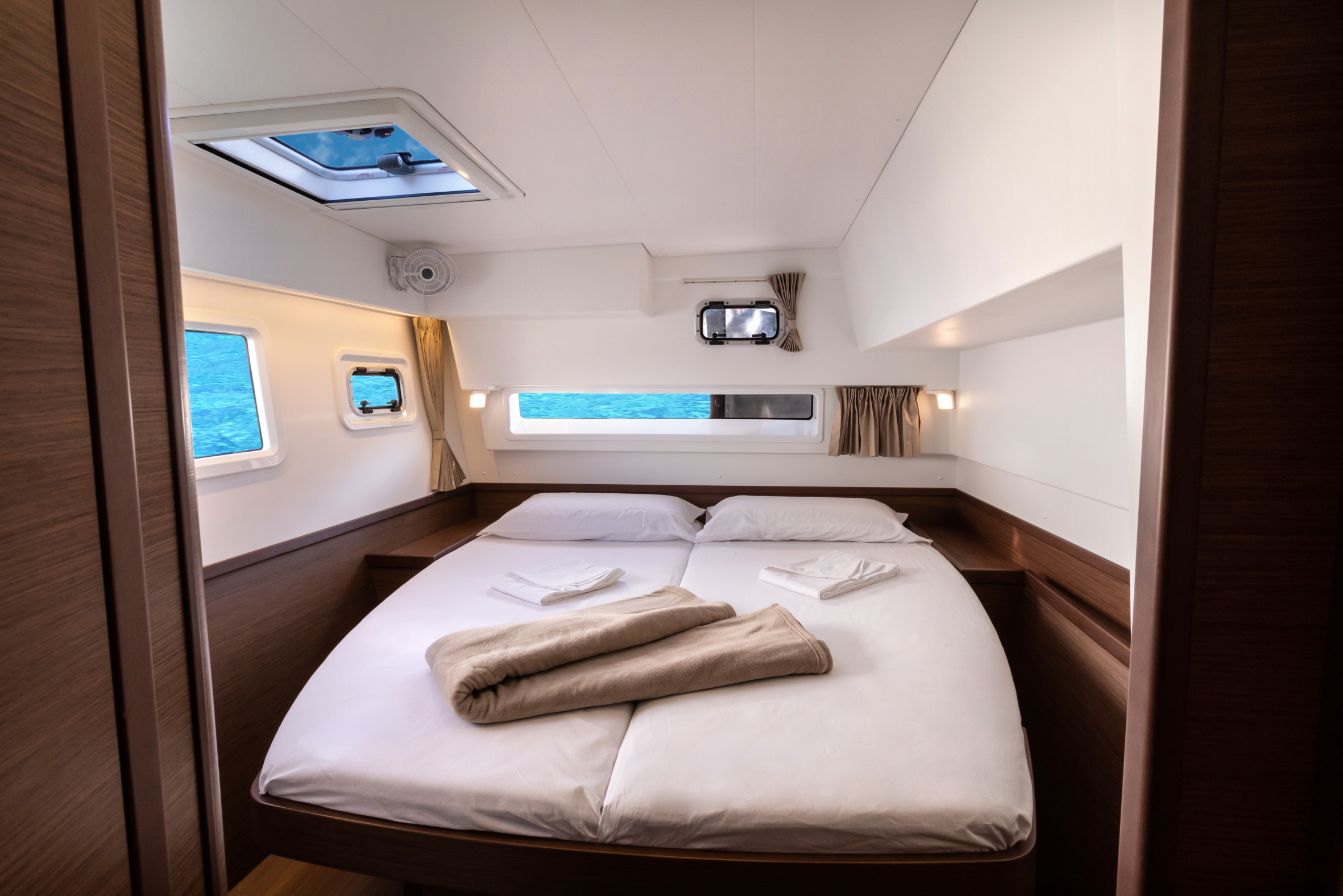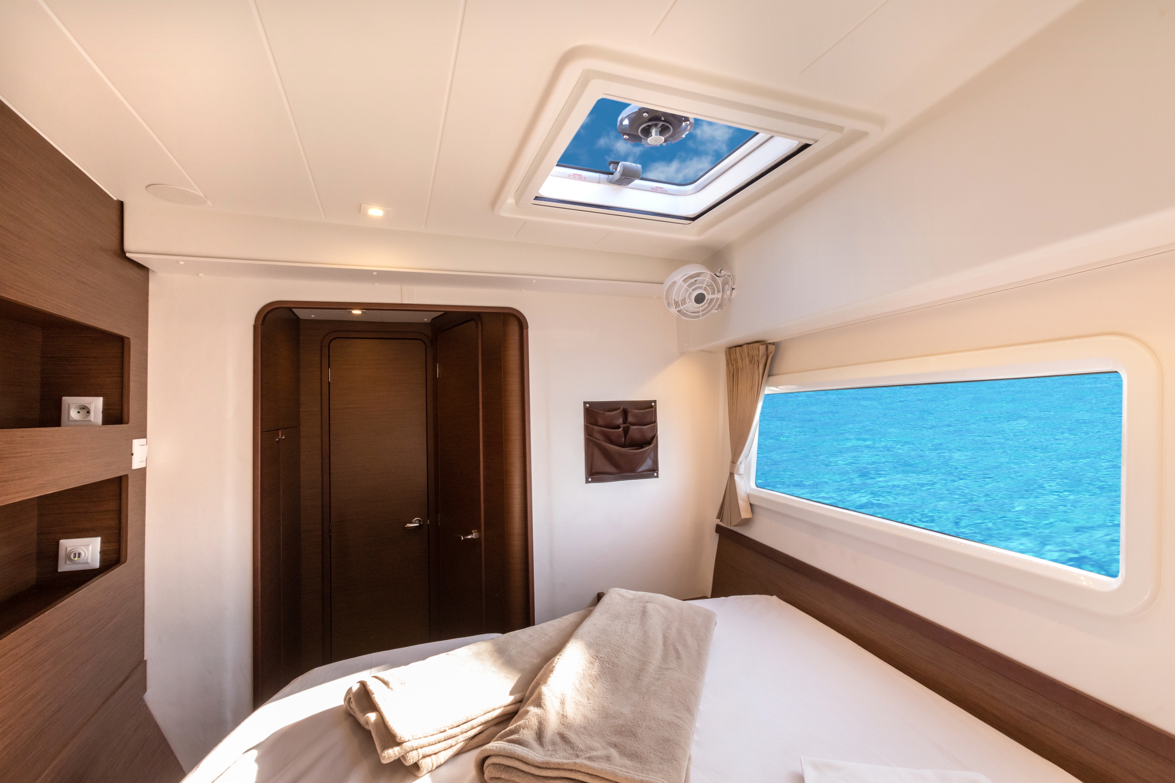 | Inside | Gasherd mit Backofen, Generator, Inverter 12V/220V, Klimaanlage (ohne Landstrombedarf), Kühlschrank, Landstromkabel, Luftpumpe für Beiboot, Mikrowelle, USB Steckdose, Ventilator, Warmwasser, Watermaker, WC (elektr.) |
