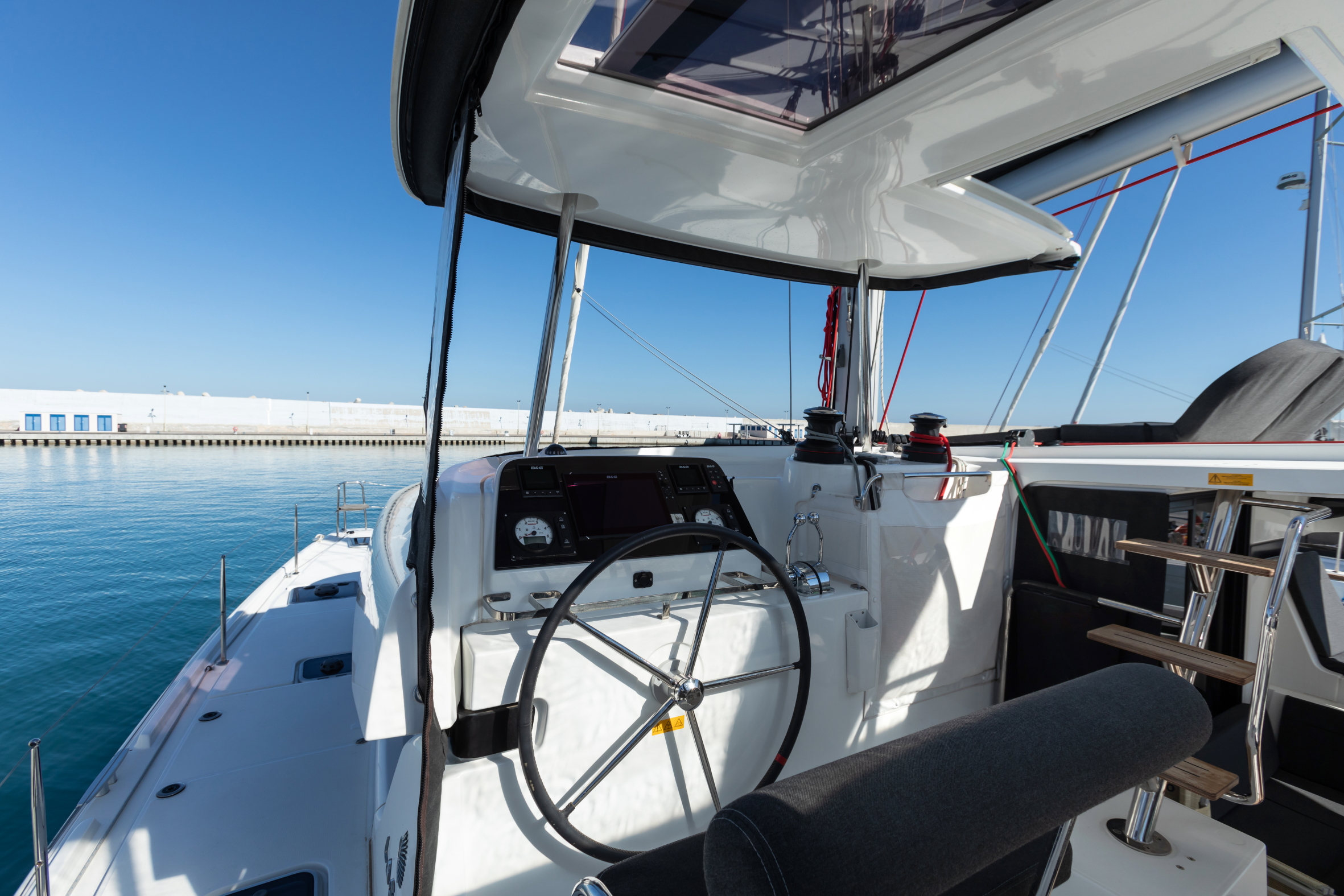 | Outside | Anker mit Kette, Cockpitdusche, Cockpitkühlschrank, Cockpitlautsprecher, Cockpitpolster, elektr. Ankerwinsch, elektr. Winsch, Gangway, Teak im Cockpit |