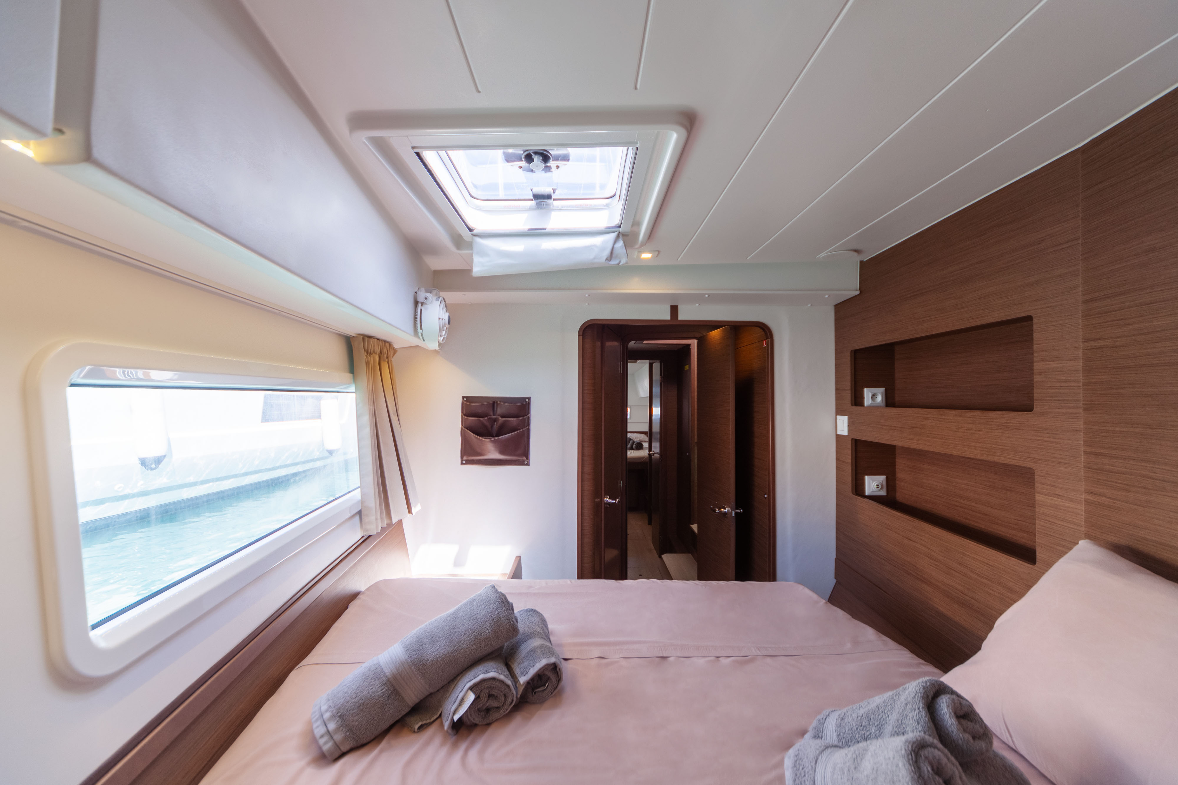 | Inside | 2. Kühlschrank, Gasherd mit Backofen, Gefrierschrank, Kaffeemaschine, Kühlschrank, Mikrowelle, Pantryausstattung, Radio mit CD und Bluetooth, Warmwasser, Watermaker, WC (elektr.) |