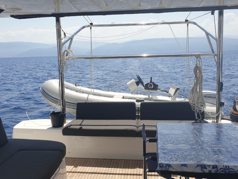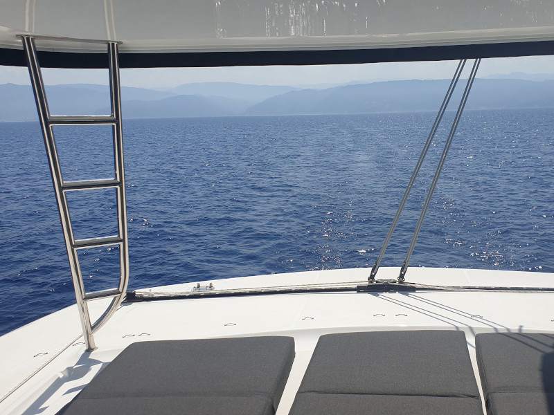 | Outside | Biminitop, Cockpitpolster, elektr. Ankerwinsch, Flybridge, Teak im Cockpit |