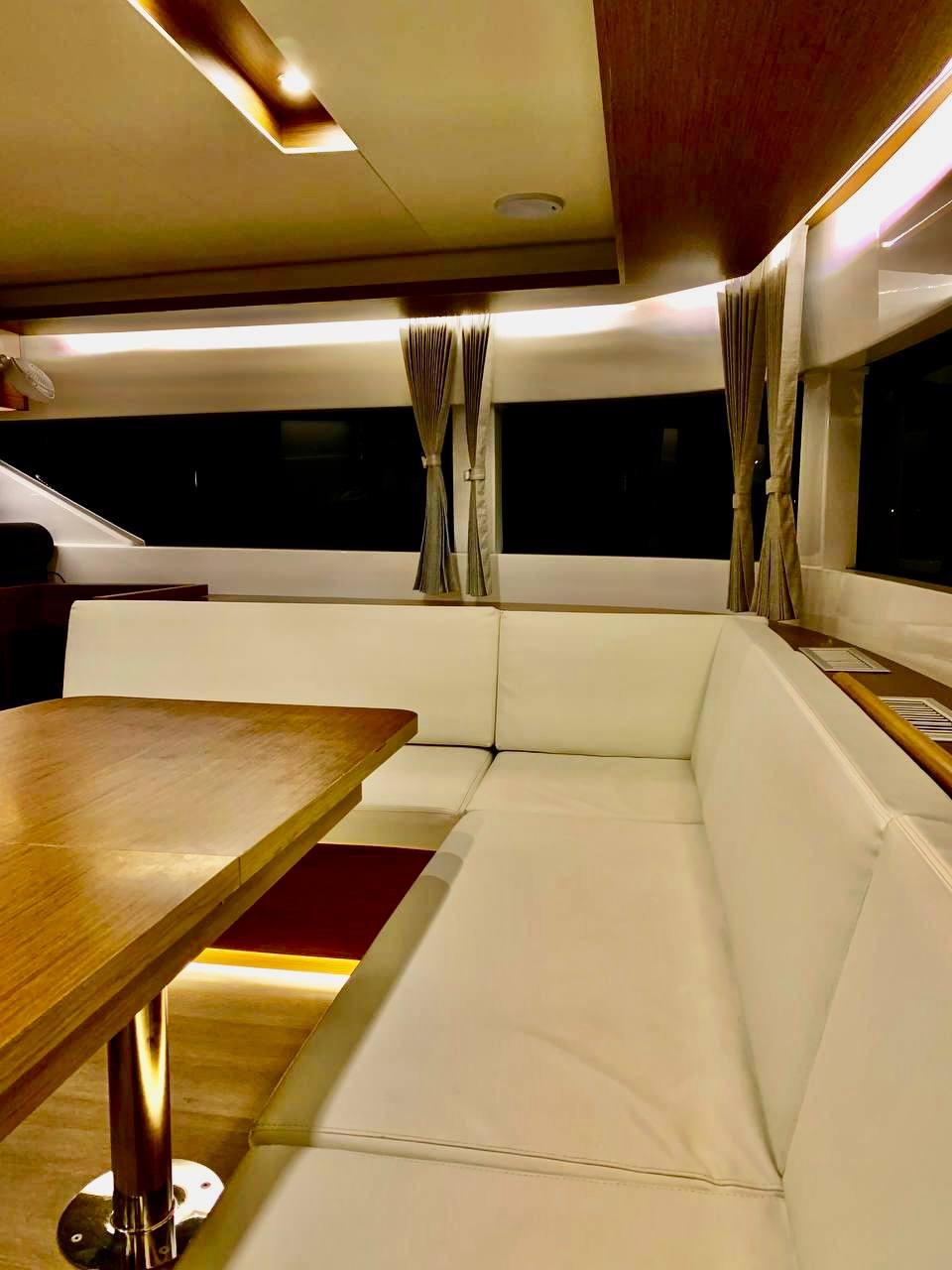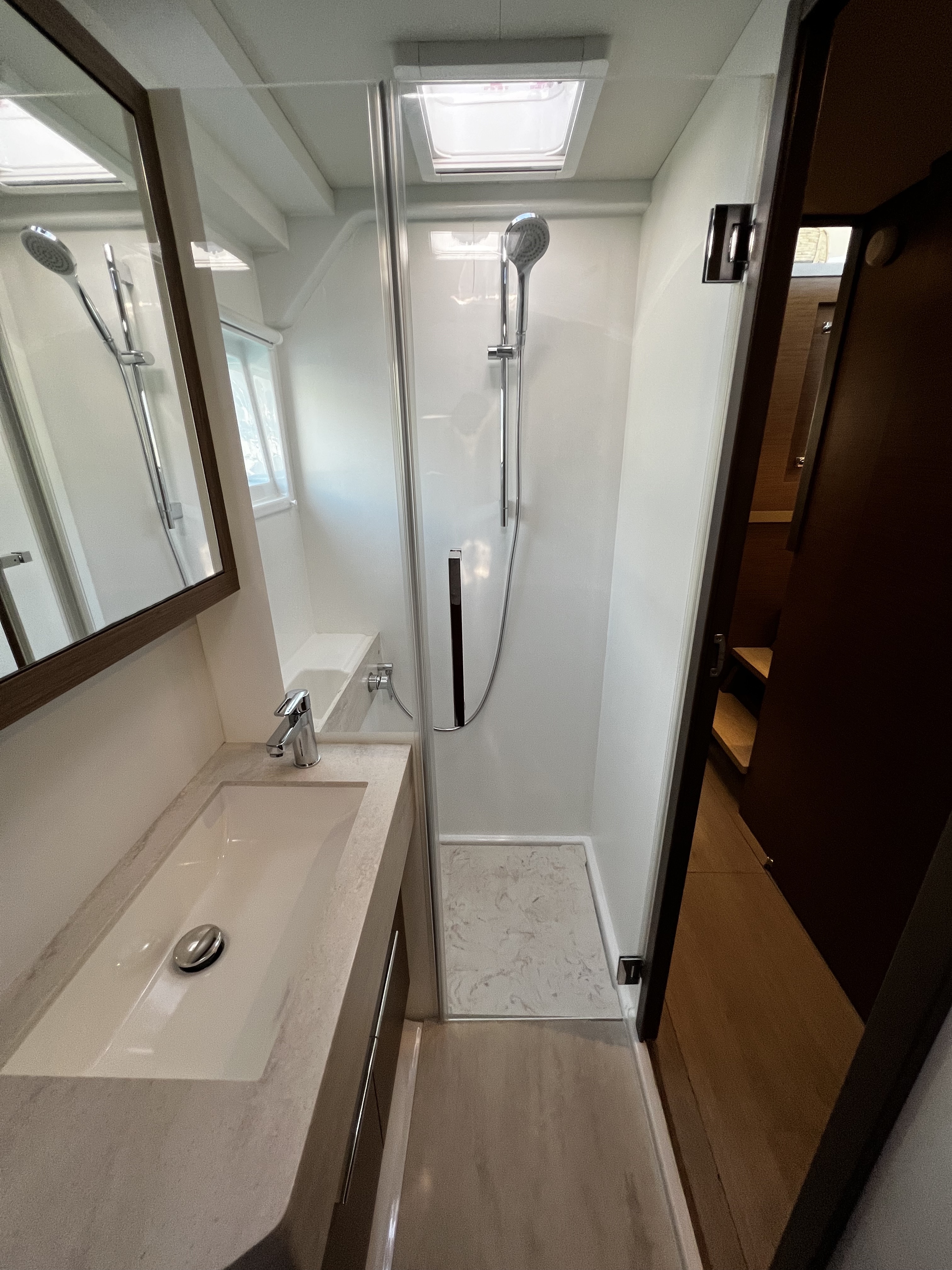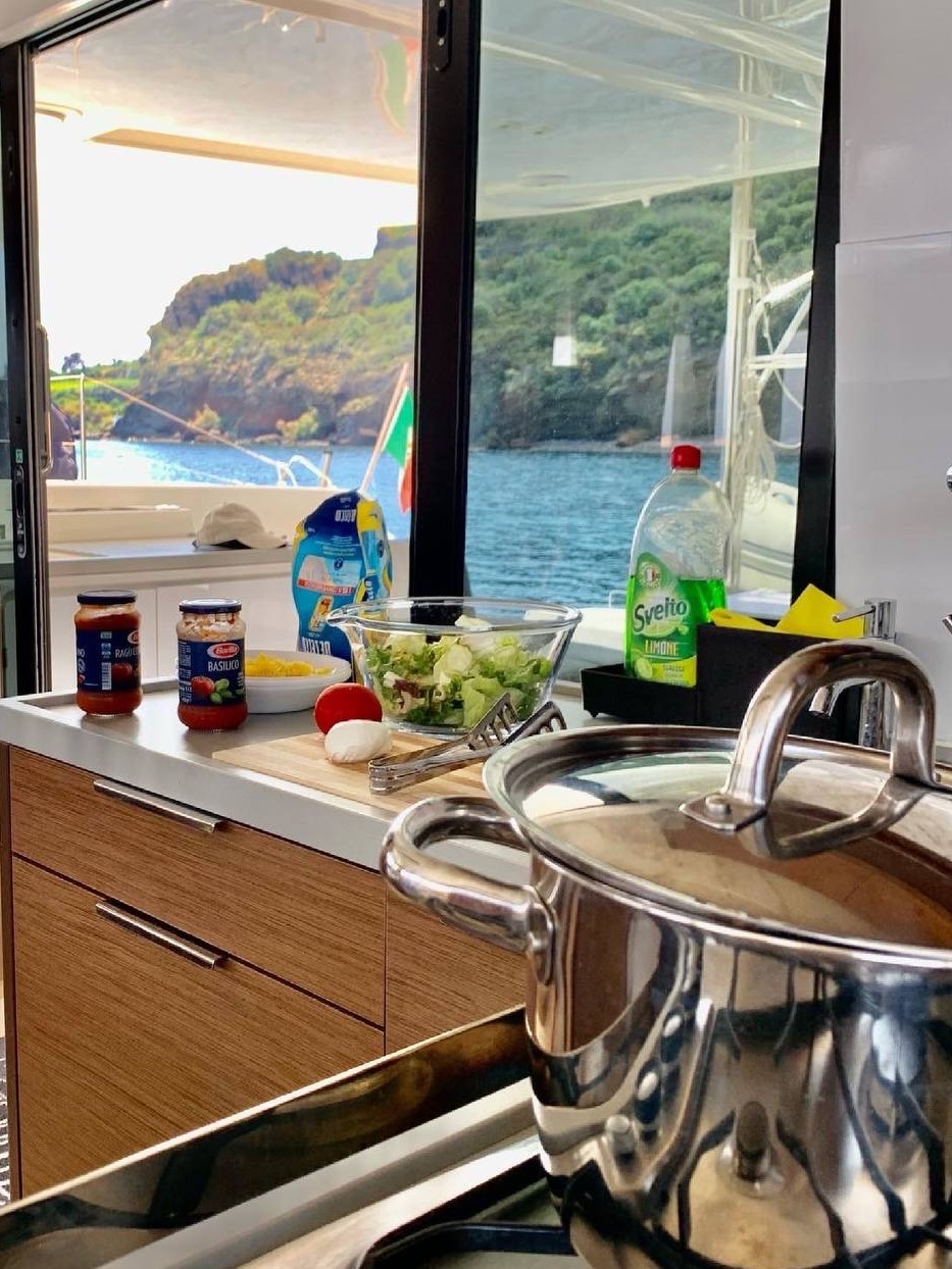 | Inside | Heizung, Inverter 12V/220V, Klimaanlage, LCD Fernseher, Mikrowelle, Radio mit CD, Watermaker, WC (elektr.) |