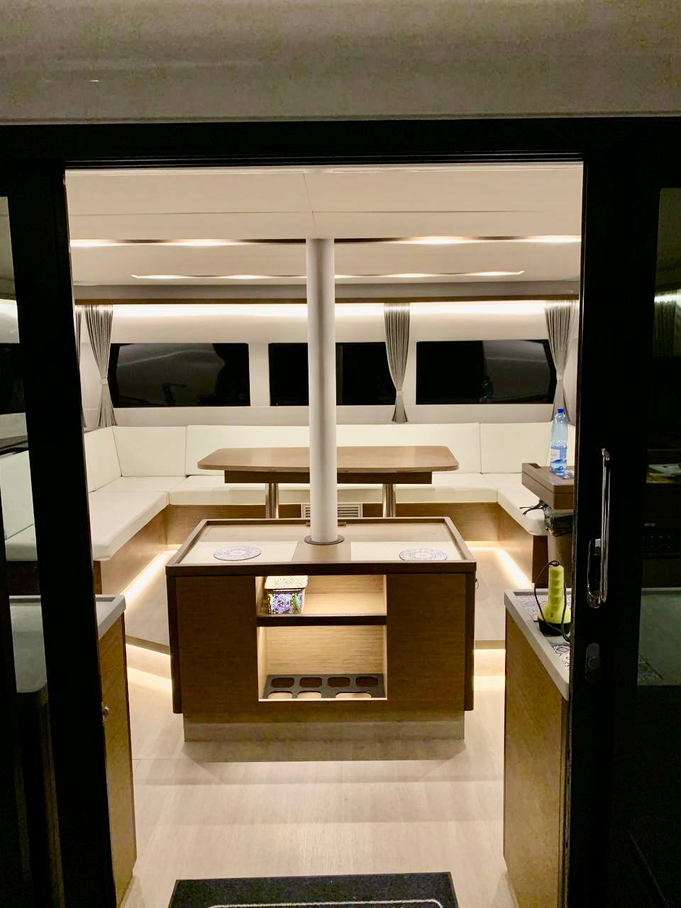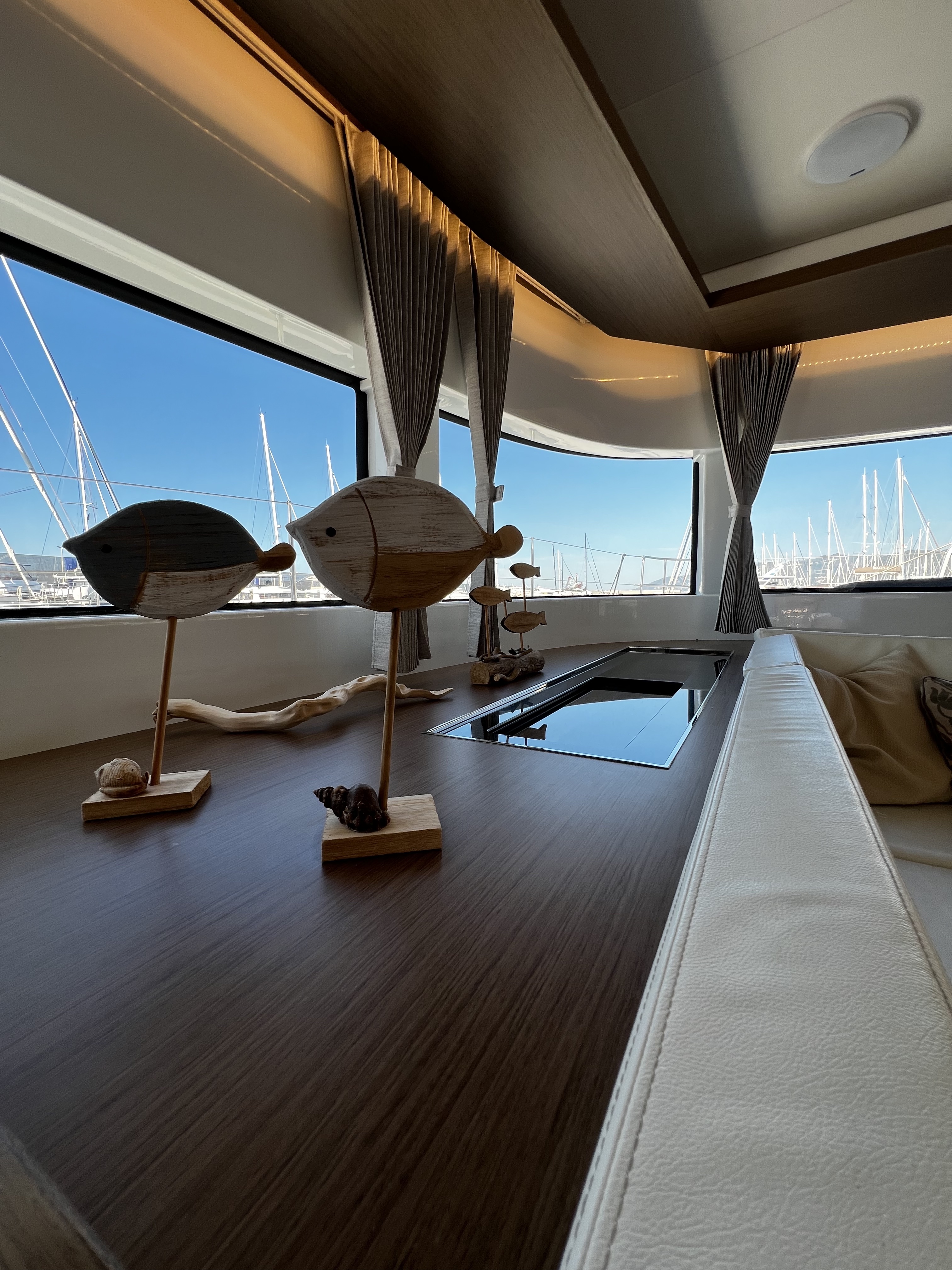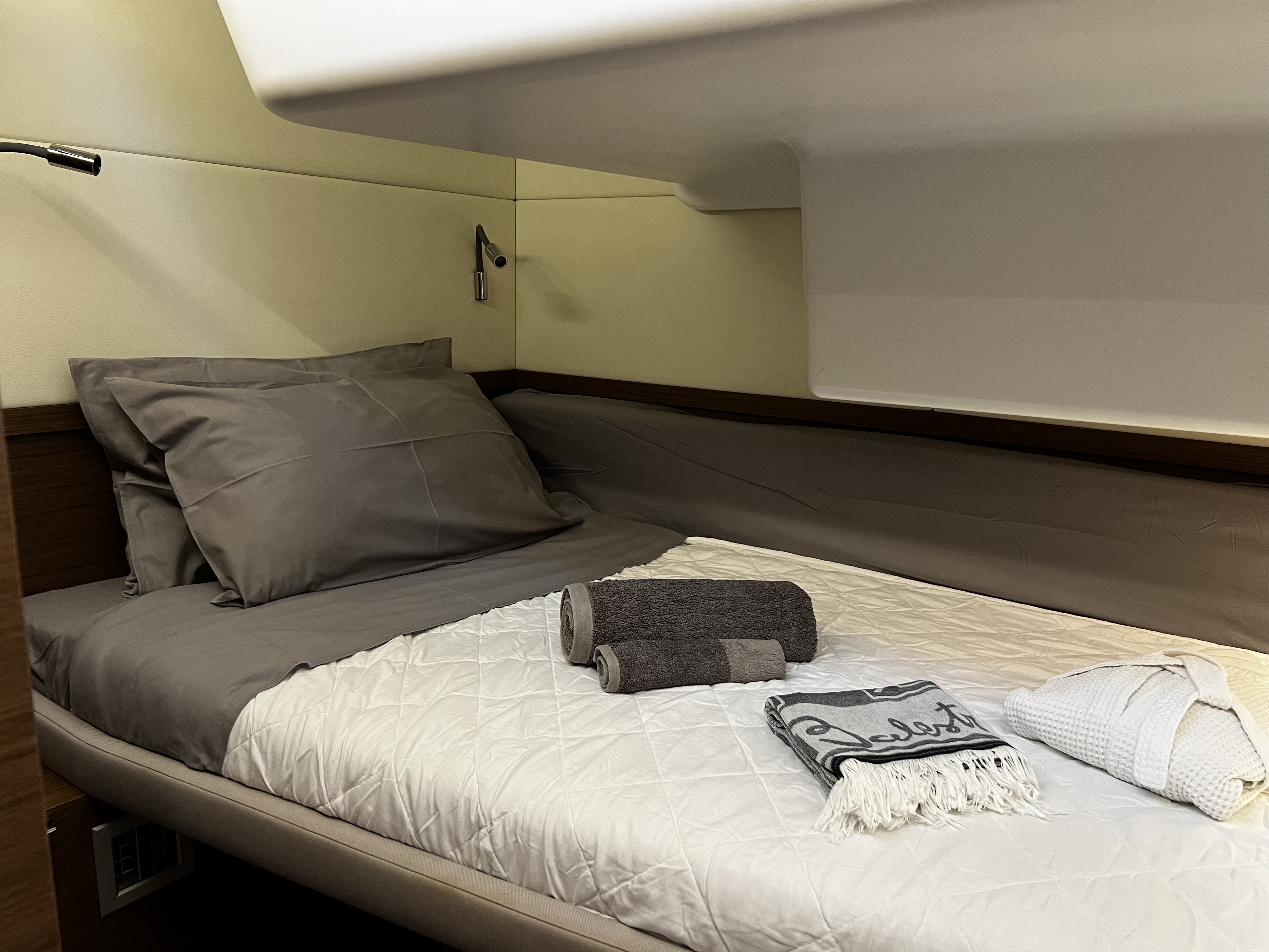 | Inside | Heizung, Inverter 12V/220V, Klimaanlage, LCD Fernseher, Mikrowelle, Radio mit CD, Watermaker, WC (elektr.) |