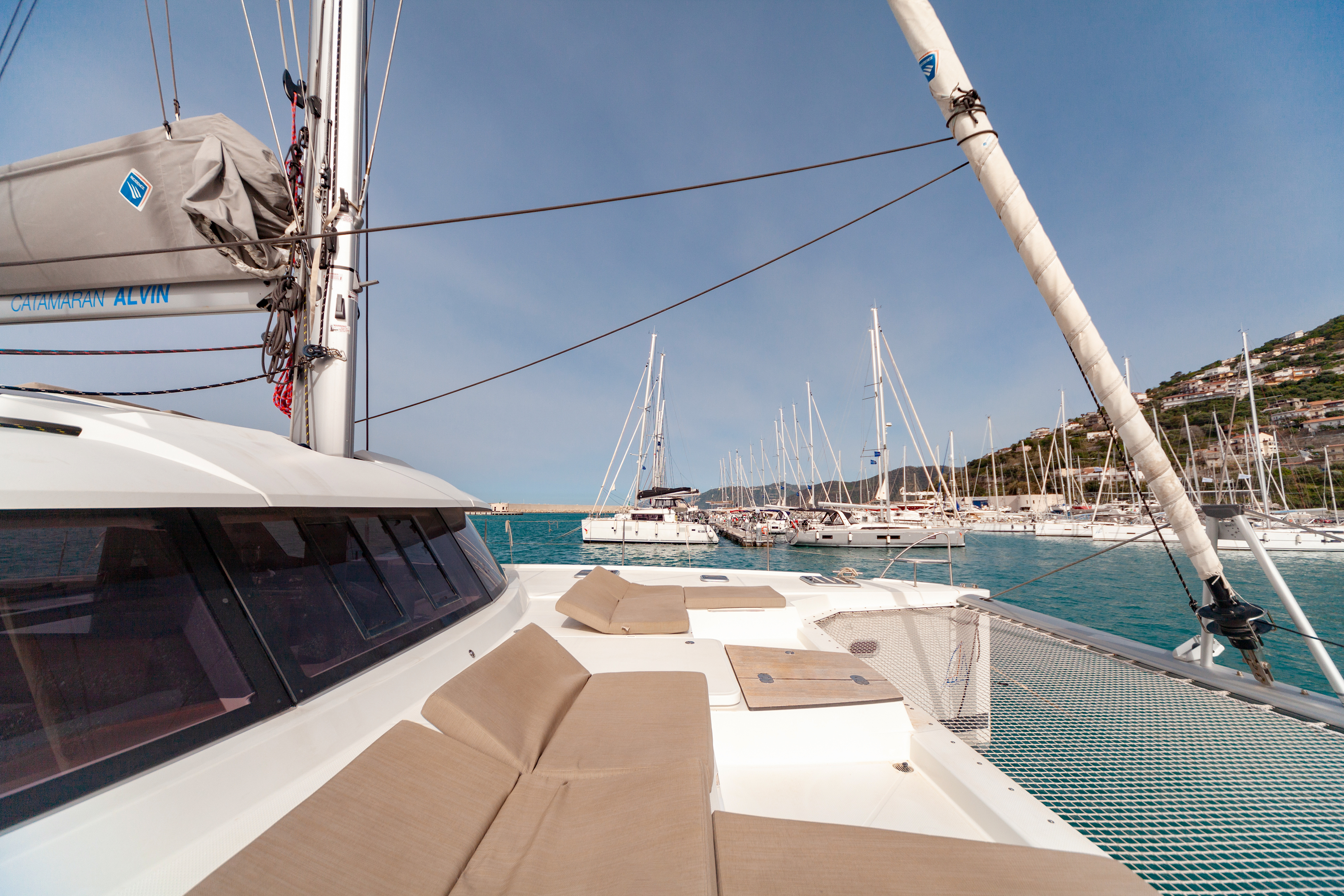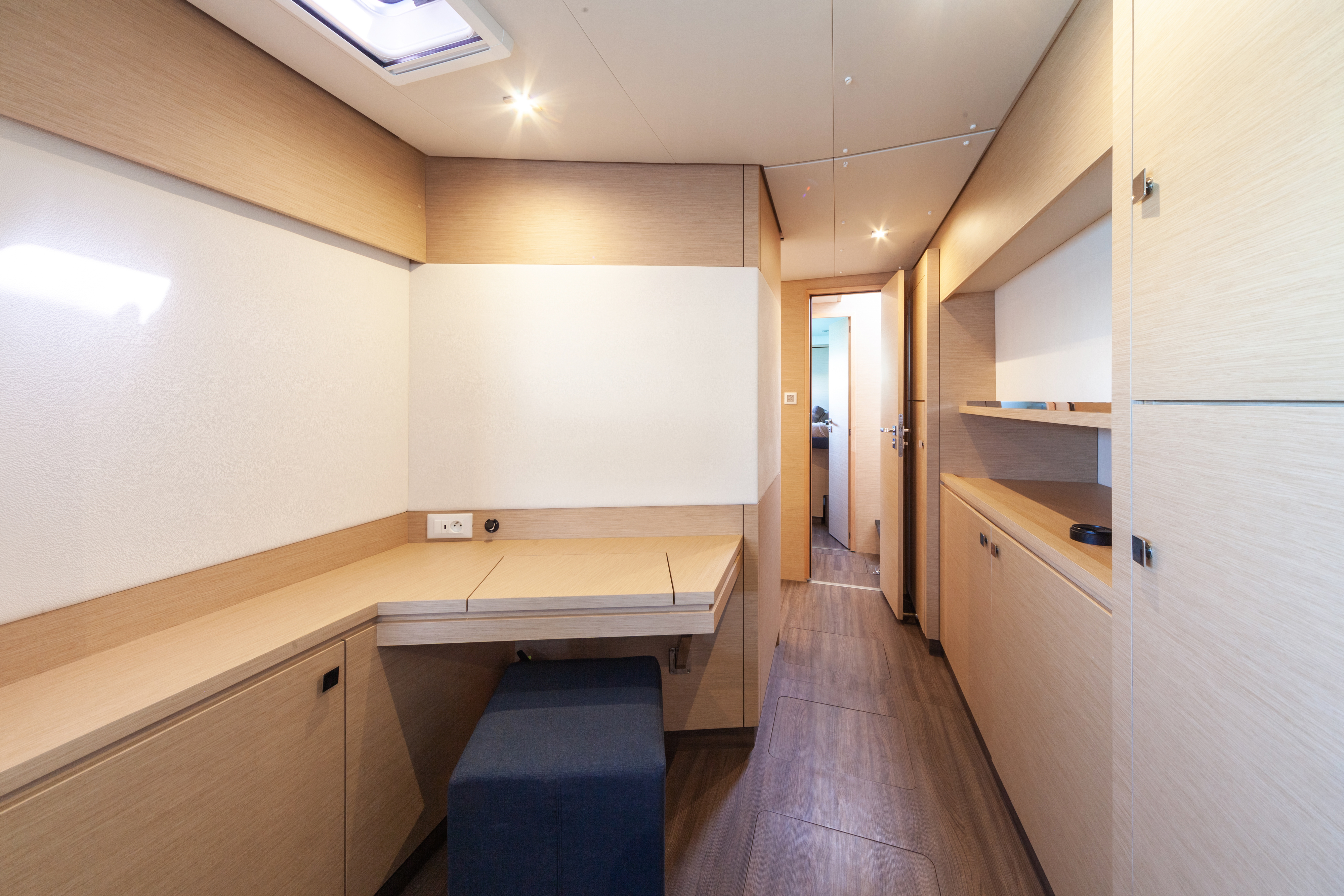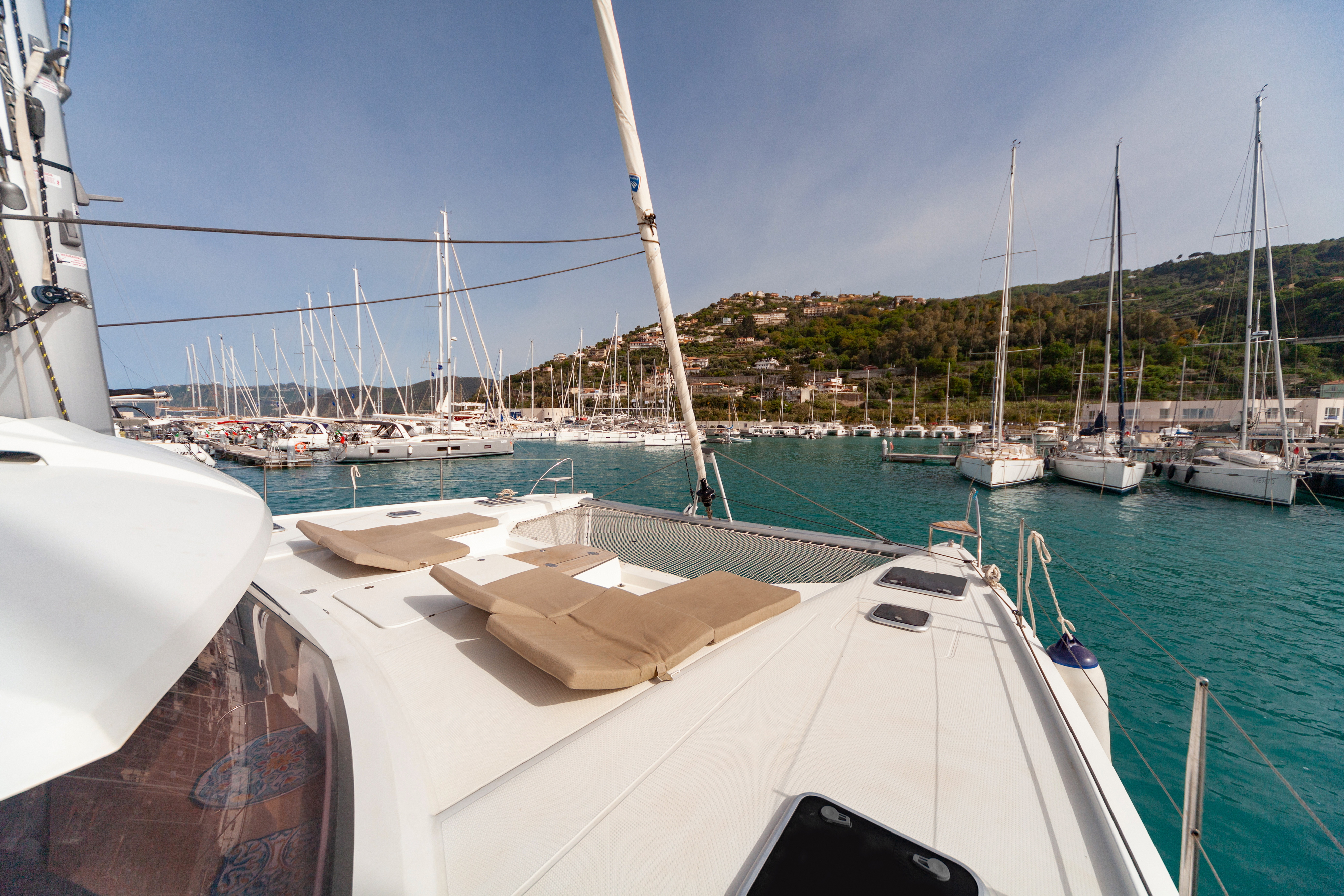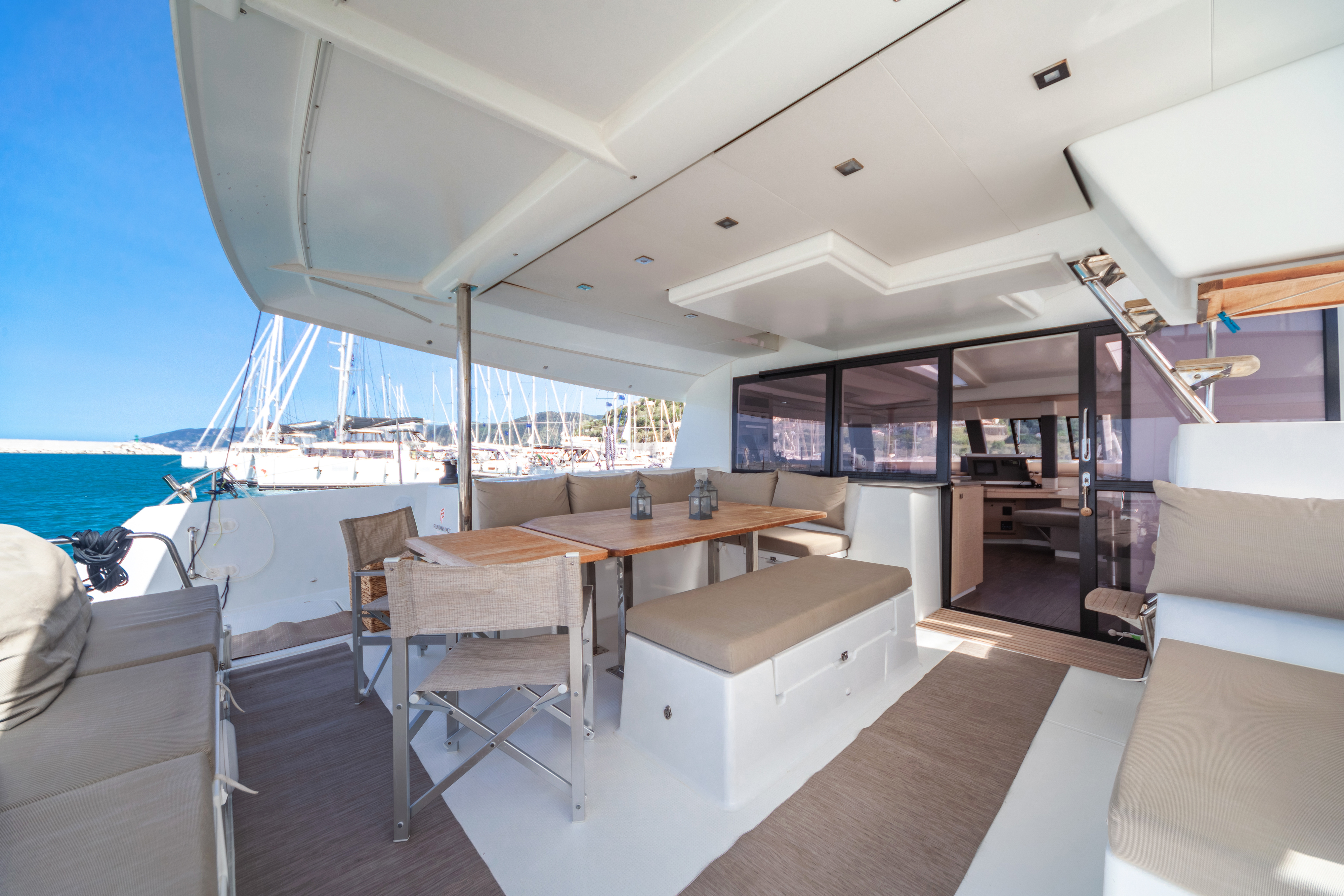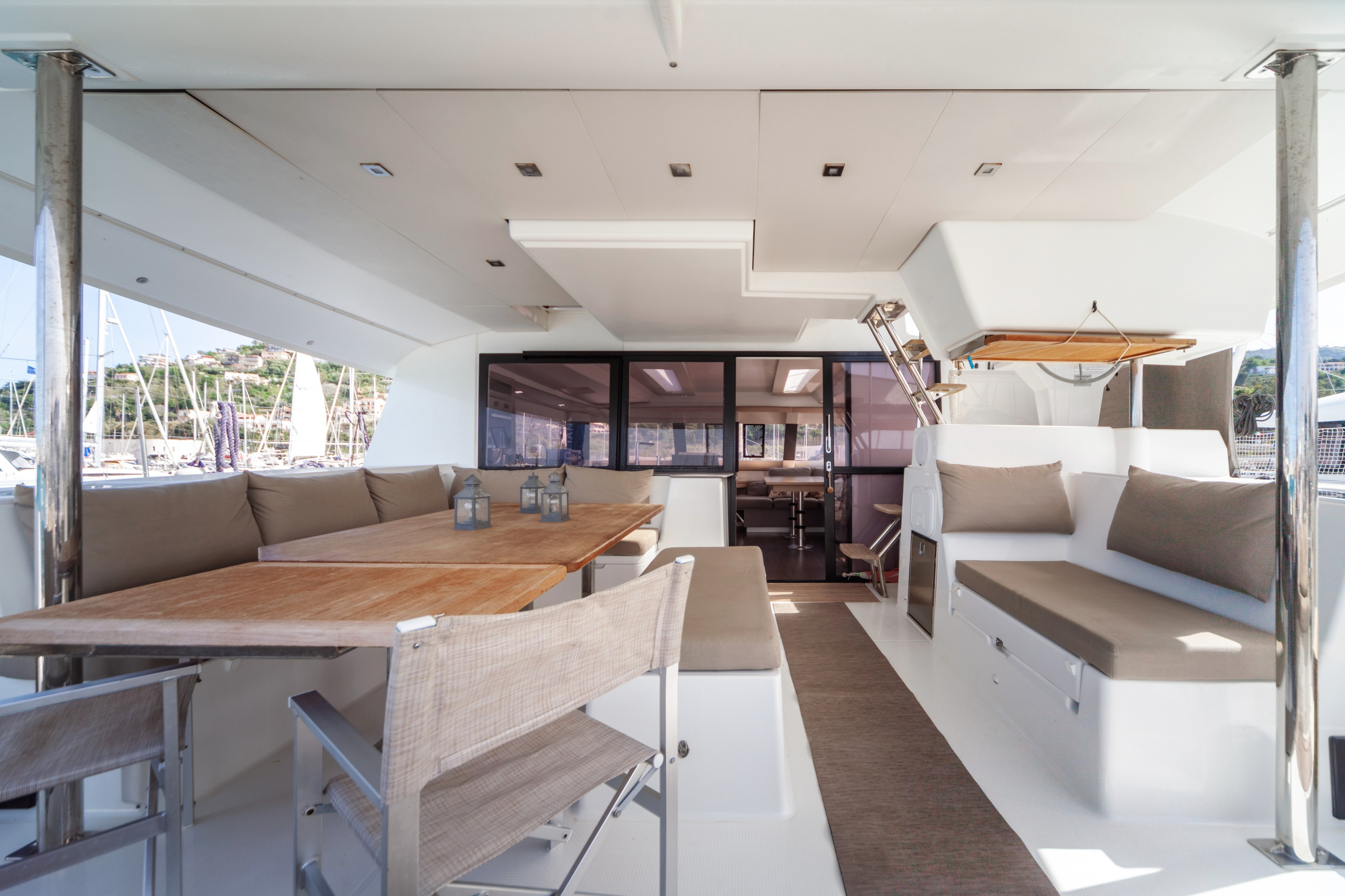 | Inside | 12V Steckdose, Gasherd mit Backofen, Gefrierschrank, Generator, Inverter 12V/220V, Kaffeemaschine, Klimaanlage (ohne Landstrombedarf), Kühlschrank, Mikrowelle, Mixer, Pantryausstattung, Radio mit Bluetooth, TV, Ventilatoren in Salon und Kabinen, Warmwasser, Watermaker, WC (elektr.) |