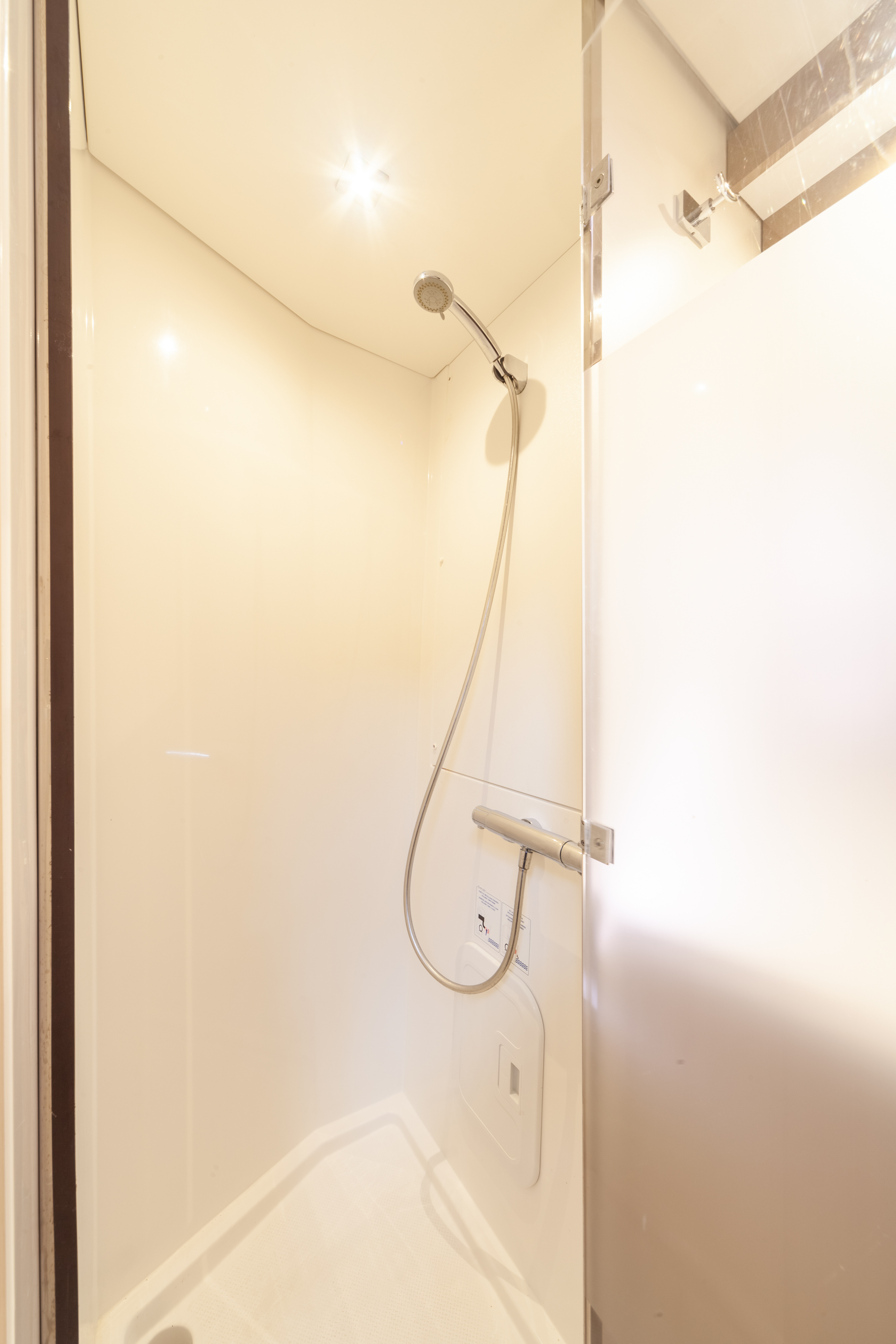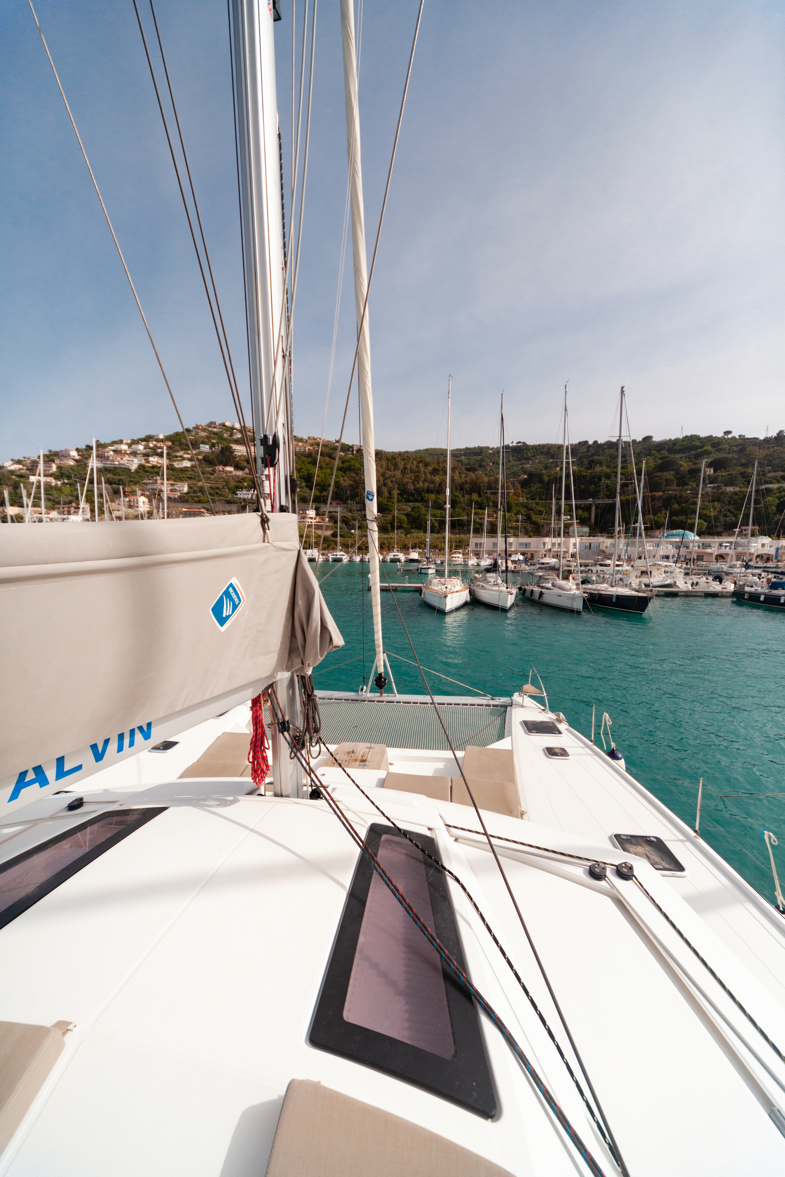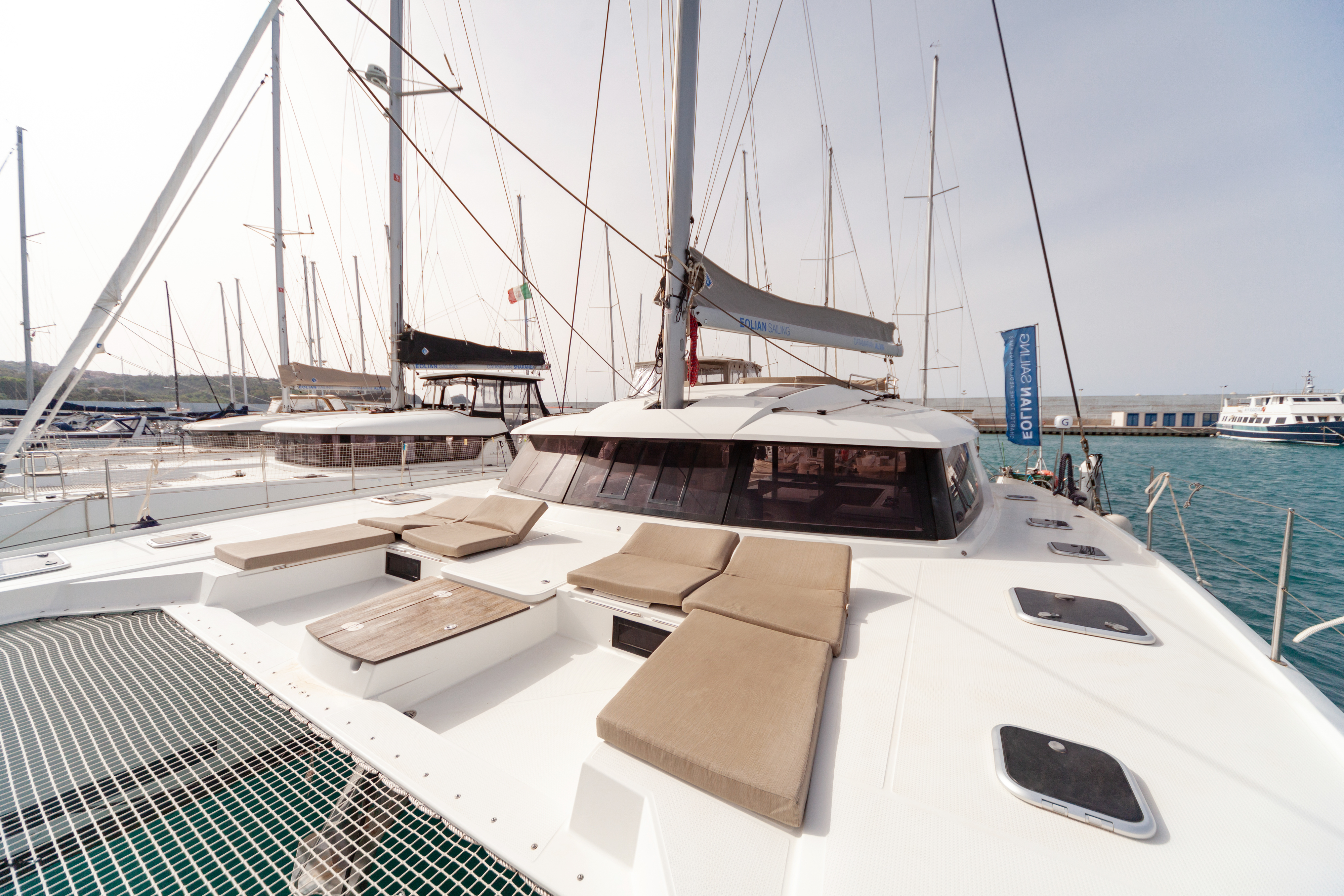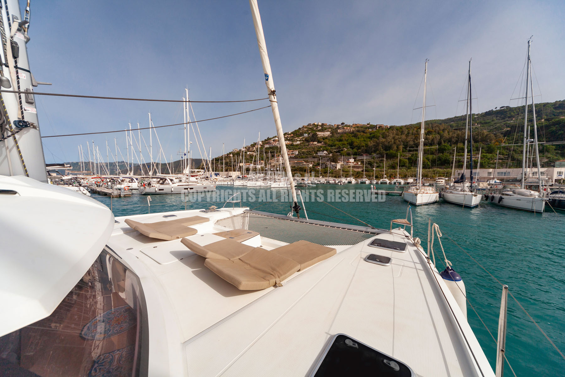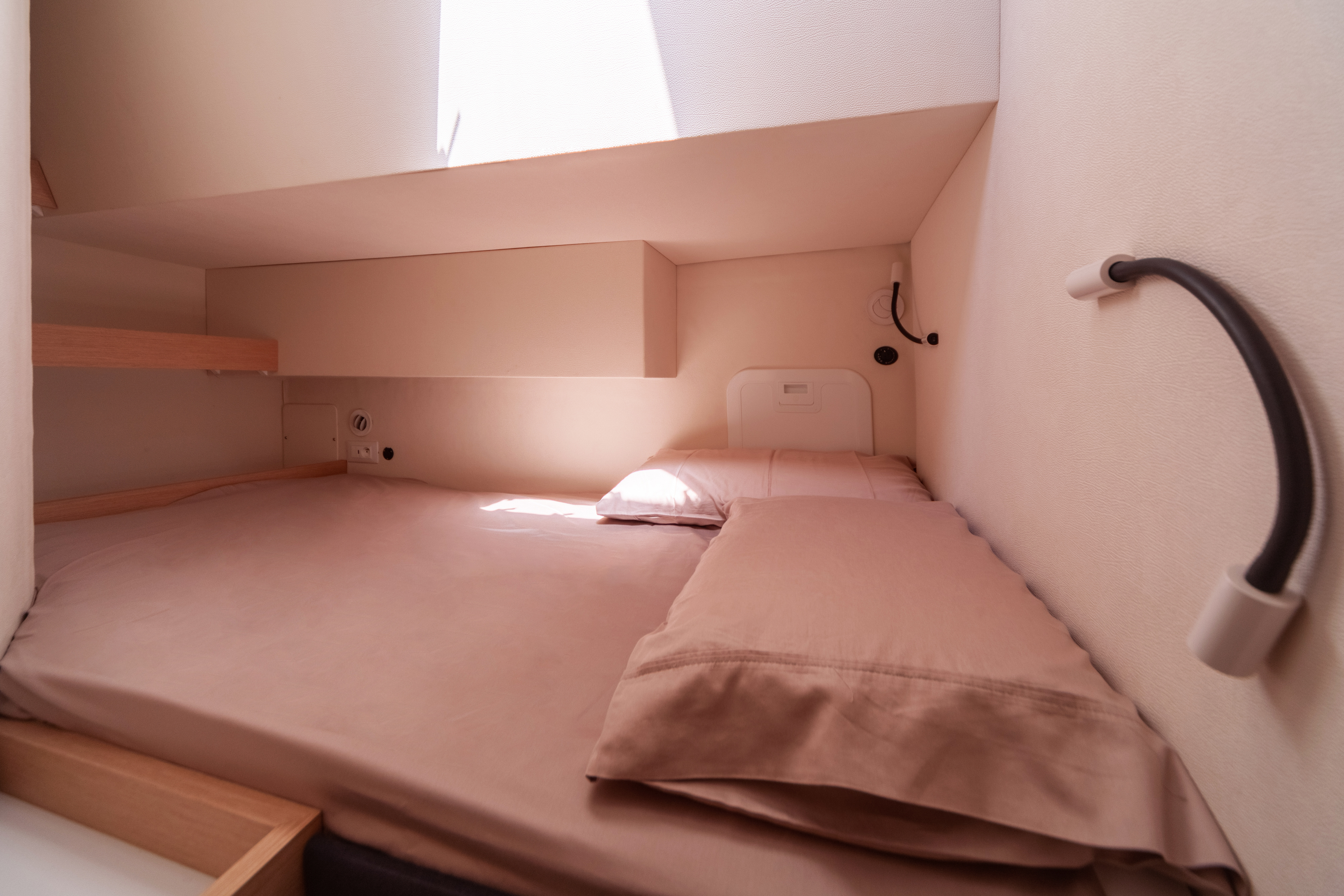 | Inside | 12V Steckdose, Gasherd mit Backofen, Gefrierschrank, Generator, Inverter 12V/220V, Kaffeemaschine, Klimaanlage (ohne Landstrombedarf), Kühlschrank, Mikrowelle, Mixer, Pantryausstattung, Radio mit Bluetooth, TV, Ventilatoren in Salon und Kabinen, Warmwasser, Watermaker, WC (elektr.) |