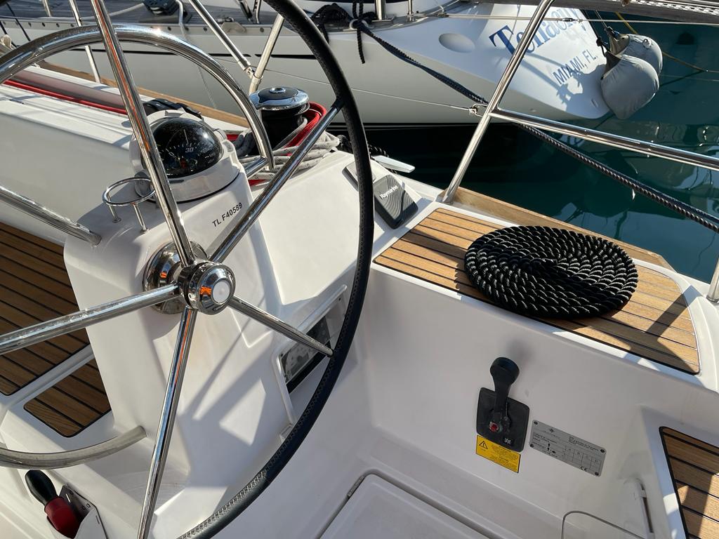 | Outside | 220 V-Landanschluss, Anker mit Kette, Badeleiter, Biminitop, Bootshaken, Cockpitdusche, Cockpitleuchte, elektr. Ankerwinsch, Sprayhood |
