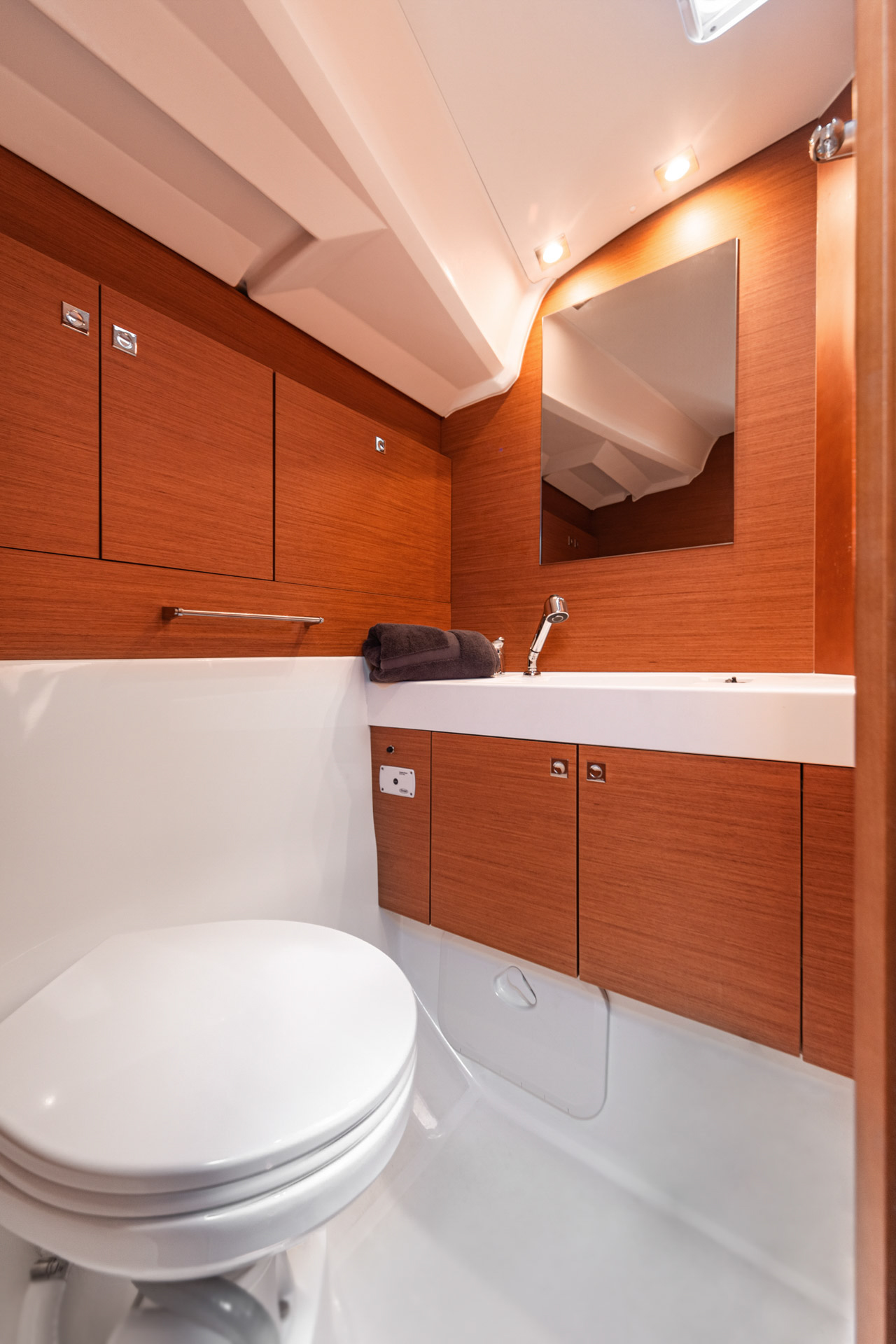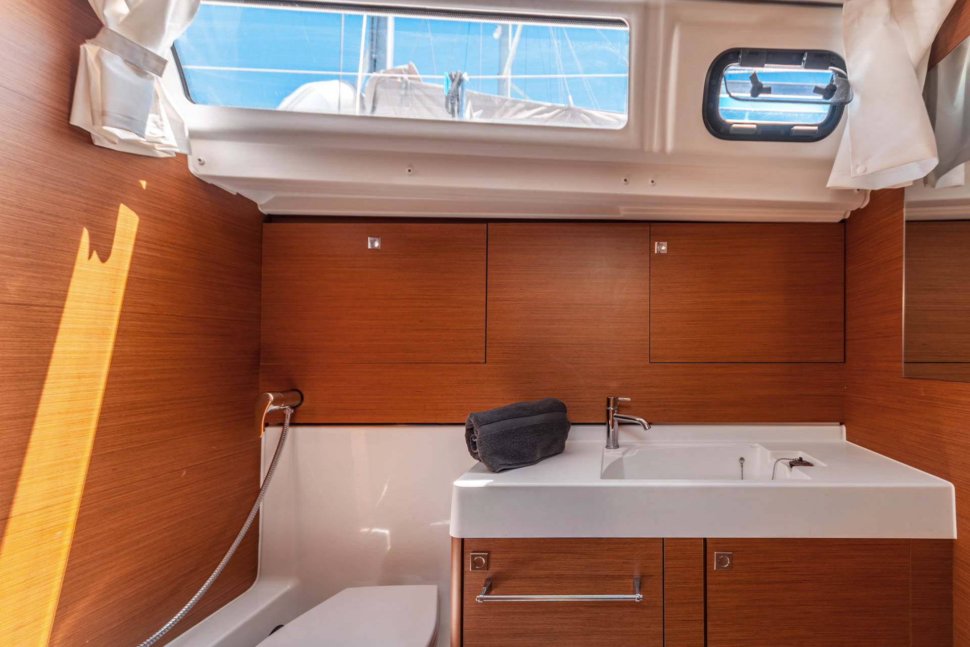| Outside | Anker mit Kette, Biminitop, Cockpitlautsprecher, elektr. Ankerwinsch, Schnorchelausrüstung, Sprayhood |