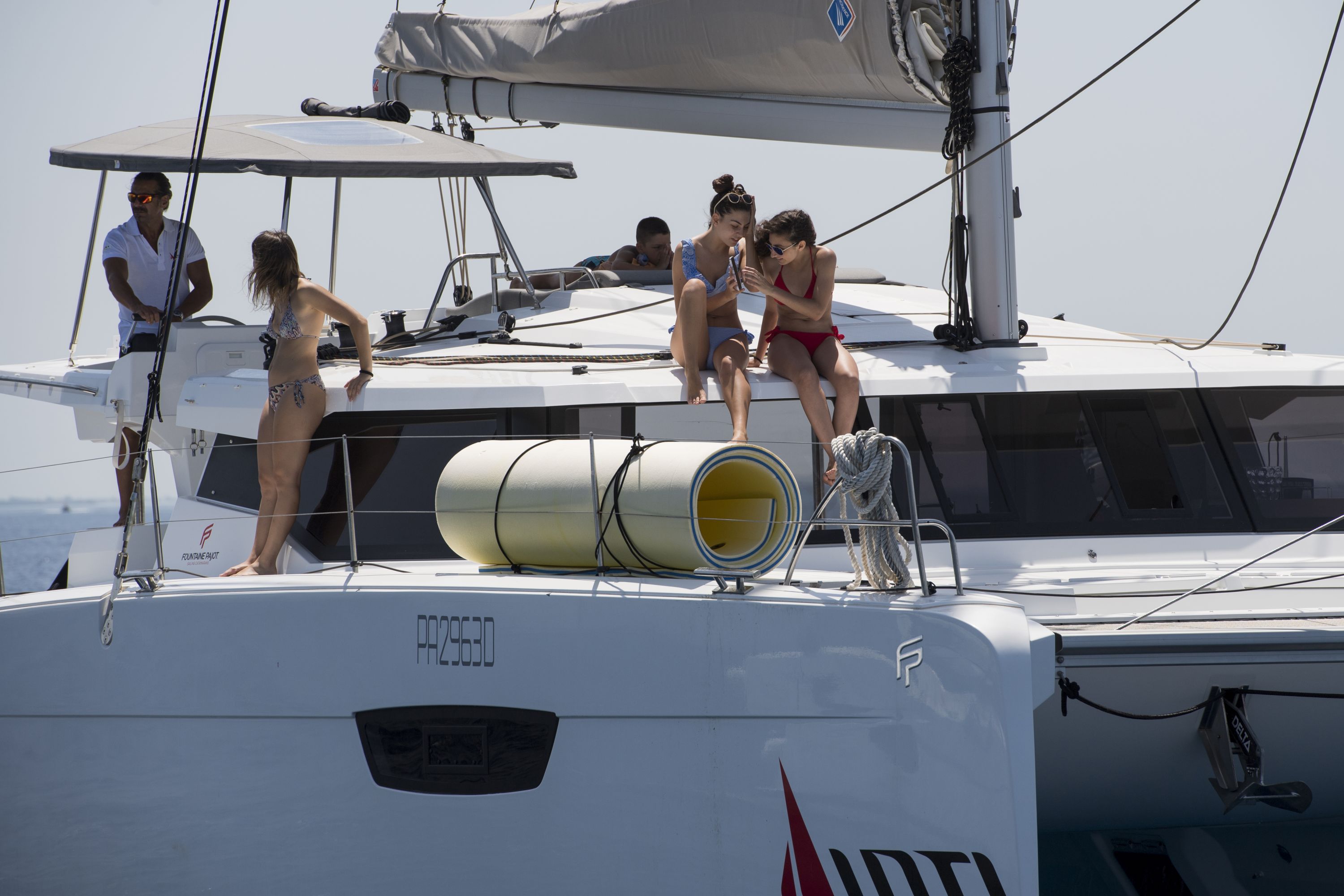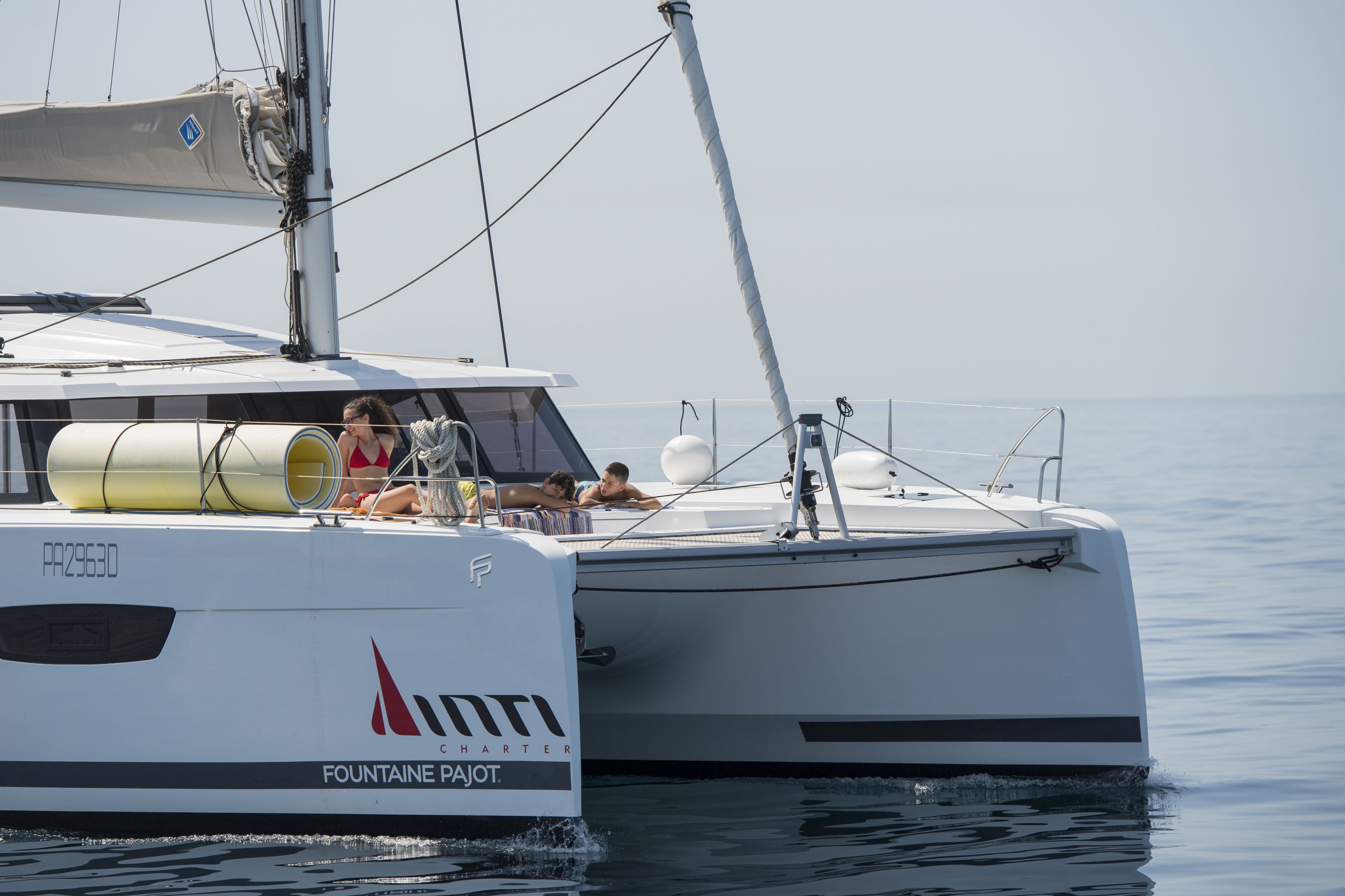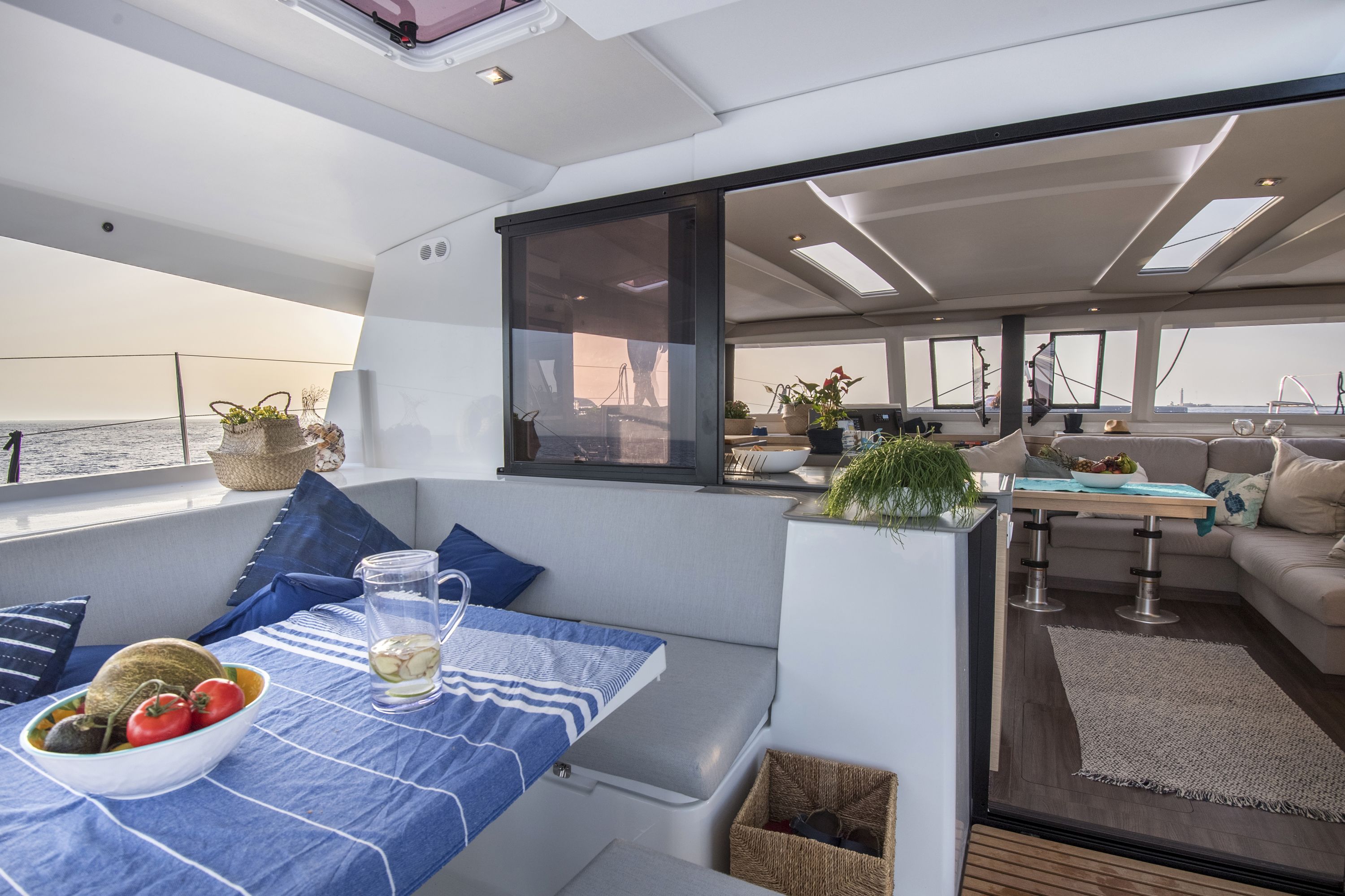 | Outside | Anker mit Kette, Biminitop, Cockpitlautsprecher, Cockpitpolster, Cockpittisch, Deckpolster, elektr. Ankerwinsch, elektr. Winsch, Solaranlage, Sprayhood |