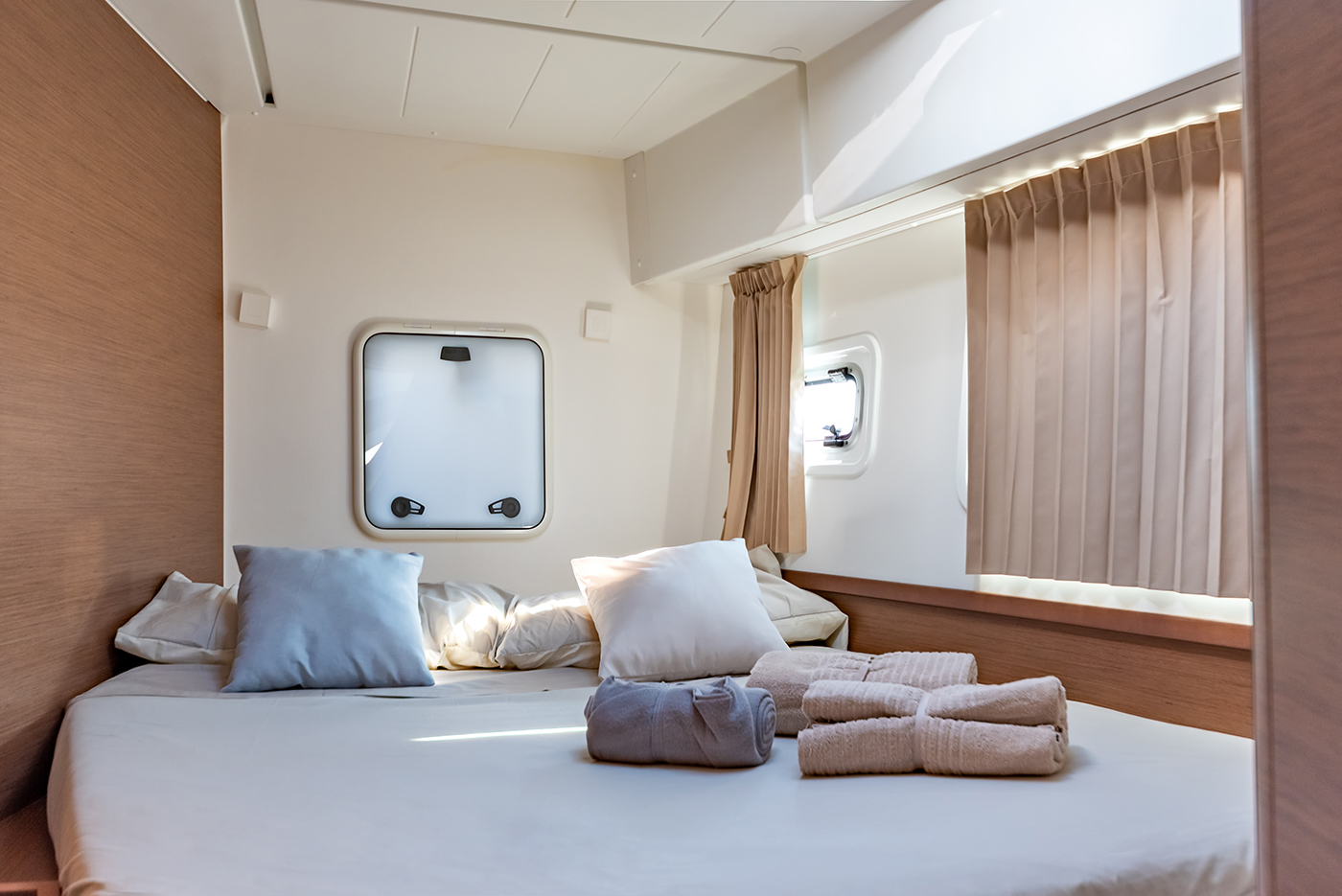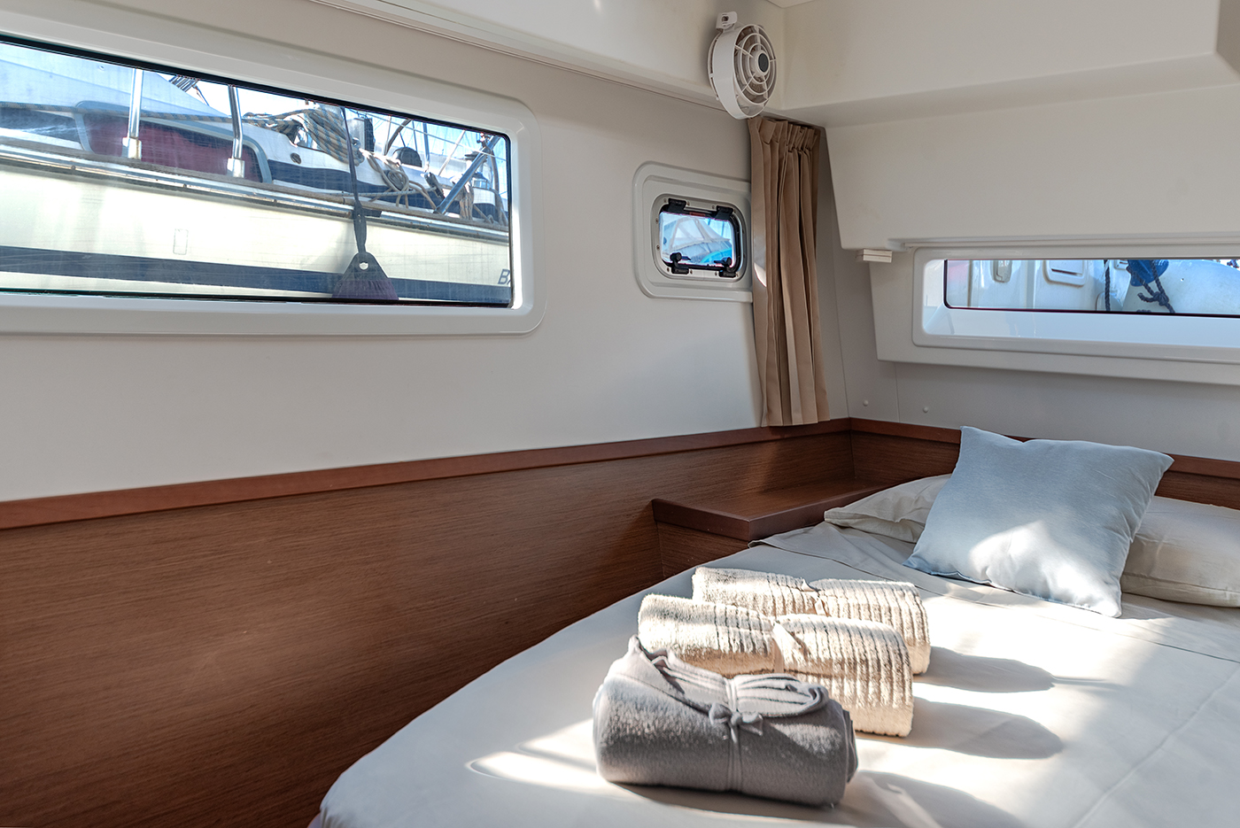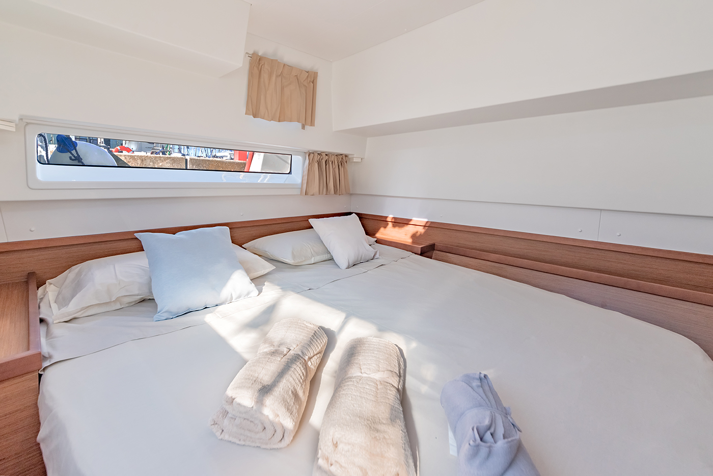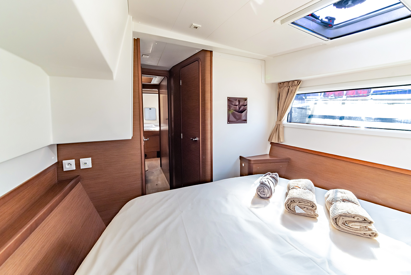 | Inside | Gefrierschrank, Generator, Inverter 12V/220V, Kühlschrank, Ladegerät, Mikrowelle, Nespresso-Maschine, Radio mit CD, Warmwasser, Watermaker, WC (elektr.) |