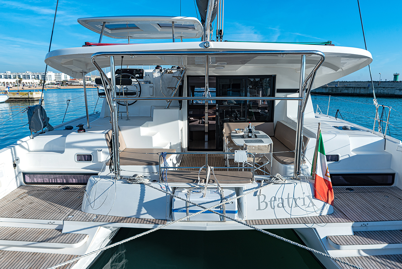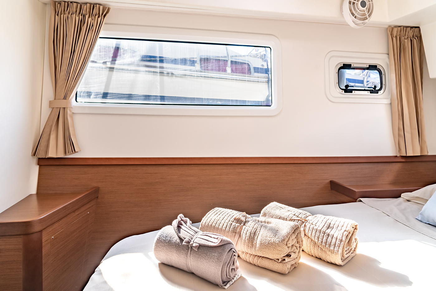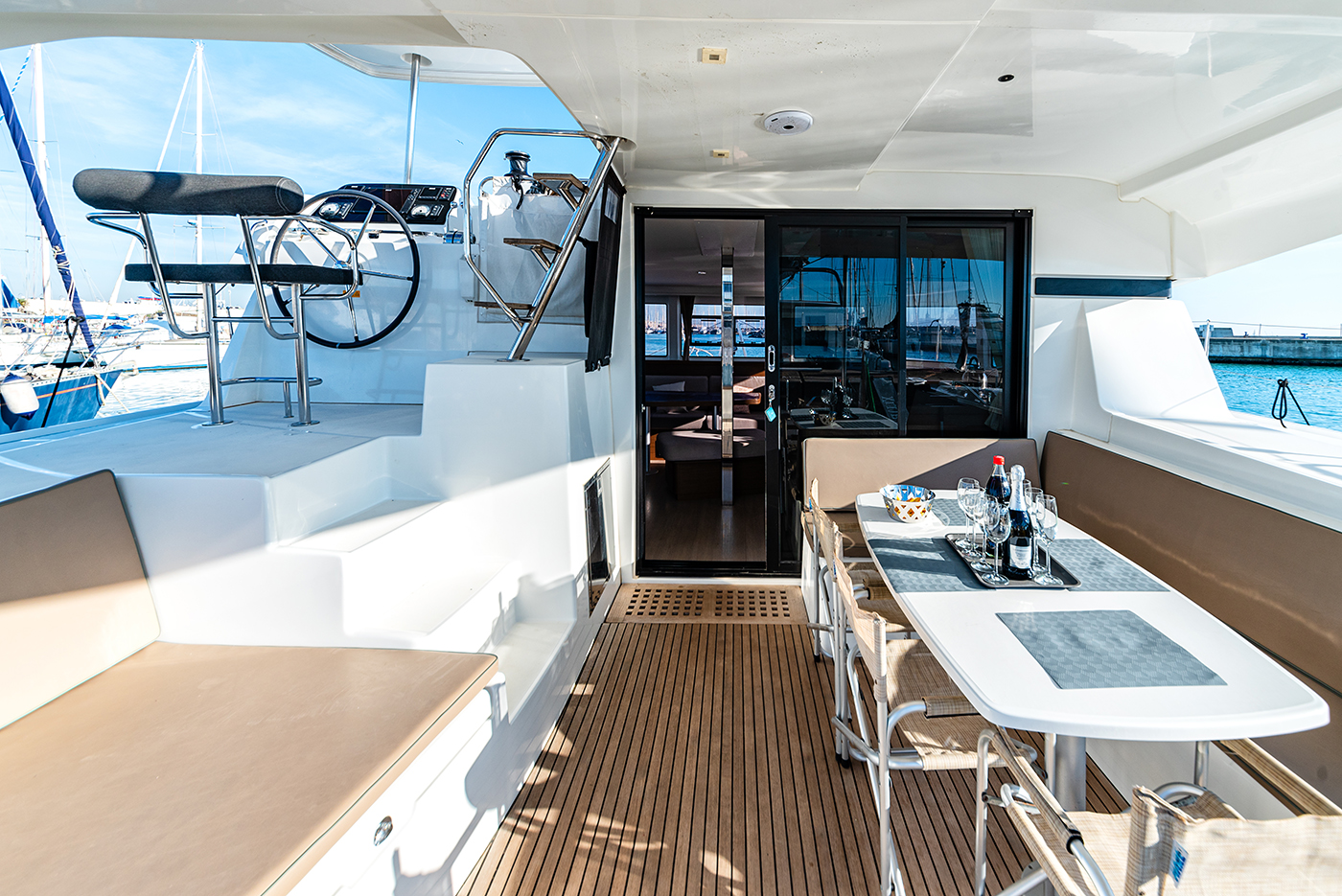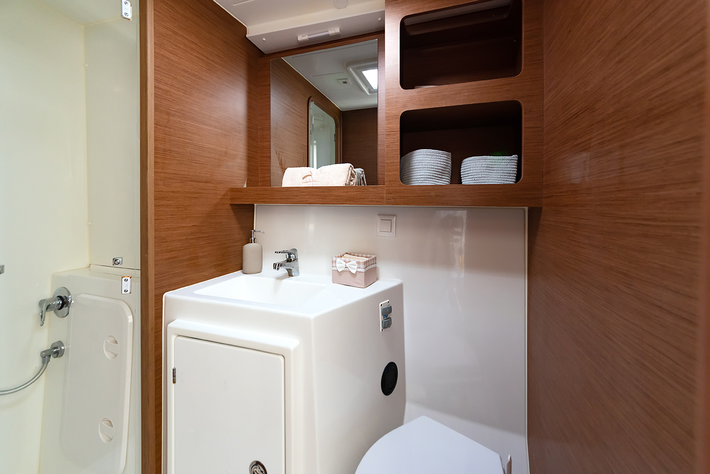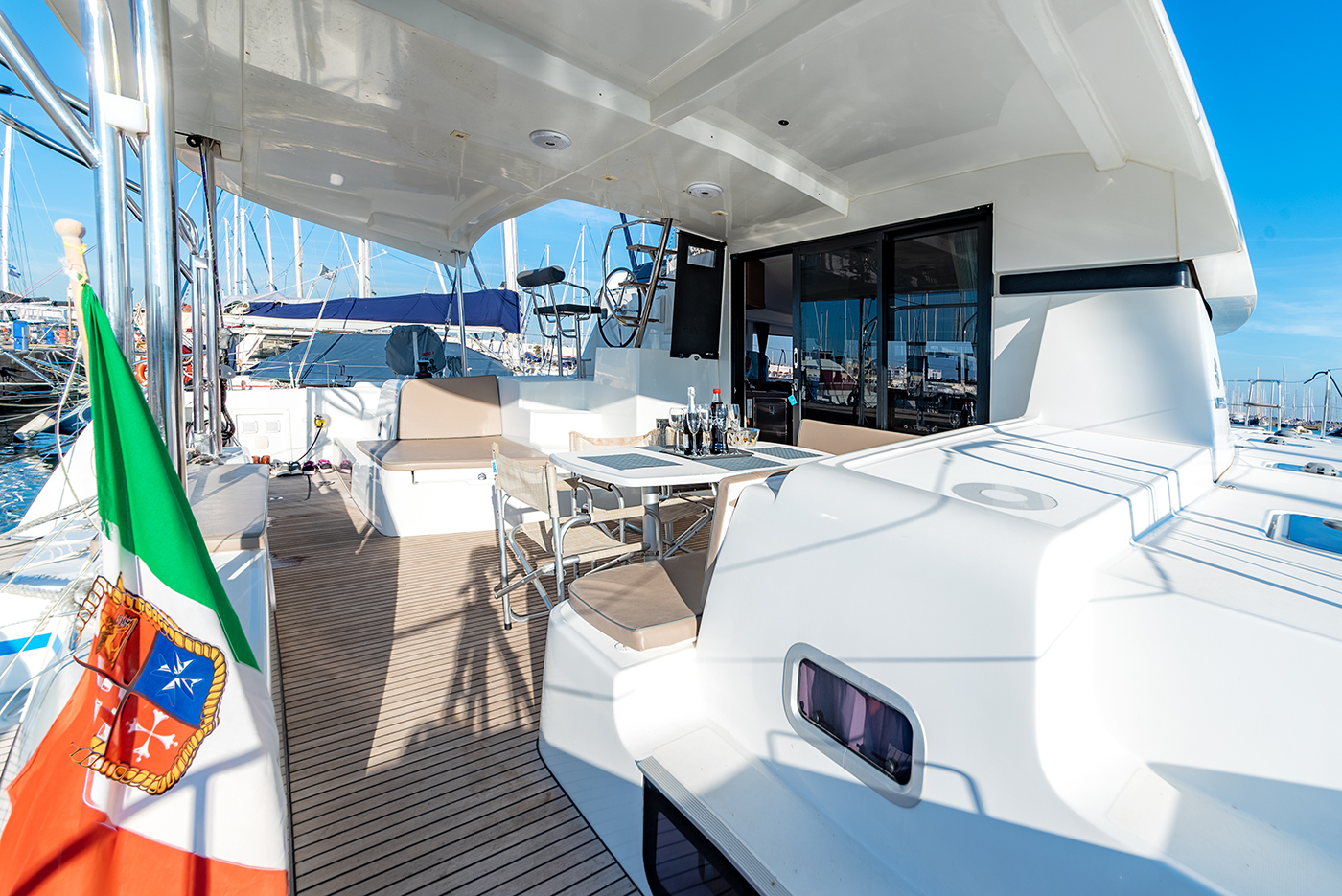 | Inside | Gefrierschrank, Generator, Inverter 12V/220V, Kühlschrank, Ladegerät, Mikrowelle, Nespresso-Maschine, Radio mit CD, Warmwasser, Watermaker, WC (elektr.) |
