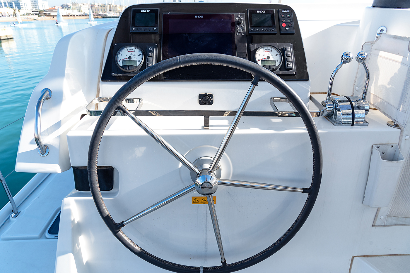 | Outside | Anker mit Kette, Biminitop, Cockpitlautsprecher, Cockpitpolster, Cockpittisch, elektr. Ankerwinsch, elektr. Winsch, Grill, Solaranlage, Sprayhood |