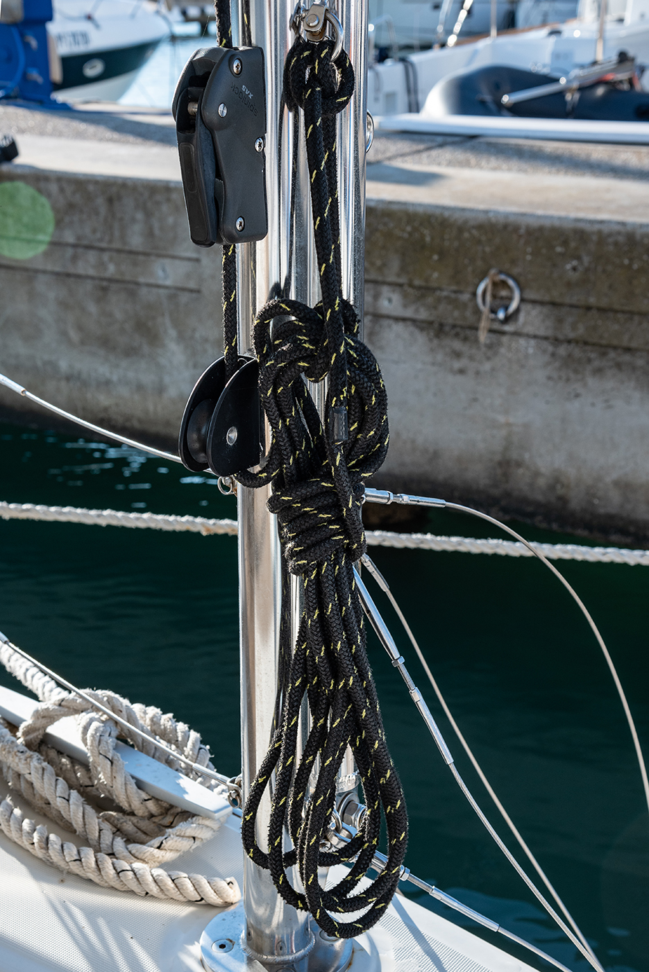 | Navigation | GPS mit Kartenplotter im Salon, Radar, Seekarten, Sumlog, Windmesser |