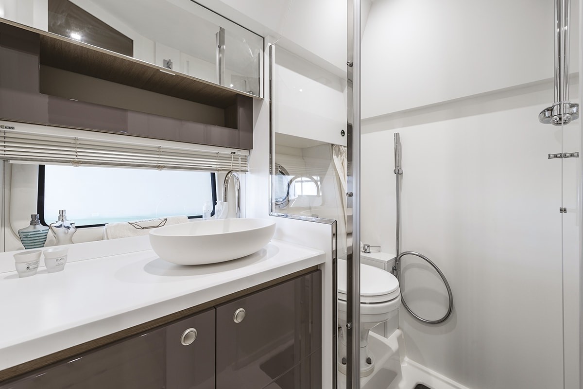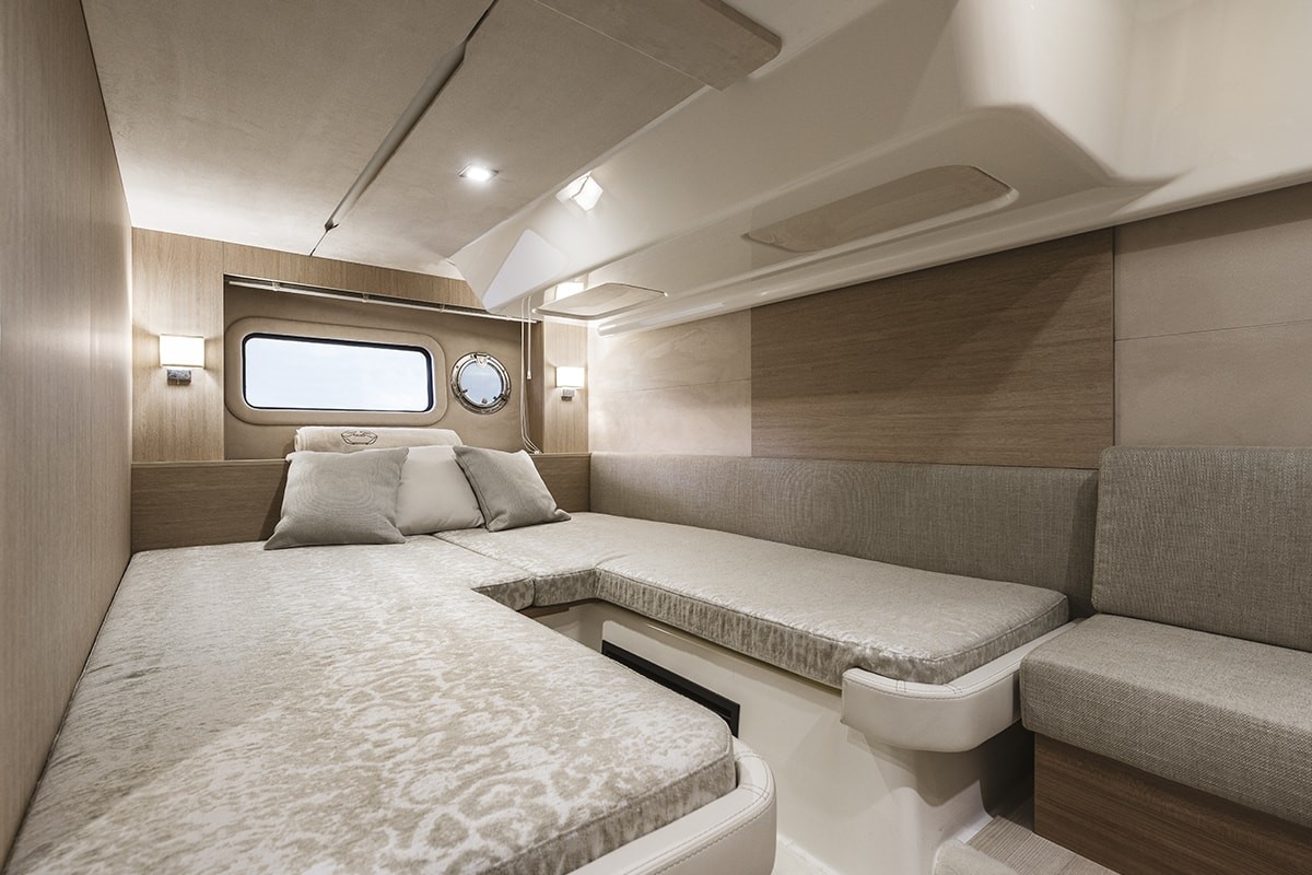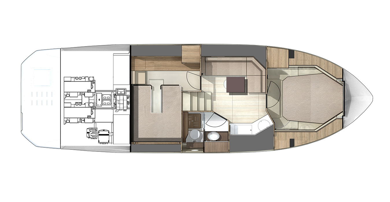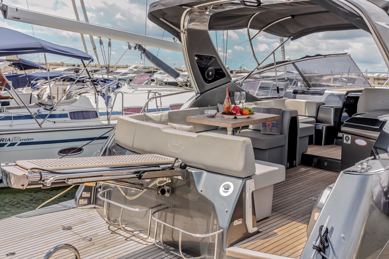 | Outside | Biminitop, Cockpitlautsprecher, Cockpitpolster, elektr. Ankerwinsch, elektr. Gangway, Teakdeck |