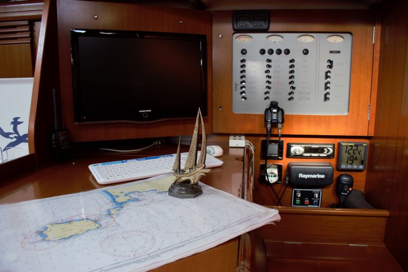 | Navigation | GPS mit Kartenplotter, Tridata (Log, Echolot, Windm.), Windmesser |