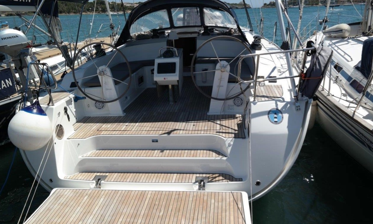 | Outside | Biminitop, Cockpitdusche, Cockpitlautsprecher, Cockpitpolster, elektr. Ankerwinsch, elektr. Winsch, Teak im Cockpit |