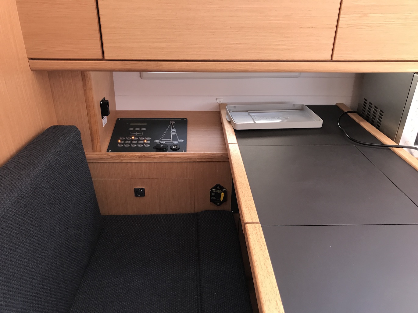 | Safety | Automatikwesten, Autopilot, Bootsmannstuhl, Bordapotheke, Bugstrahlruder, Feuerlöscher, Notpinne, Notsignale, Rettungsinsel, UKW-Funk, Zweitanker |
