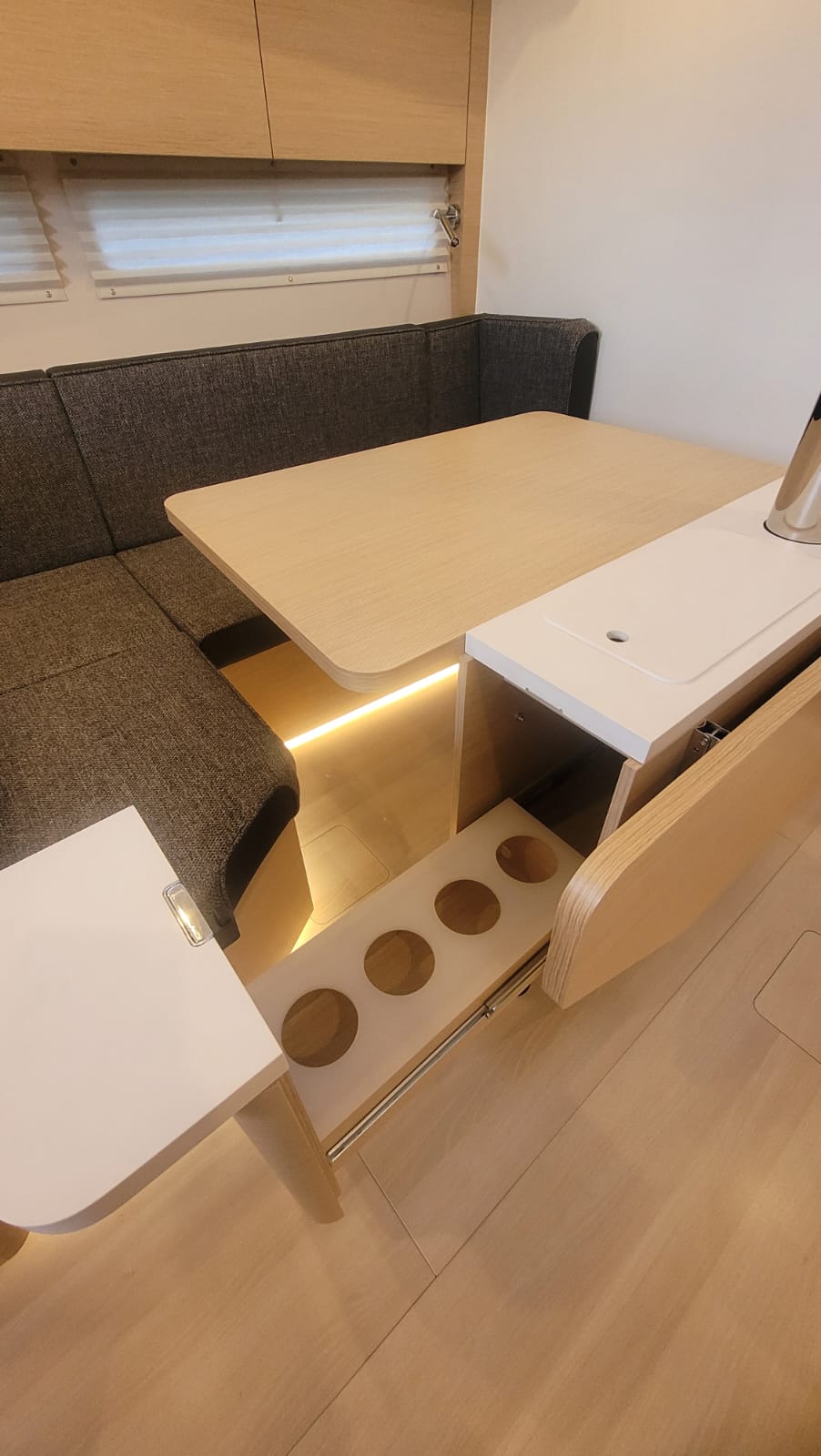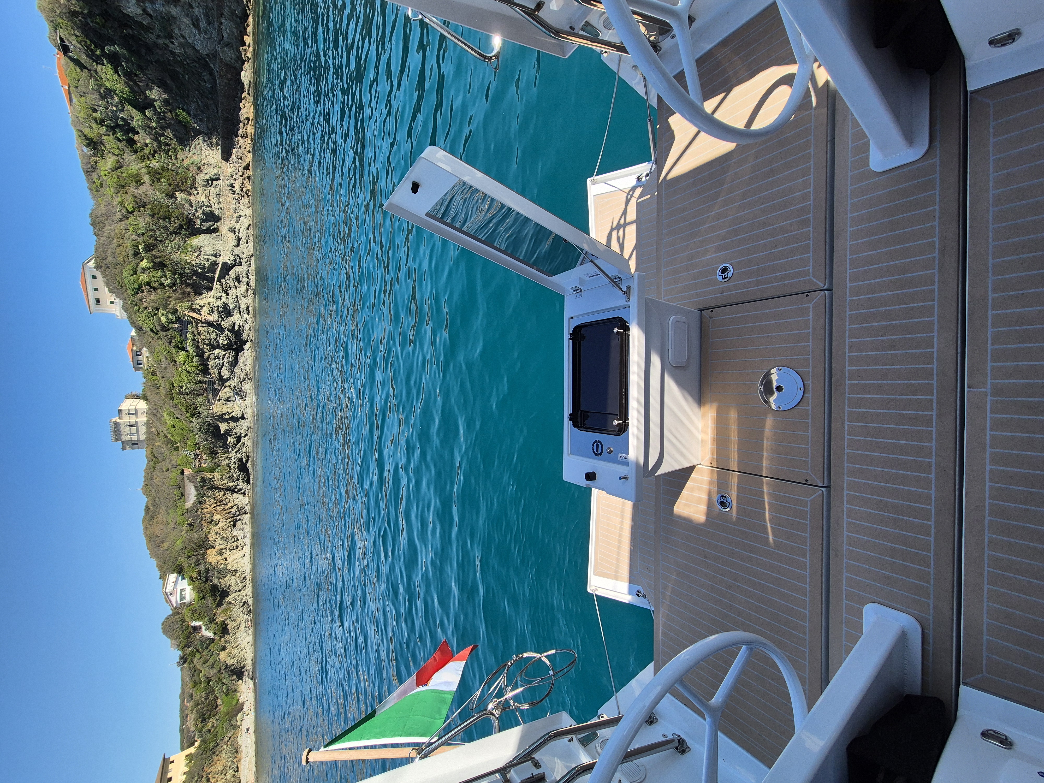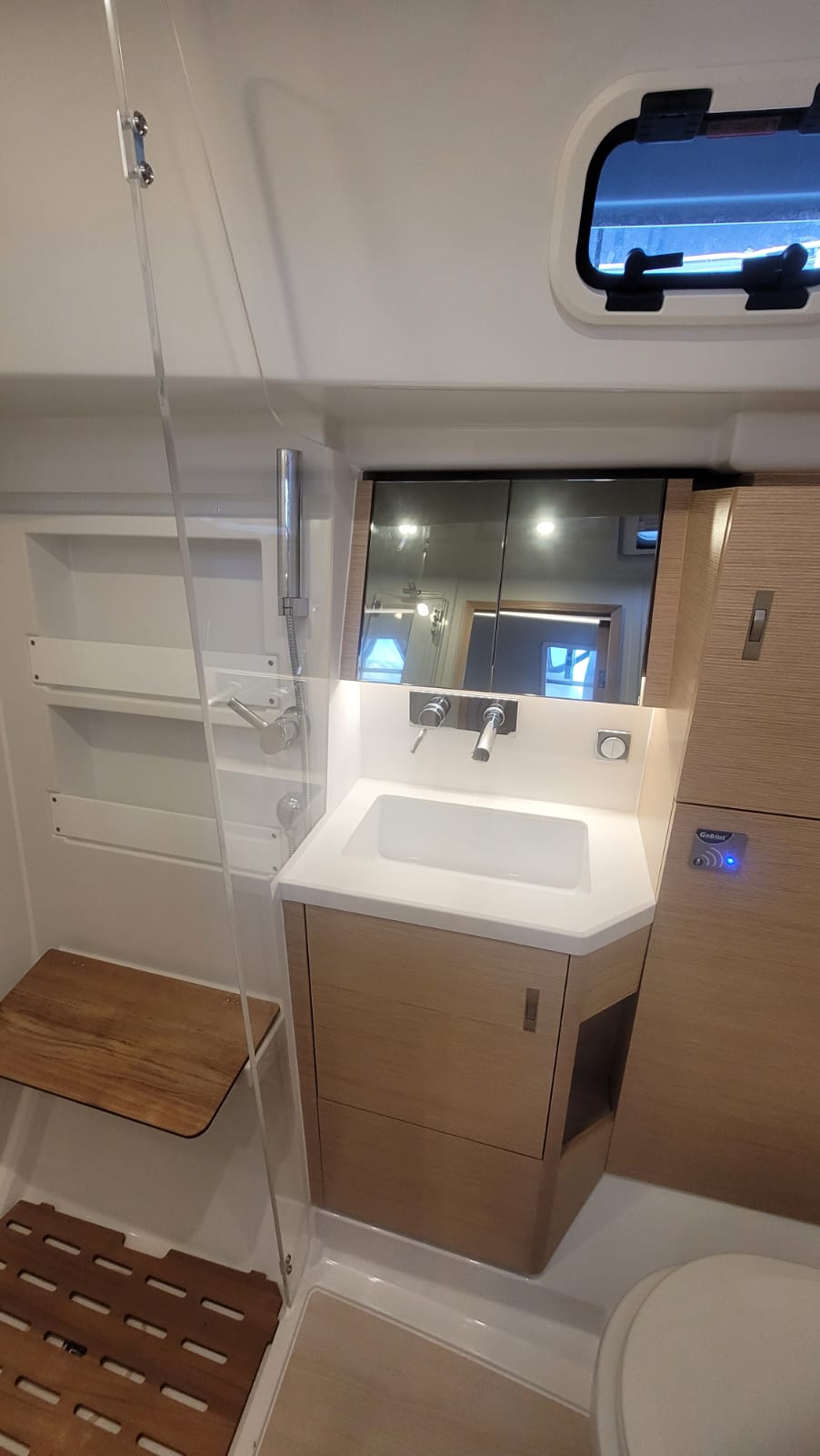 | Outside | Badeplattform, Biminitop, Cockpitlautsprecher, Cockpitpolster, Cockpittisch, elektr. Ankerwinsch, Grill, Sprayhood |
