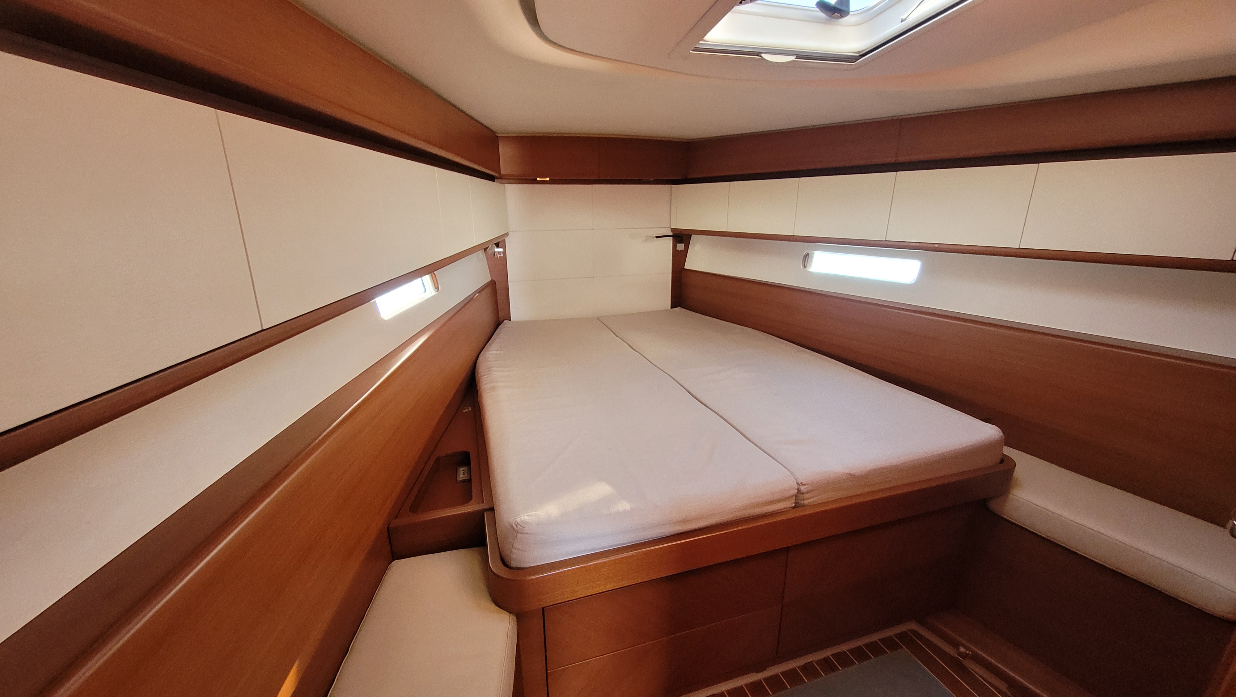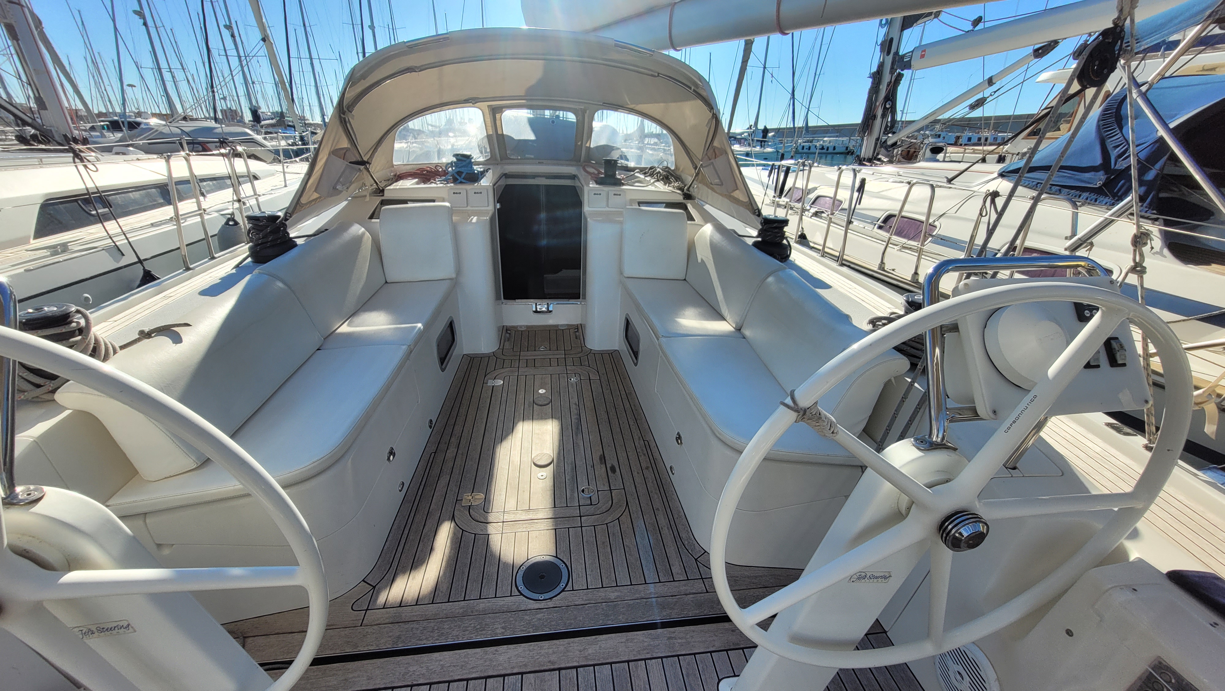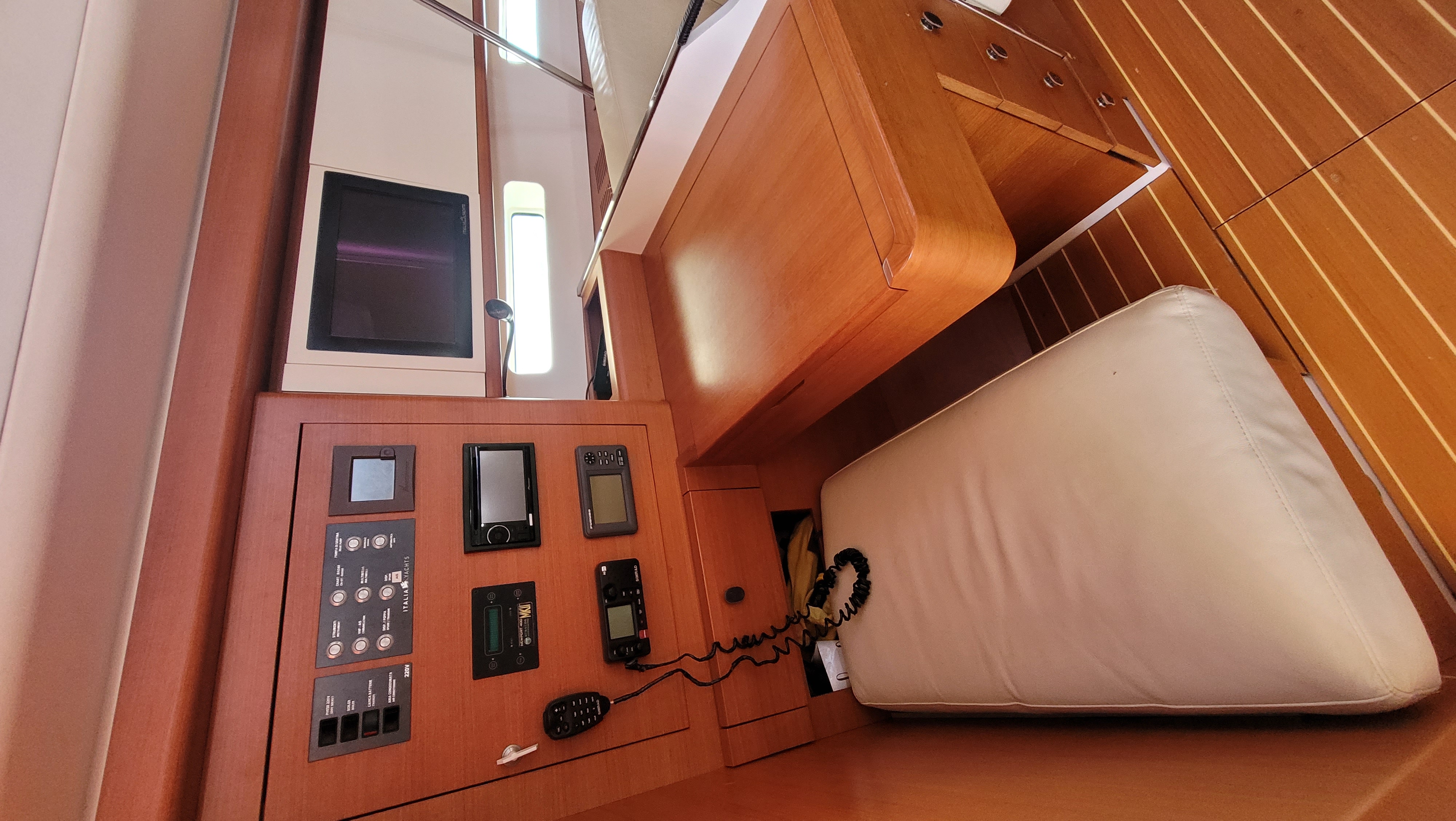 | Outside | Badeplattform, Biminitop, Cockpitpolster, Cockpittisch, elektr. Ankerwinsch, Solaranlage, Sprayhood |