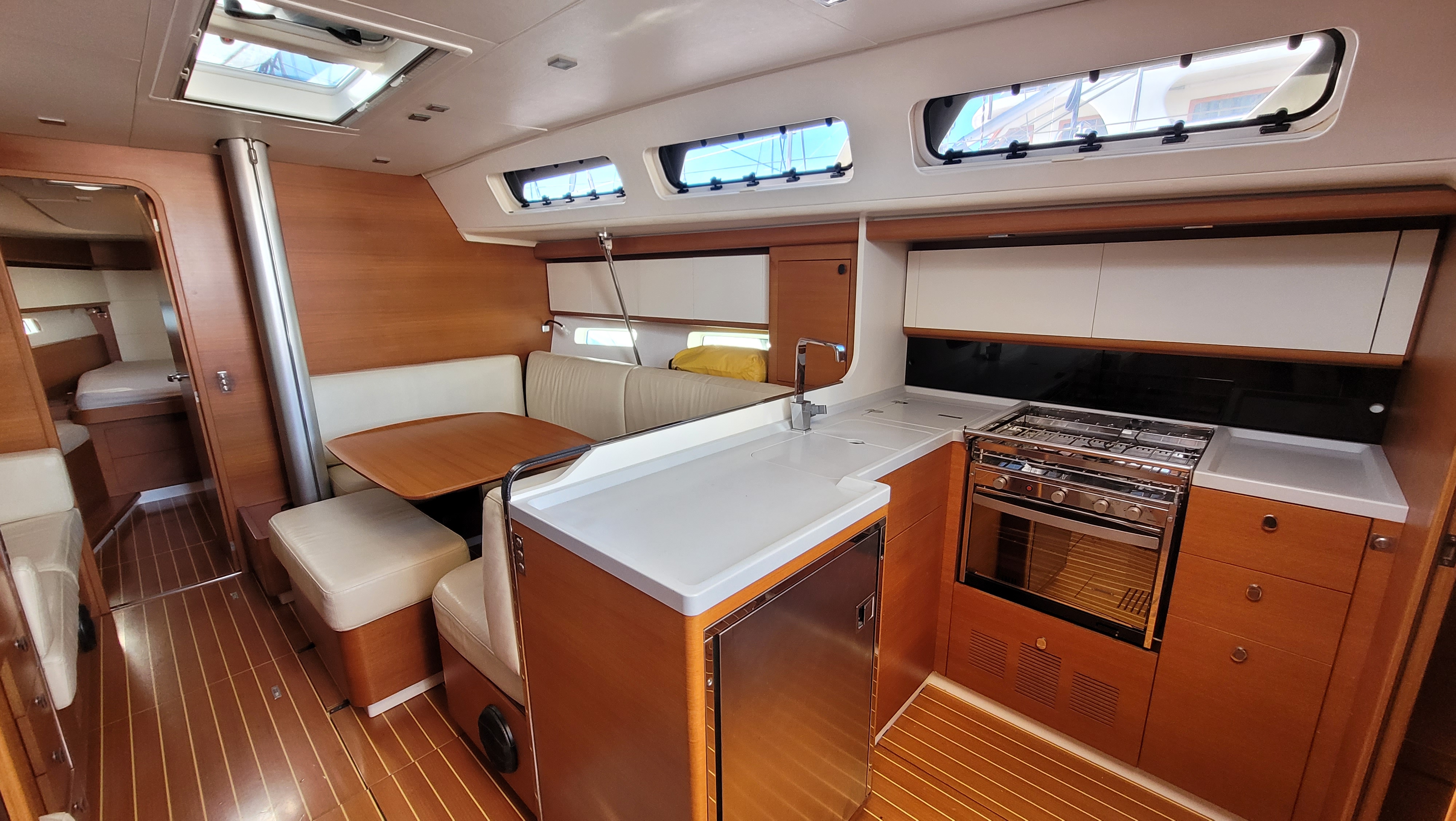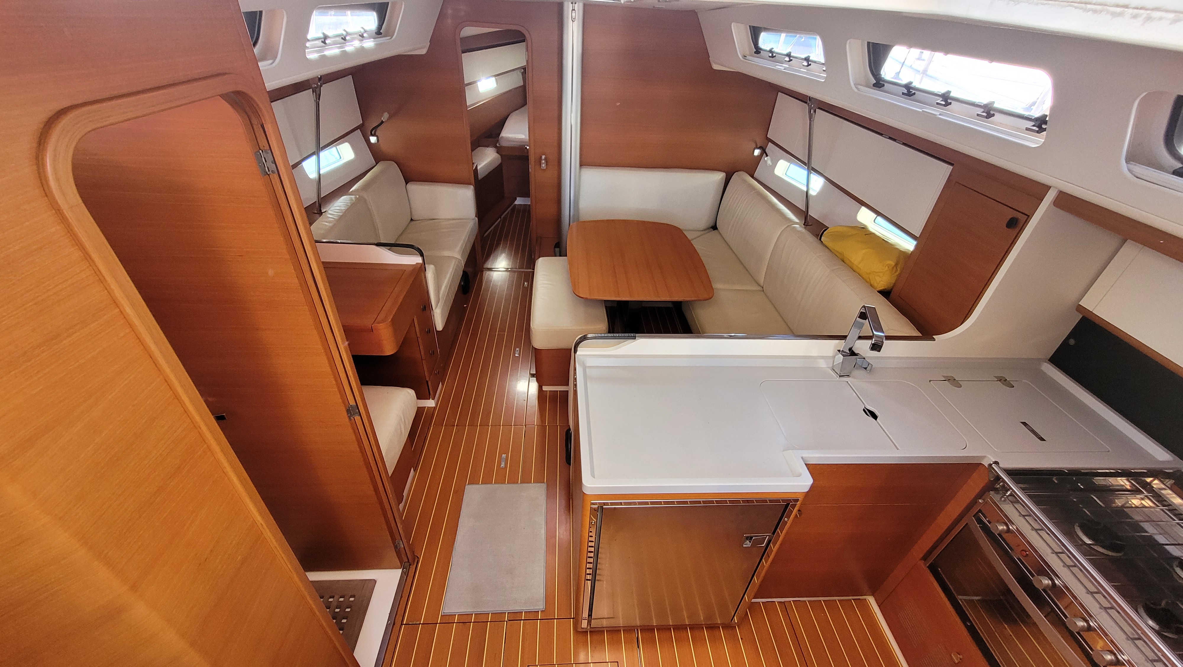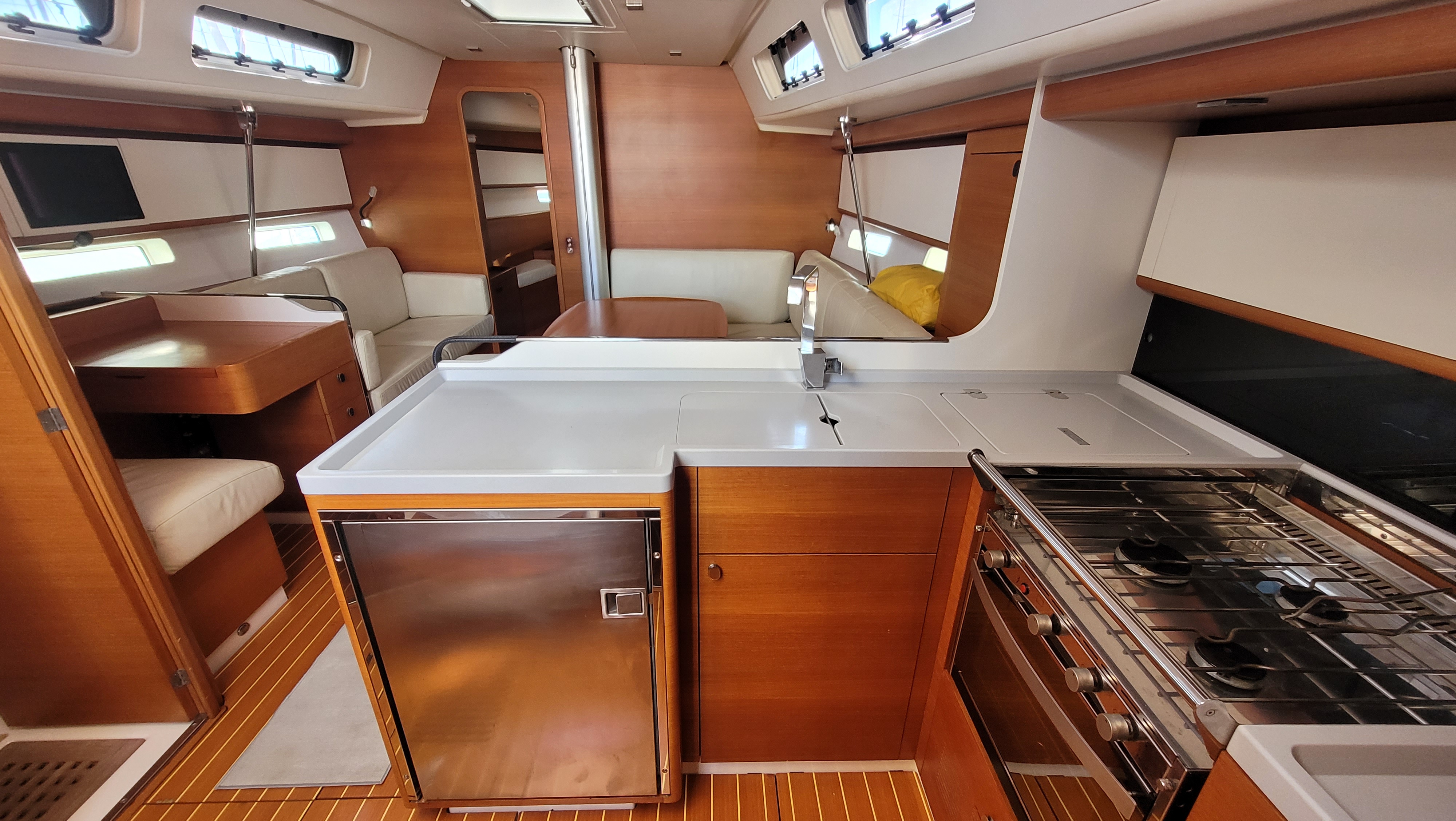 | Outside | Badeplattform, Biminitop, Cockpitpolster, Cockpittisch, elektr. Ankerwinsch, Solaranlage, Sprayhood |