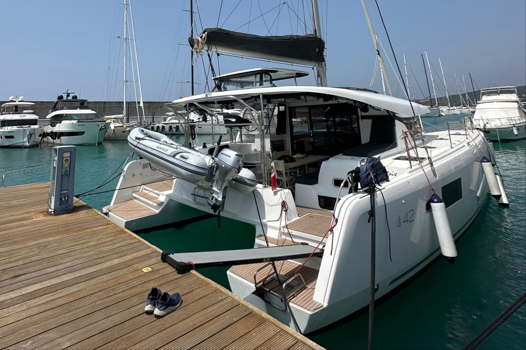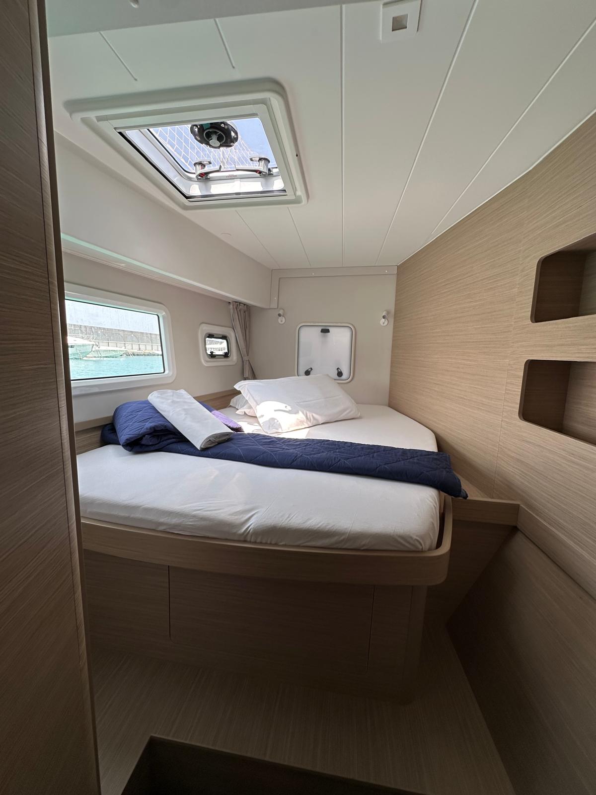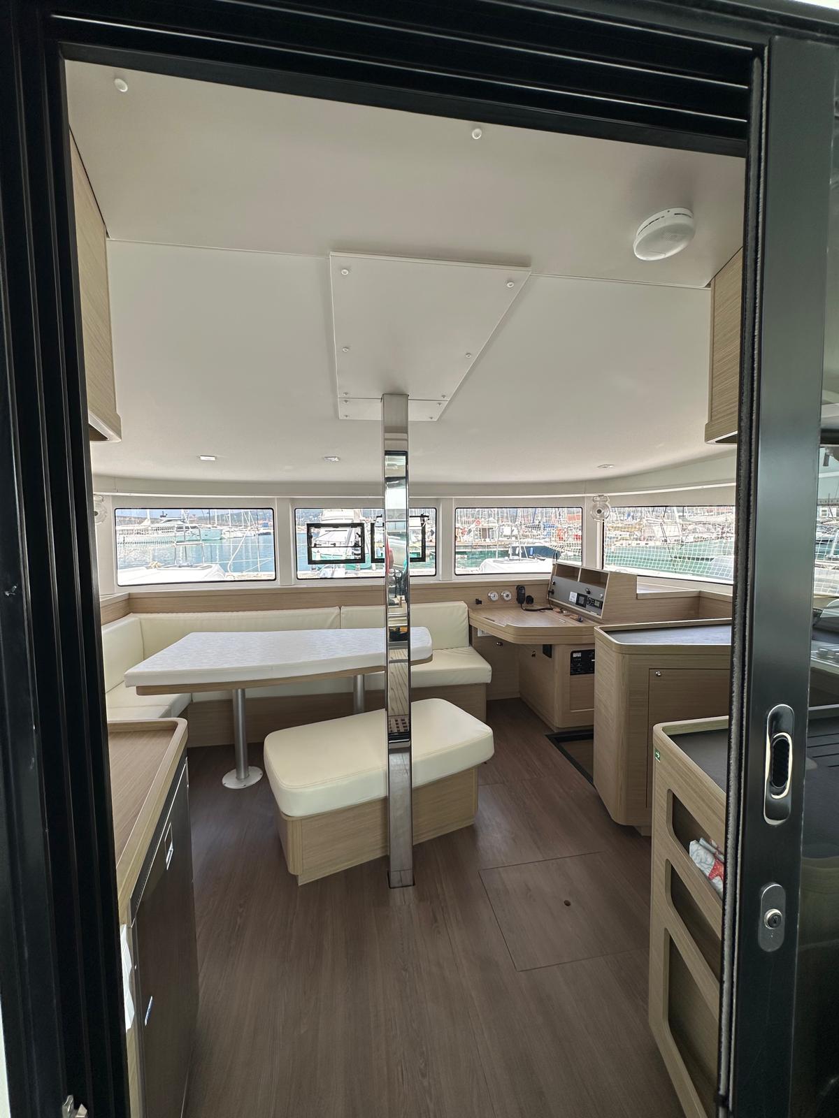 | Inside | Backofen, Inverter 12V/220V, Kaffeemaschine, Landstromkabel, Mikrowelle, Mokkakanne, Pantryausstattung, Radio, Salontisch absenkbar, USB Steckdosen in den Kabinen, Ventilator, Ventilatoren in Kabinen, Warmwasser, Watermaker, WC (elektr.) |