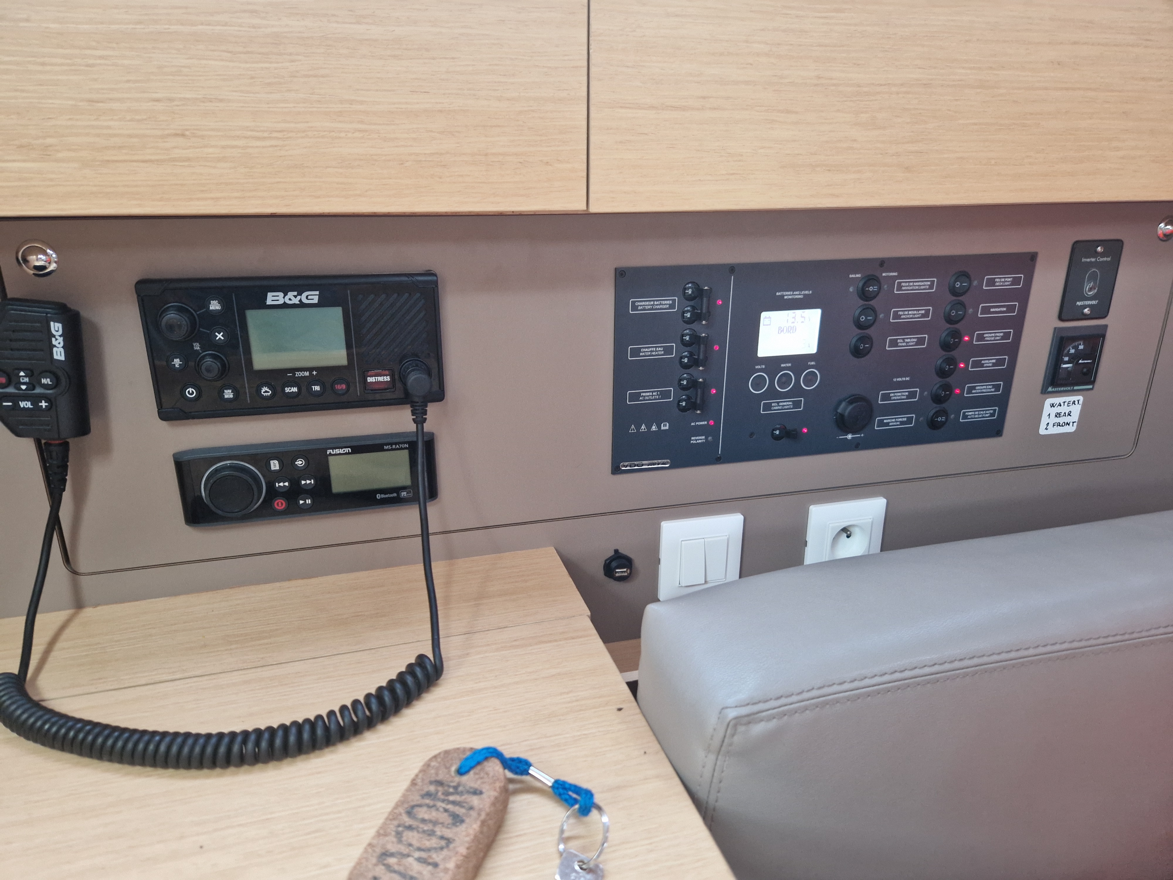 | Safety | Automatikwesten, Autopilot, Bootsmannstuhl, Bordapotheke, Bugstrahlruder, Feuerlöscher, Notpinne, Notsignale, Rettungsinsel, UKW-Funk, Zweitanker |