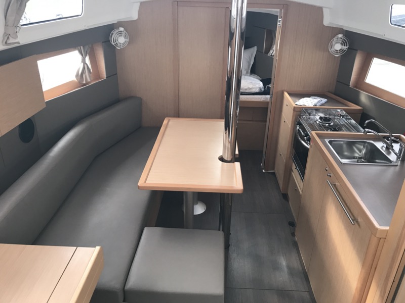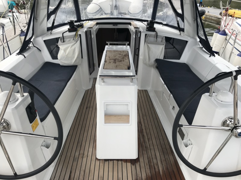| Outside | Biminitop, Cockpitdusche, Cockpitlautsprecher, Cockpitpolster, elektr. Ankerwinsch, Sprayhood, Teak im Cockpit |