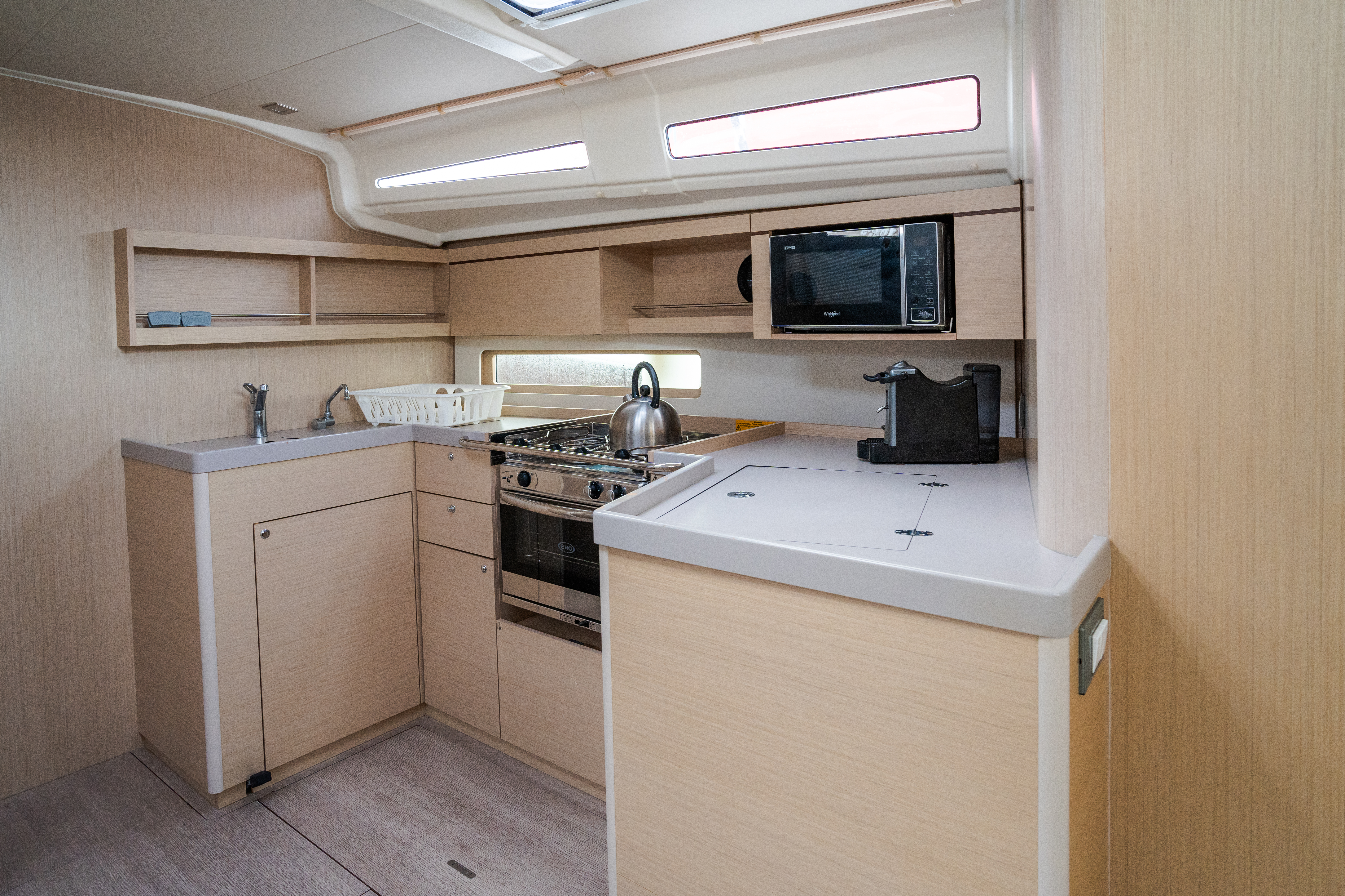 | Inside | Gasherd mit Backofen, Inverter 12V/220V, Kühlschrank, Landstromkabel, Luftpumpe für Beiboot, Mikrowelle, Pantryausstattung, Ventilator, WC (elektr.) |