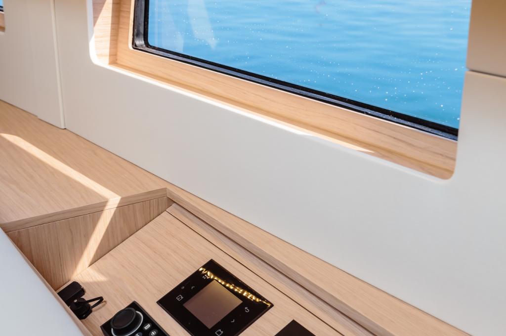 | Outside | 220 V-Landanschluss, Anker mit Kette, Badeplattform, Biminitop, Cockpitdusche, Cockpitkühlschrank, Cockpitlautsprecher, Cockpitpolster, elektr. Winsch, Gangway, Sprayhood, Teakdeck |