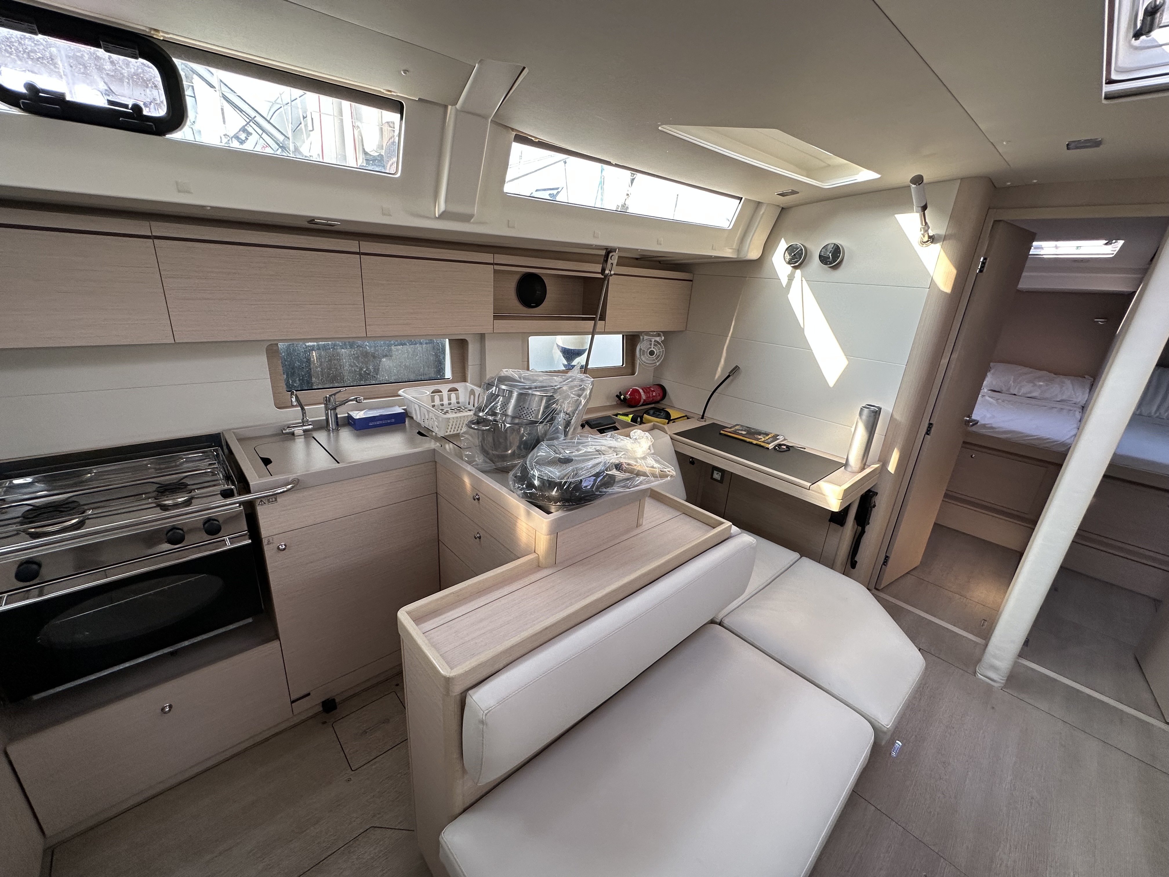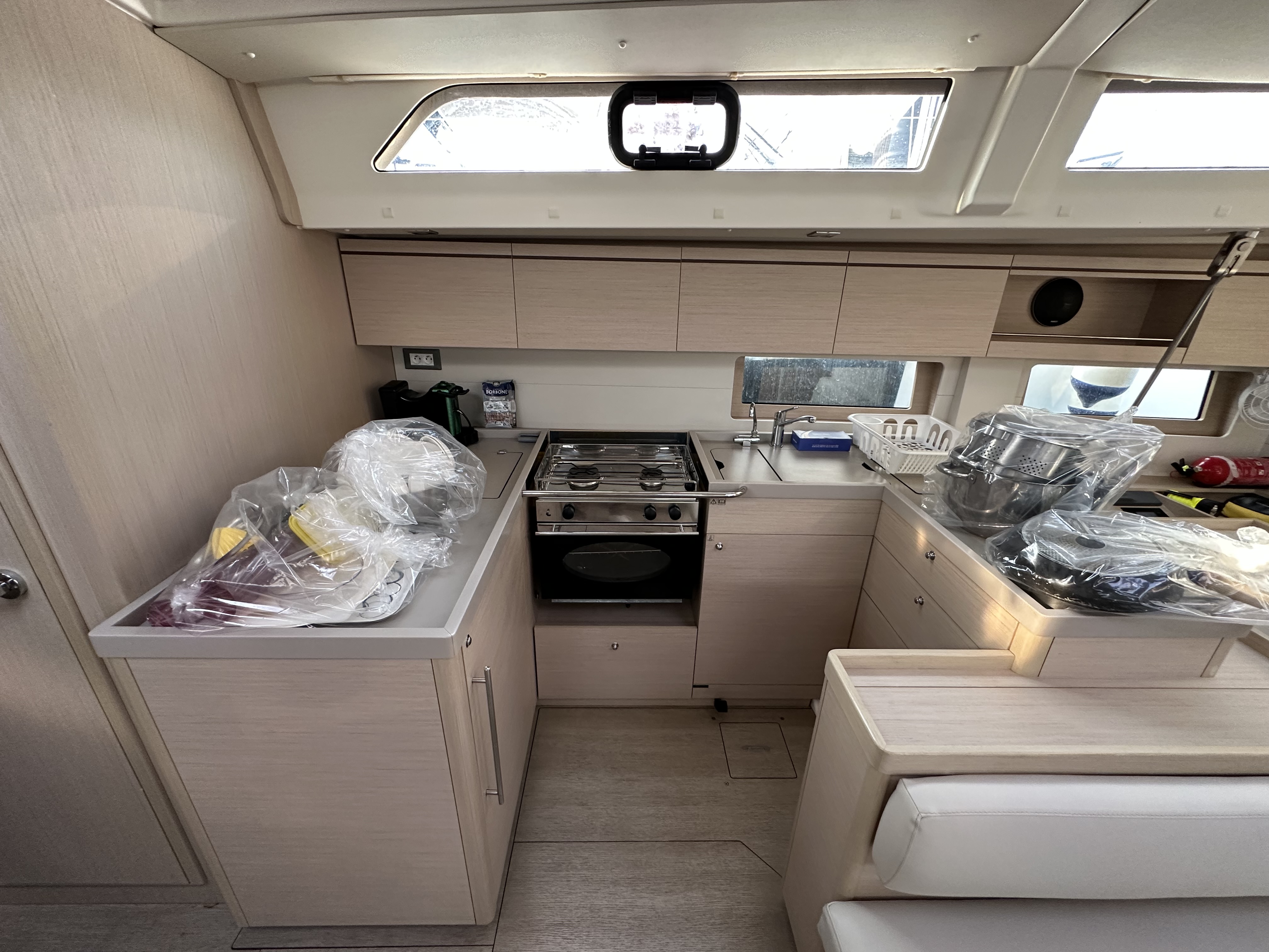 | Inside | Gasherd mit Backofen, Generator, Inverter 12V/220V, Kaffeemaschine, Klimaanlage (ohne Landstrombedarf), Kühlschrank, Landstromkabel, Luftpumpe für Beiboot, Mikrowelle, Ventilator, WC (elektr.) |