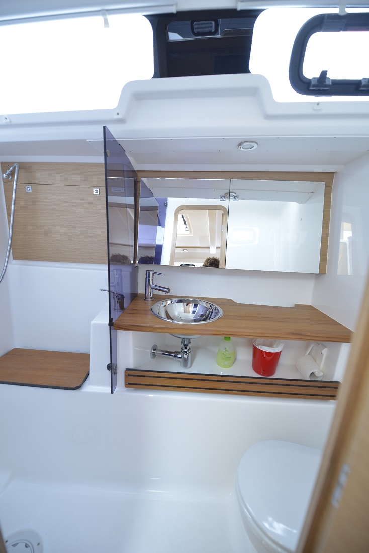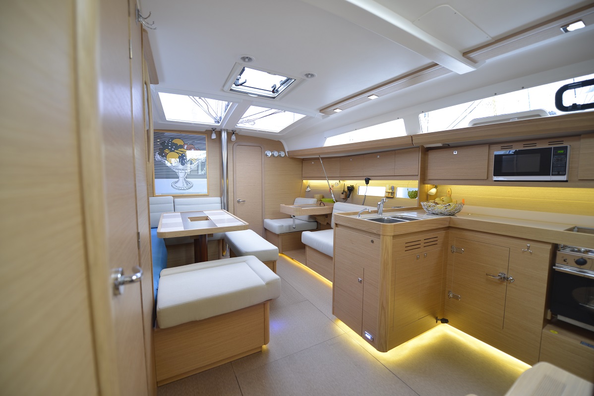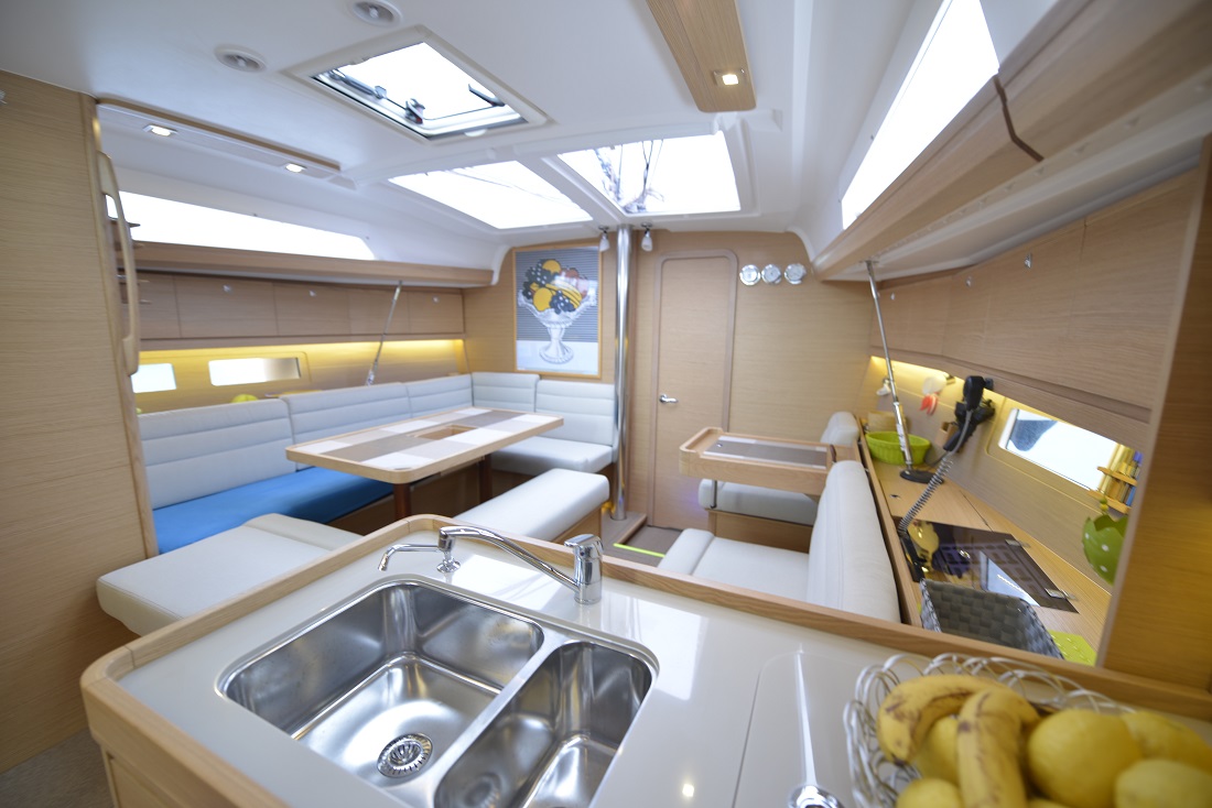 | Outside | 220 V-Landanschluss, Badeleiter, Biminitop, Cockpitdusche, Cockpitlautsprecher, Cockpitpolster, Cockpittisch, Delta-Anker, elektr. Ankerwinsch, Festmacherleinen, Grill, Selbstholende Winschen, Sprayhood |