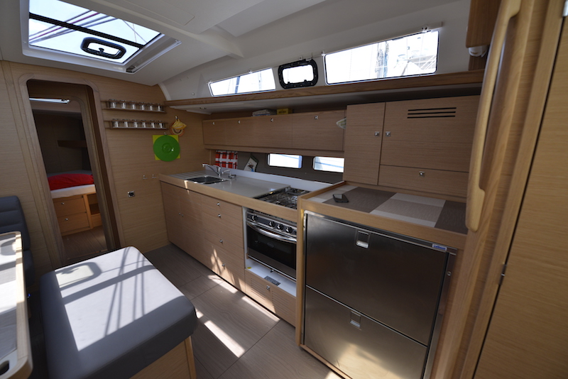 | Outside | Badeleiter, Biminitop, Cockpitdusche, Cockpitkühlschrank, Cockpitpolster, Delta-Anker, elektr. Ankerwinsch, Festmacherleinen, Grill, Selbstholende Winschen, Sprayhood |