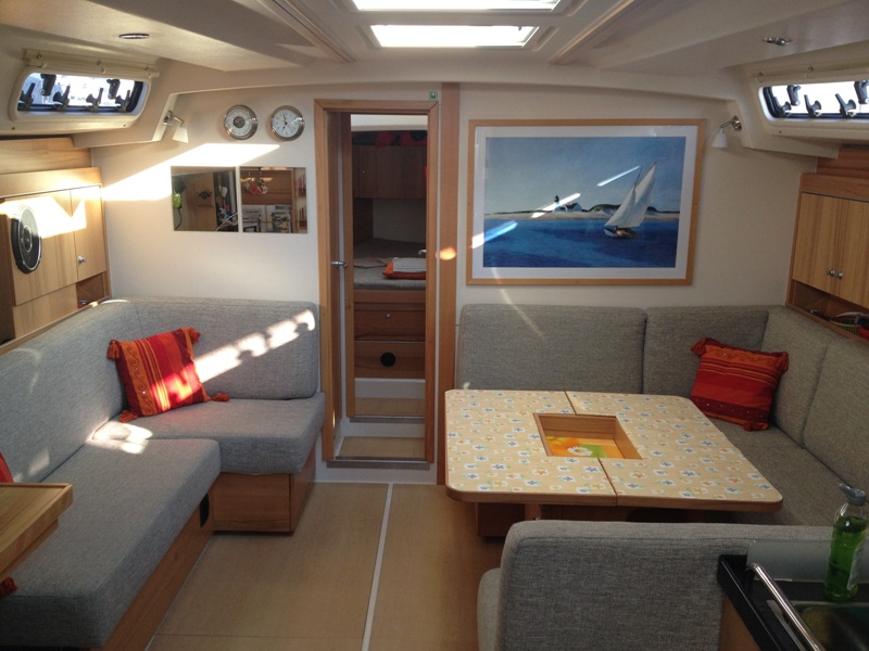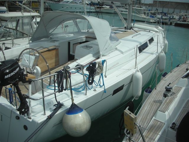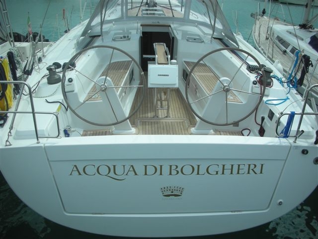 | Outside | 220 V-Landanschluss, Badeleiter, Biminitop, Cockpitdusche, Cockpitlautsprecher, Cockpittisch, Delta-Anker, elektr. Ankerwinsch, elektr. Genuawinsch, Festmacherleinen, Selbstholende Winschen, Sprayhood, Teak im Cockpit |