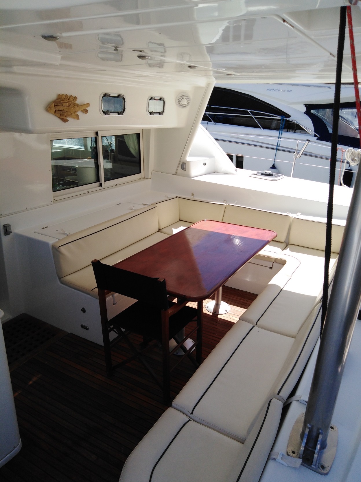 | Outside | Biminitop, Bootshaken, Cockpitdusche, Cockpittisch |