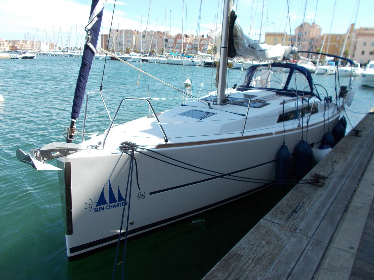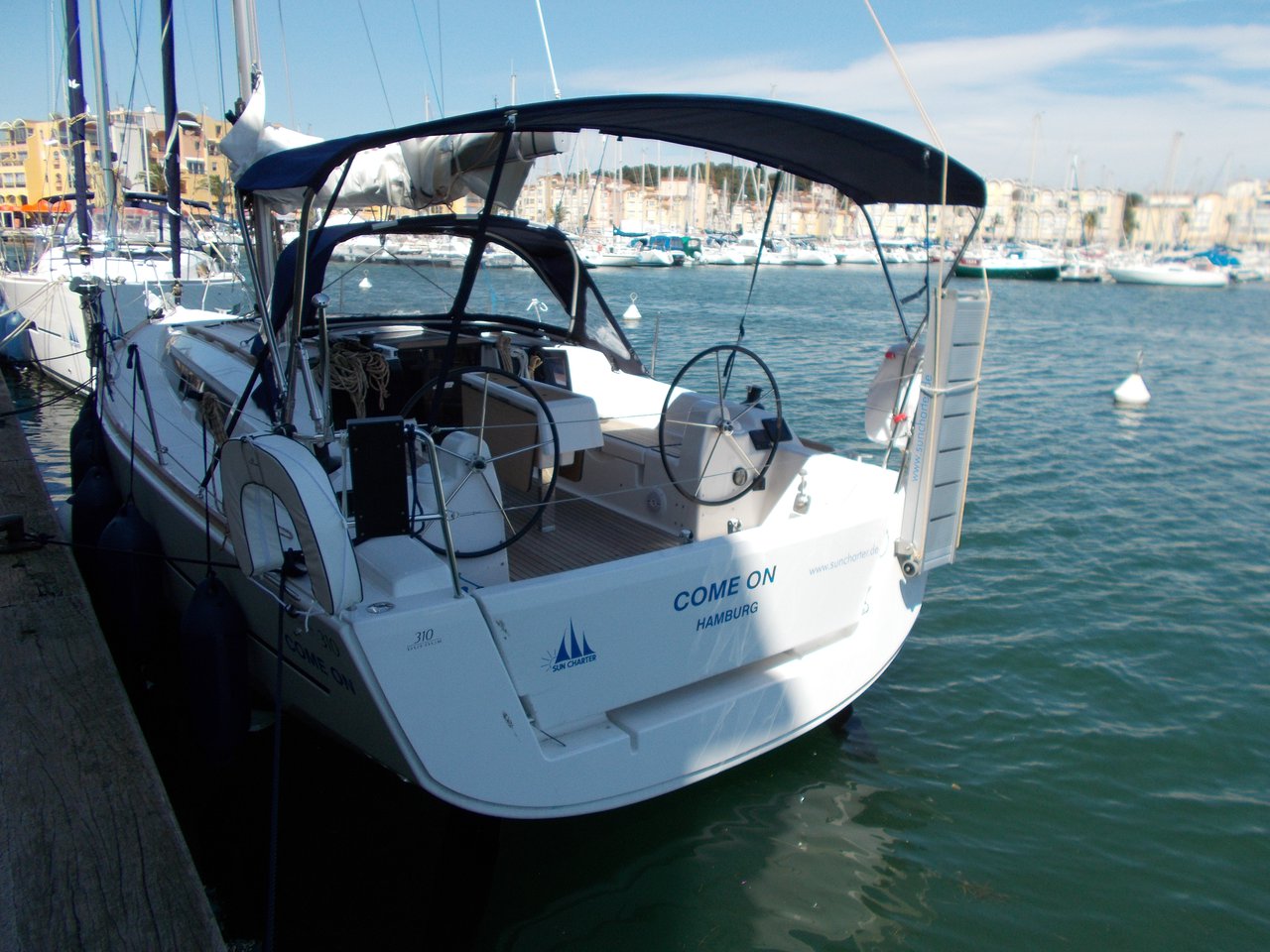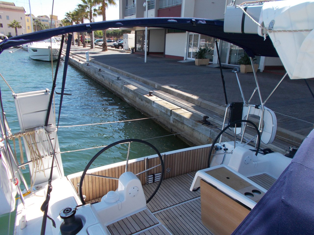 | Outside | 220 V-Landanschluss, Anker mit Kette, Ankerwinsch, Biminitop, Bootshaken, Cockpitdusche, Cockpitlautsprecher, Cockpitpolster, Cockpittisch, Dieselkanister , elektr. Ankerwinsch, Faltpropeller, Fender, Festmacherleinen, Gangway, Kugelfender, Kunststoff-Eimer (Pütz), Lifeline System, Sprayhood, Teak im Cockpit, Wantenschneider, Wasserkanister , Wasserschlauch, Windex |