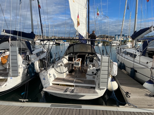 | Outside | 220 V-Landanschluss, Anker mit Kette, Ankerwinsch, Biminitop, Bootshaken, Cockpitdusche, Cockpitlautsprecher, Cockpitpolster, Cockpittisch, Dieselkanister , elektr. Ankerwinsch, Fender, Festmacherleinen, Gangway, Kugelfender, Kunststoff-Eimer (Pütz), Lifeline System, Sprayhood, Teak im Cockpit, Wantenschneider, Wasserkanister , Wasserschlauch, Windex |