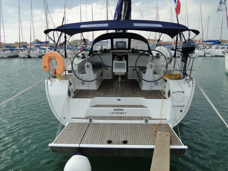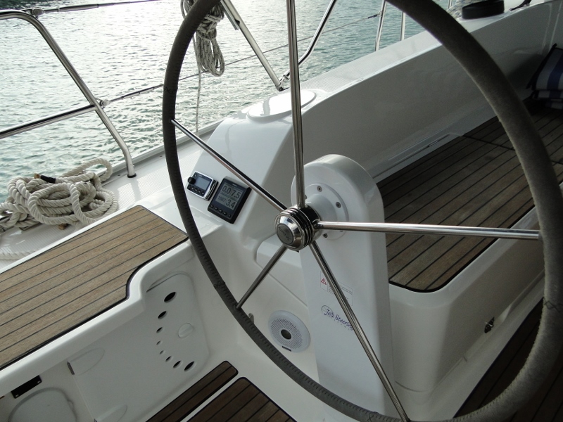 | Outside | 12 V-Anschluss, 220 V-Landanschluss, Badeleiter, Badeplattform, Biminitop, Cockpitdusche, Cockpitlautsprecher, Cockpitpolster, Cockpittisch, elektr. Ankerwinsch, Gangway, Schnorchelausrüstung, Selbstholende Winschen, Solaranlage, Sprayhood, Windex |