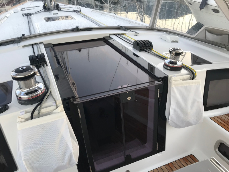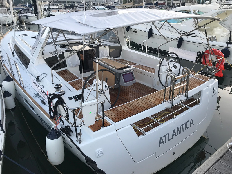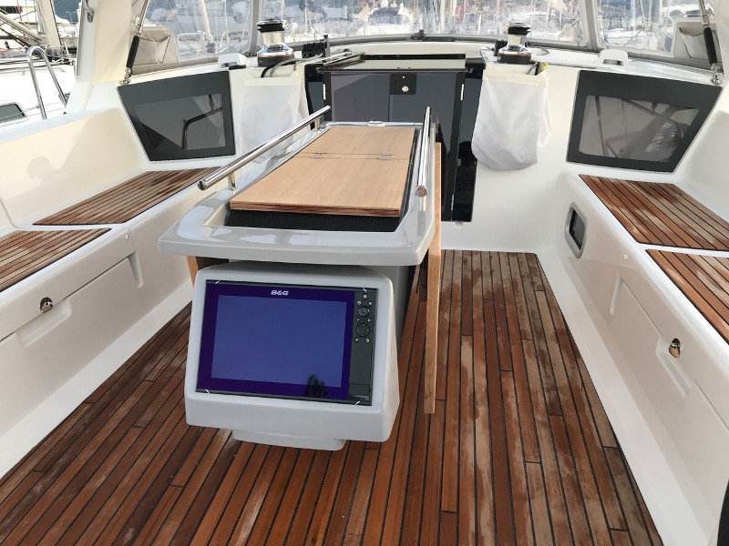 | Outside | Badeplattform elektr., Biminitop, Cockpitdusche warm/kalt, Cockpitlautsprecher, Cockpitpolster, Deckbeleuchtung, elektr. Ankerwinsch, elektr. Winsch, Sprayhood, Teak im Cockpit |
