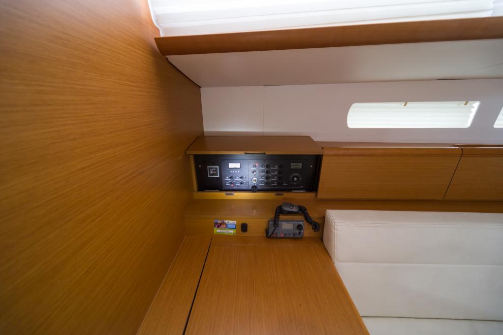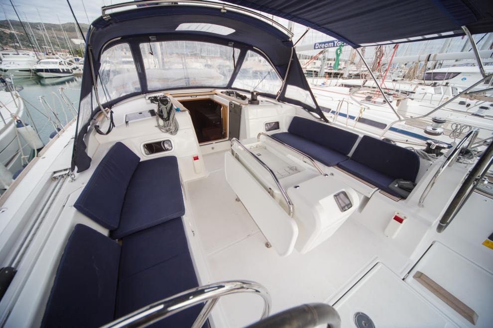 | Outside | 12 V-Anschluss, 220 V-Landanschluss, Badeleiter, Biminitop, Cockpitdusche, Cockpitlautsprecher, Cockpitpolster, Cockpittisch, elektr. Ankerwinsch, Gangway, Sprayhood, Windex |