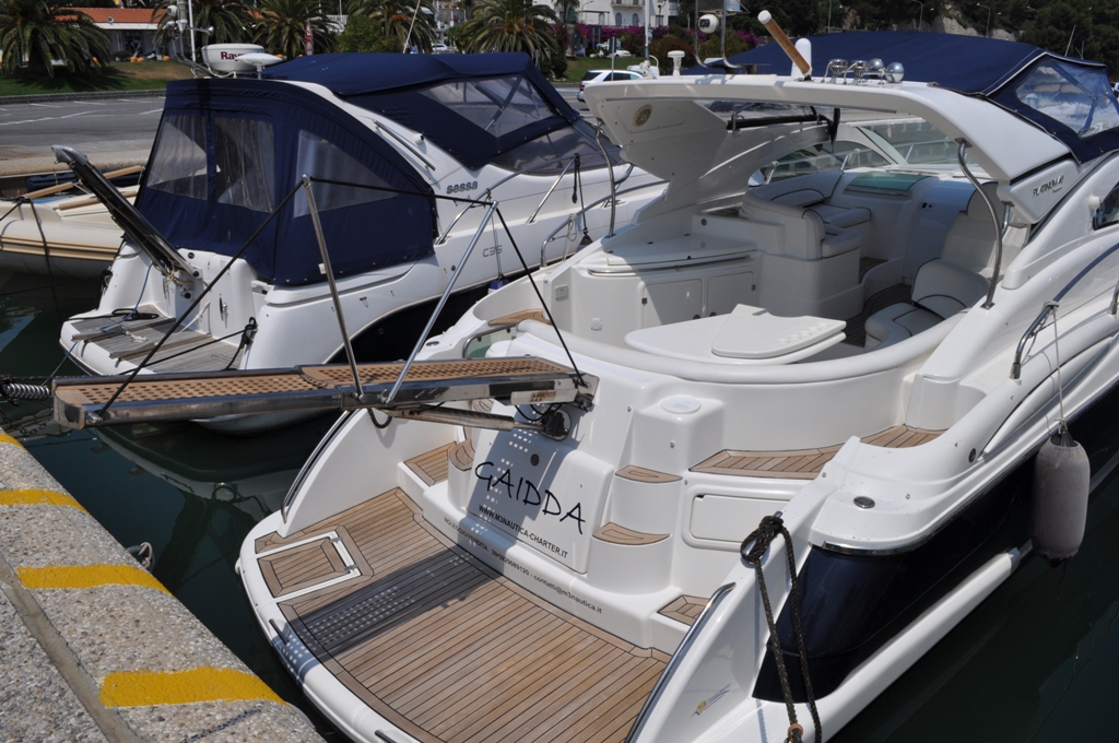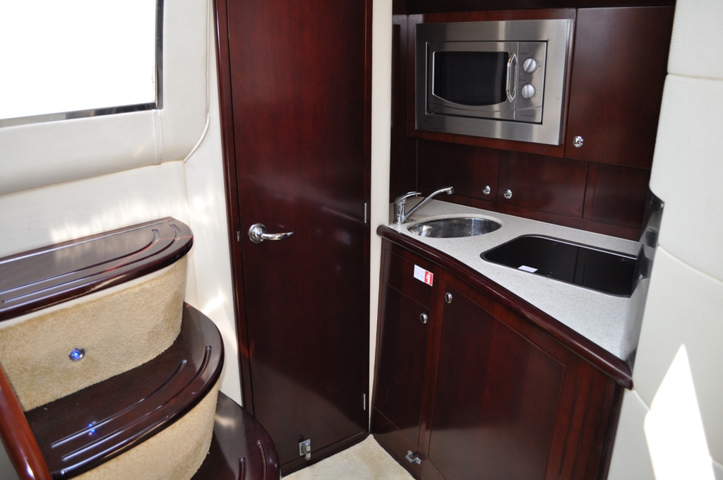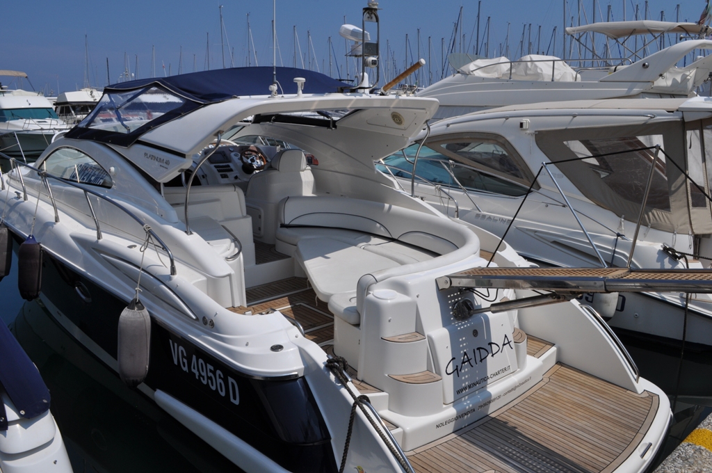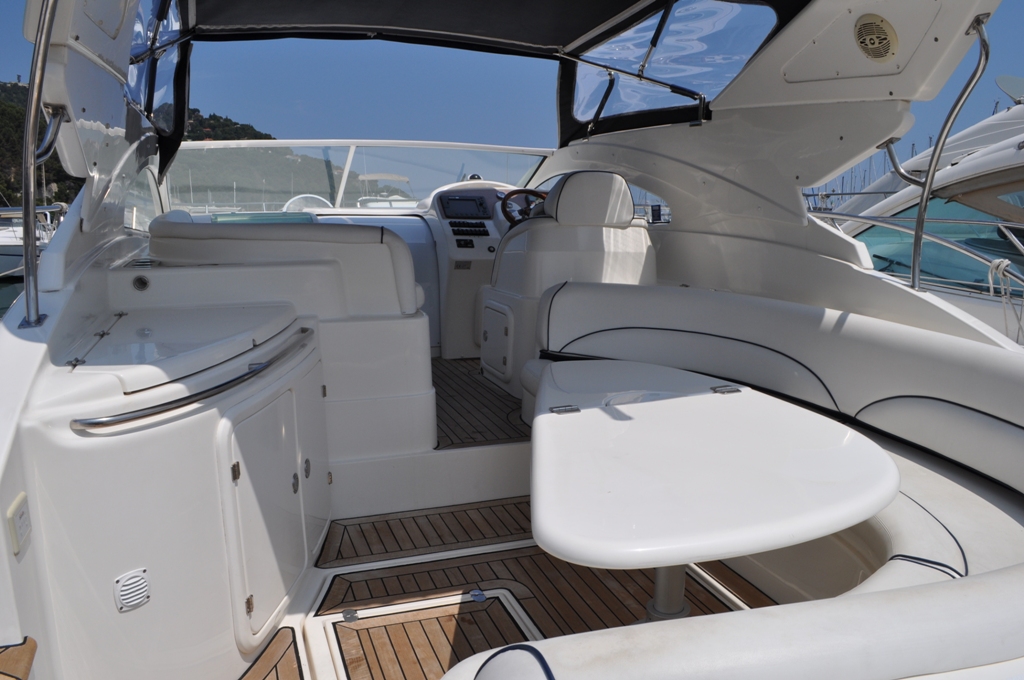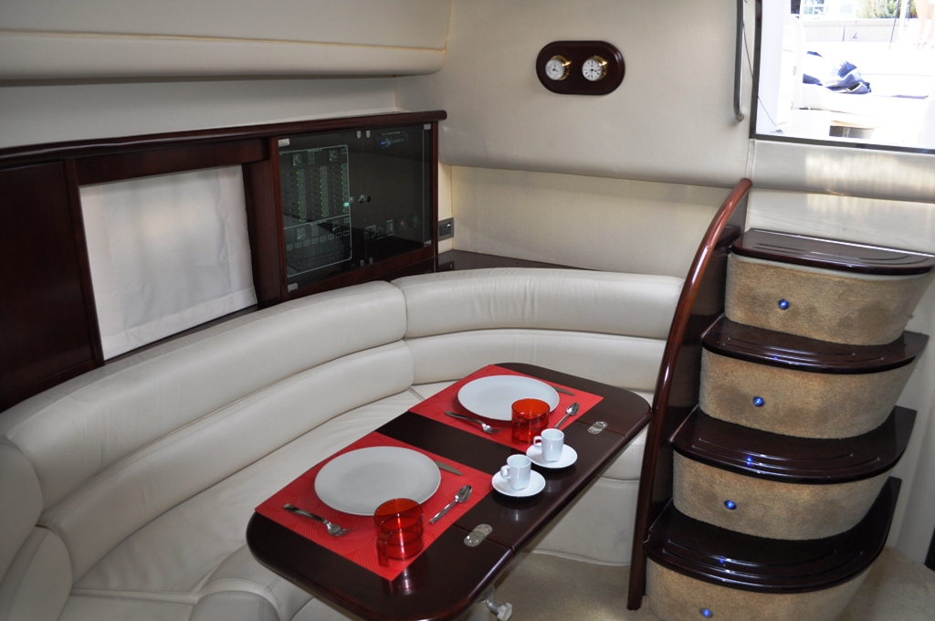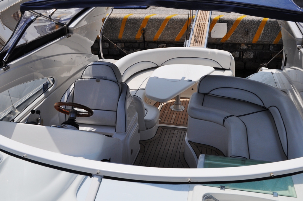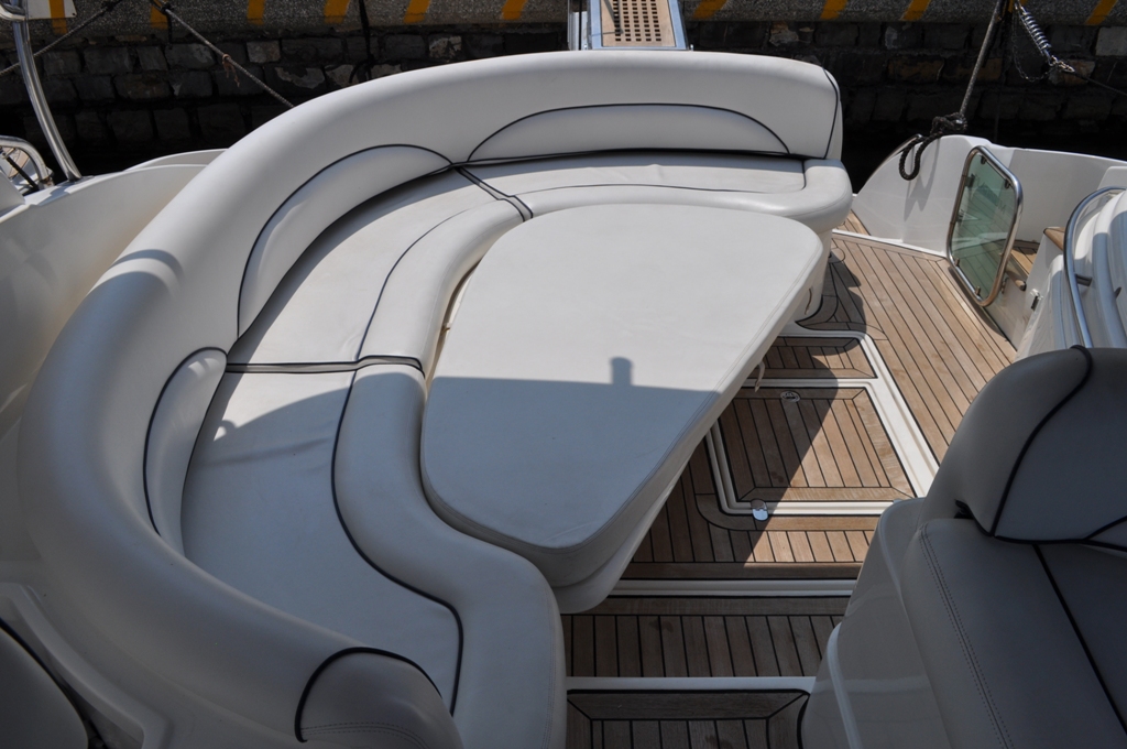 | Outside | 220 V-Landanschluss, Badeplattform, Biminitop, Cockpitdusche, Cockpitlautsprecher, Cockpittisch, elektr. Ankerwinsch, hydraul. Gangway, Teak auf Badeplattform, Teak im Cockpit, Teakdeck |