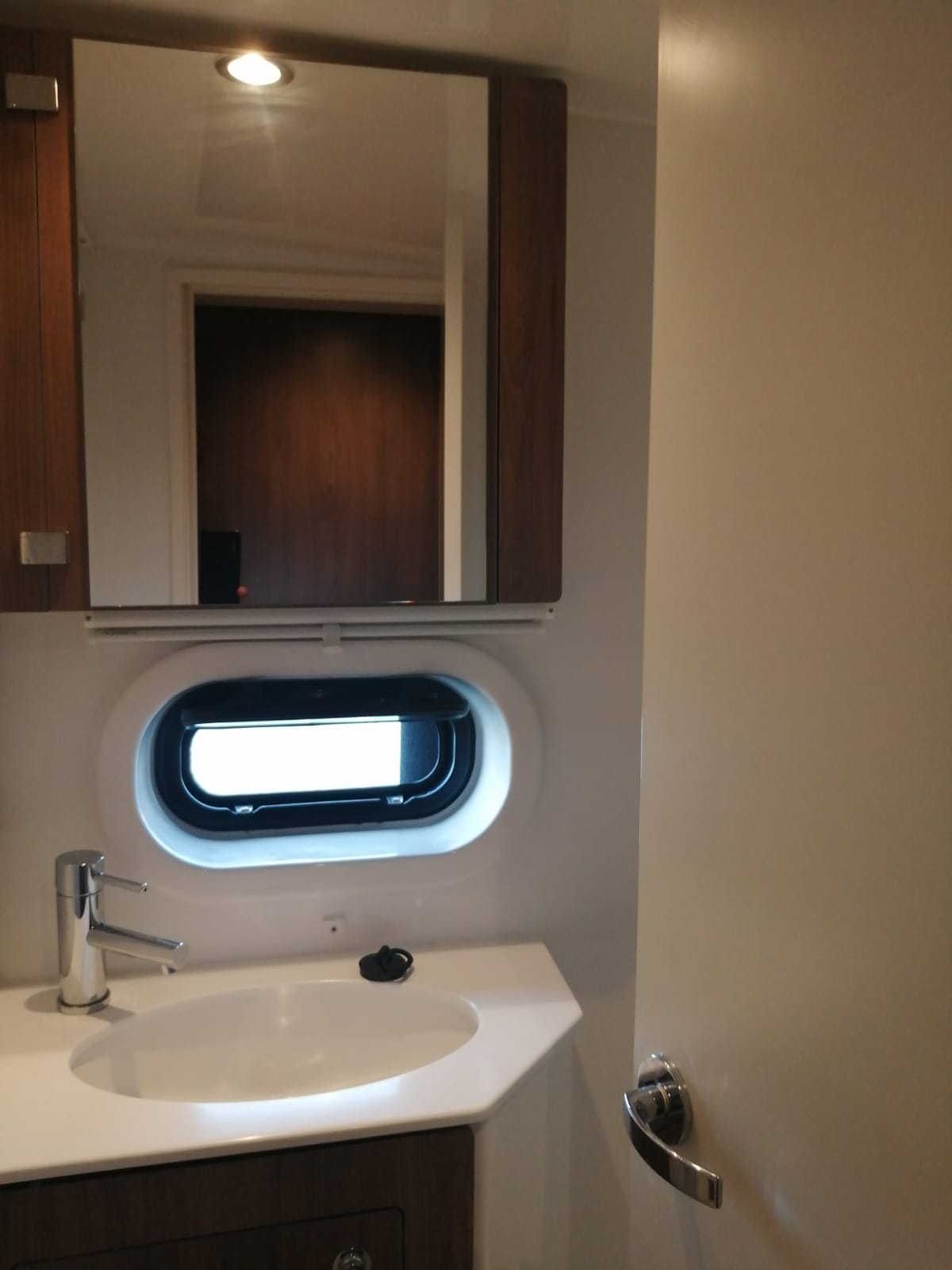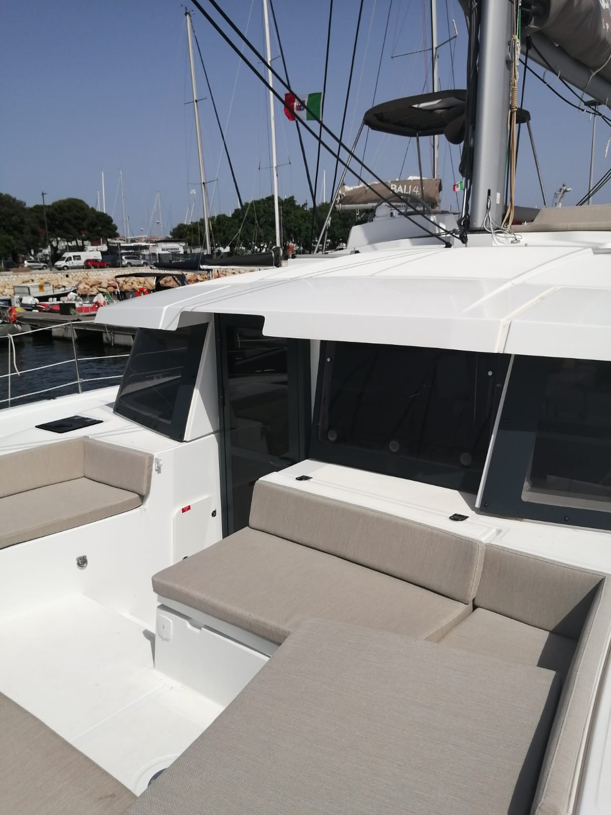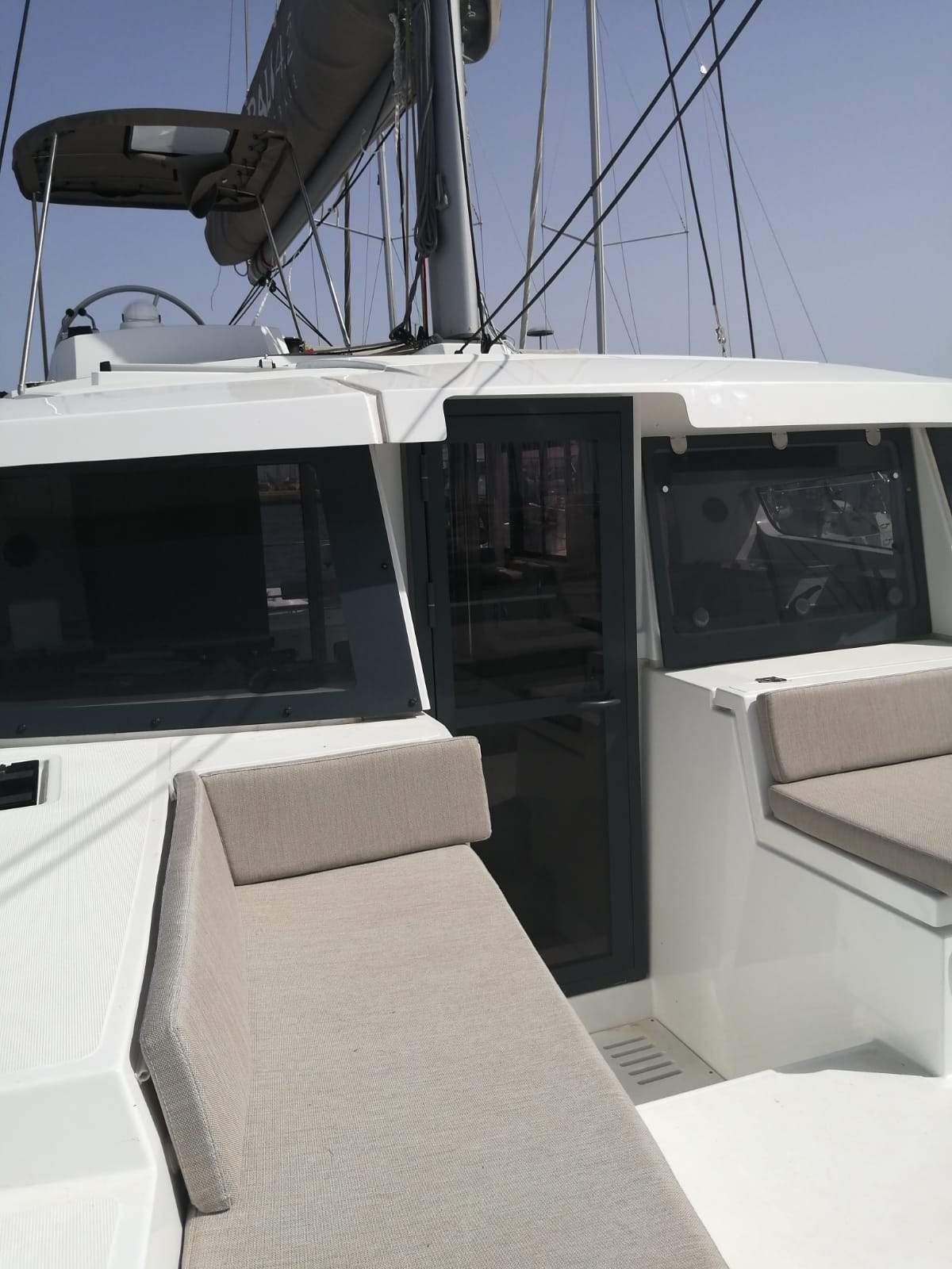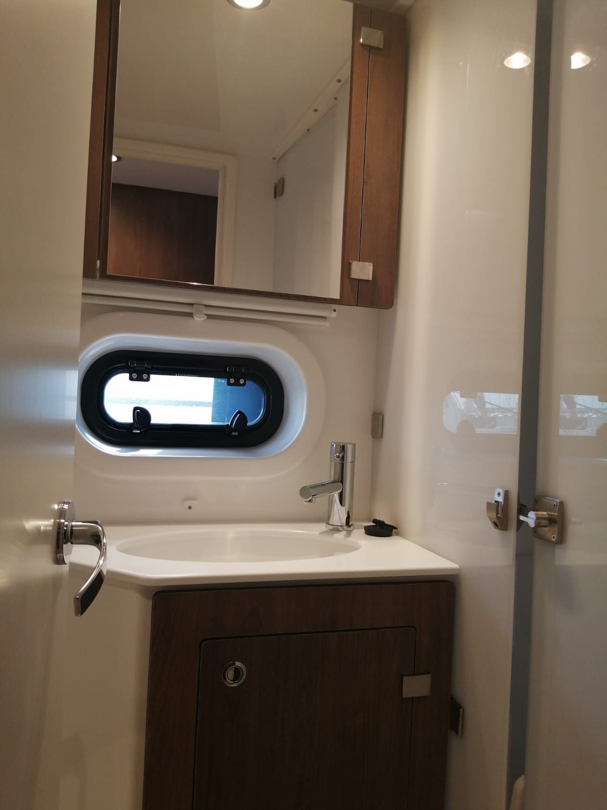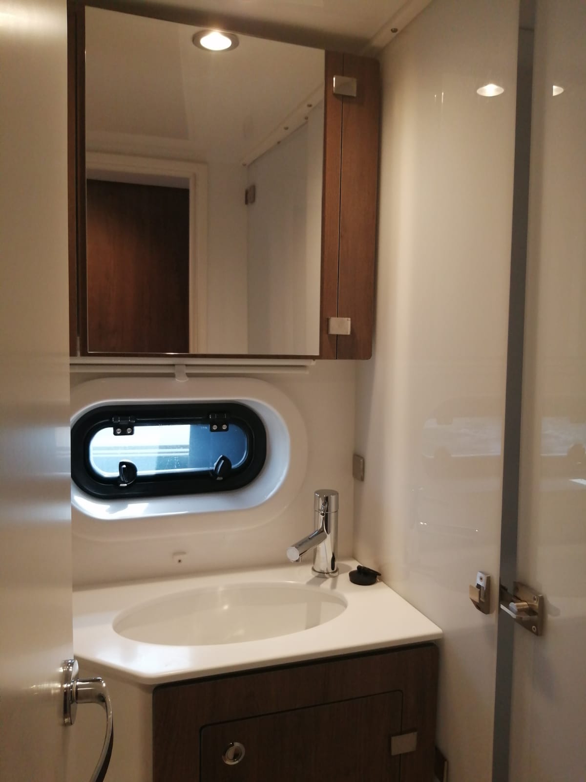 | Outside | Anker mit Kette, Cockpitdusche, Cockpitpolster, elektr. Ankerwinsch, elektr. Großwinsch, Gangway, Polster auf Flybridge, Solaranlage, Windex |