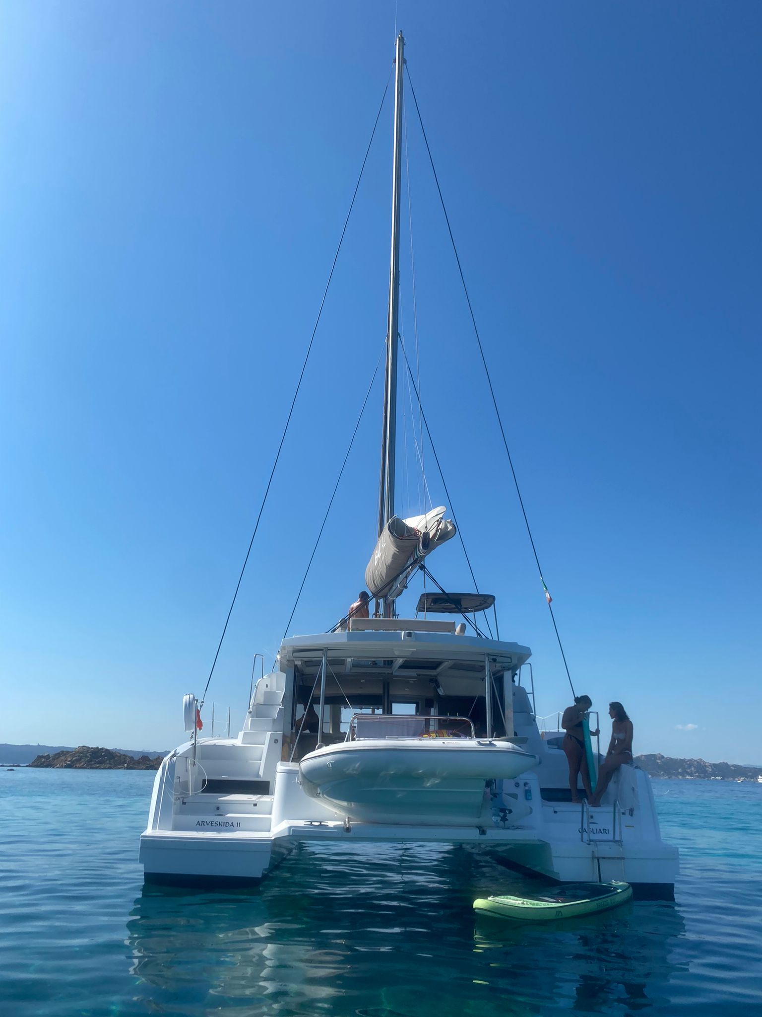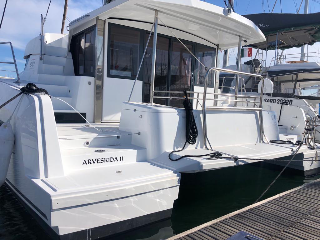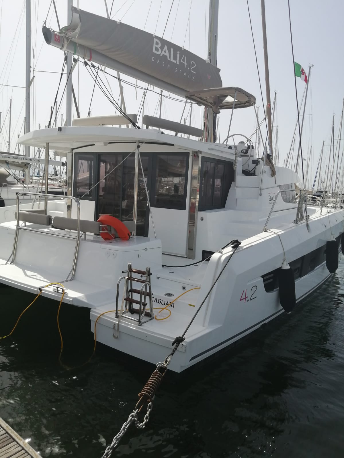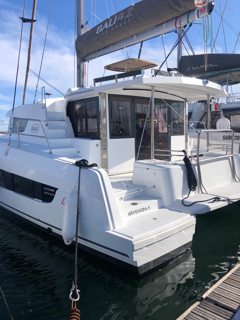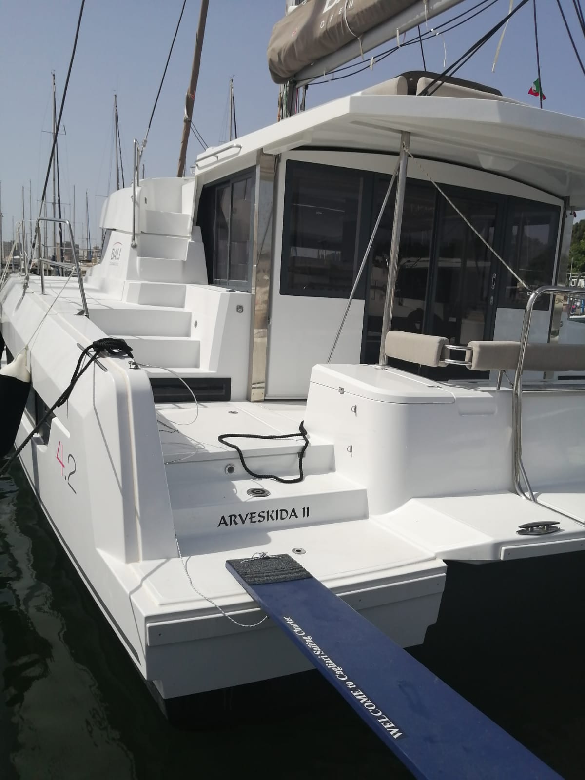 | Outside | Anker mit Kette, Cockpitdusche, Cockpitpolster, elektr. Ankerwinsch, elektr. Großwinsch, Gangway, Polster auf Flybridge, Solaranlage, Windex |
