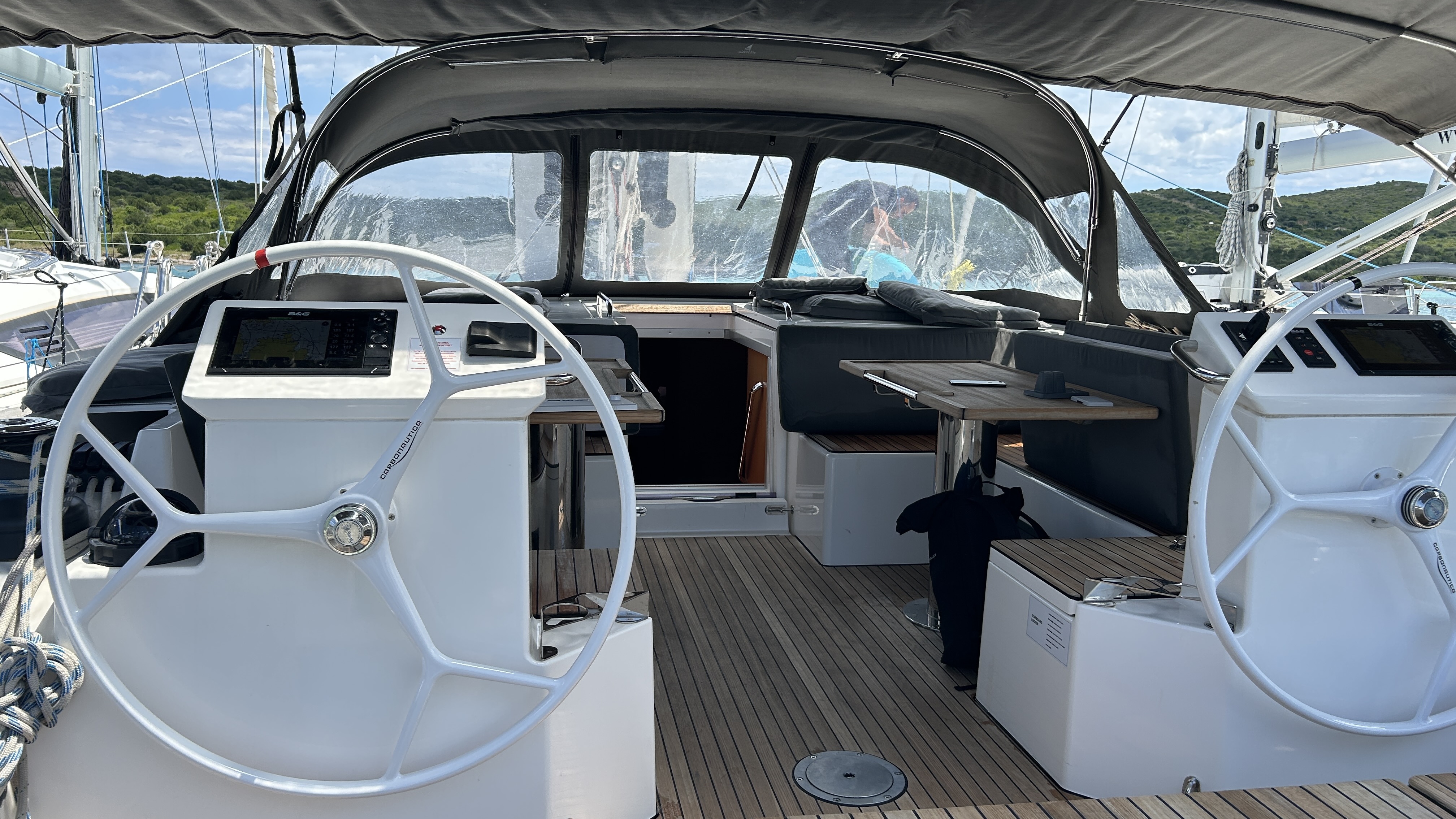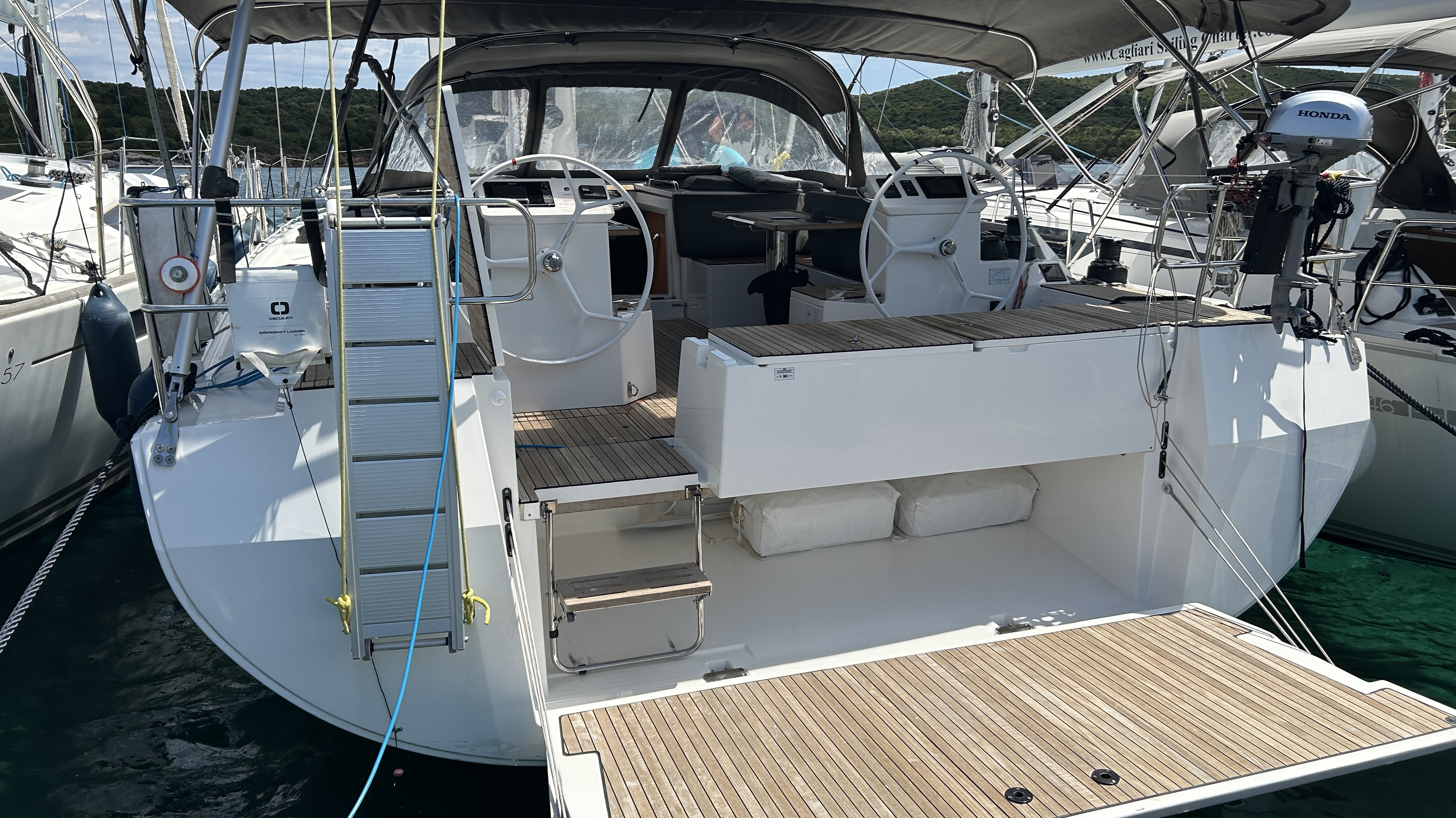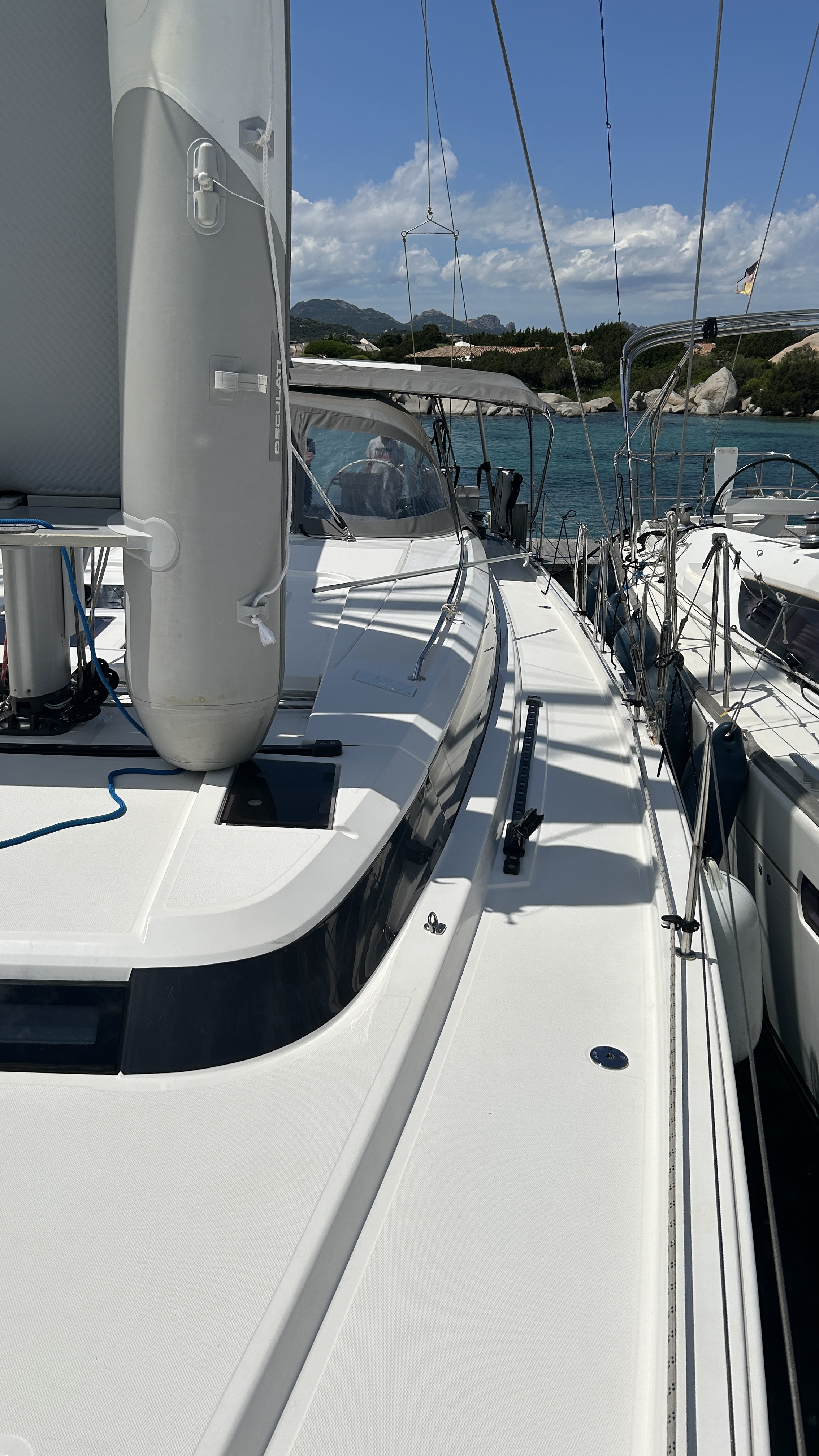 | Outside | 220 V-Landanschluss, Anker mit Kette, Ankerwinsch, Biminitop, Bootshaken, Cockpitdusche, Cockpitlautsprecher, Cockpitpolster, Cockpittisch, Dieselkanister , elektr. Ankerwinsch, elektr. Genuawinsch, Fender, Festmacherleinen, Gangway, Kugelfender, Kunststoff-Eimer (Pütz), Sprayhood, Teak im Cockpit, Wantenschneider, Wasserkanister , Wasserschlauch, Windex |