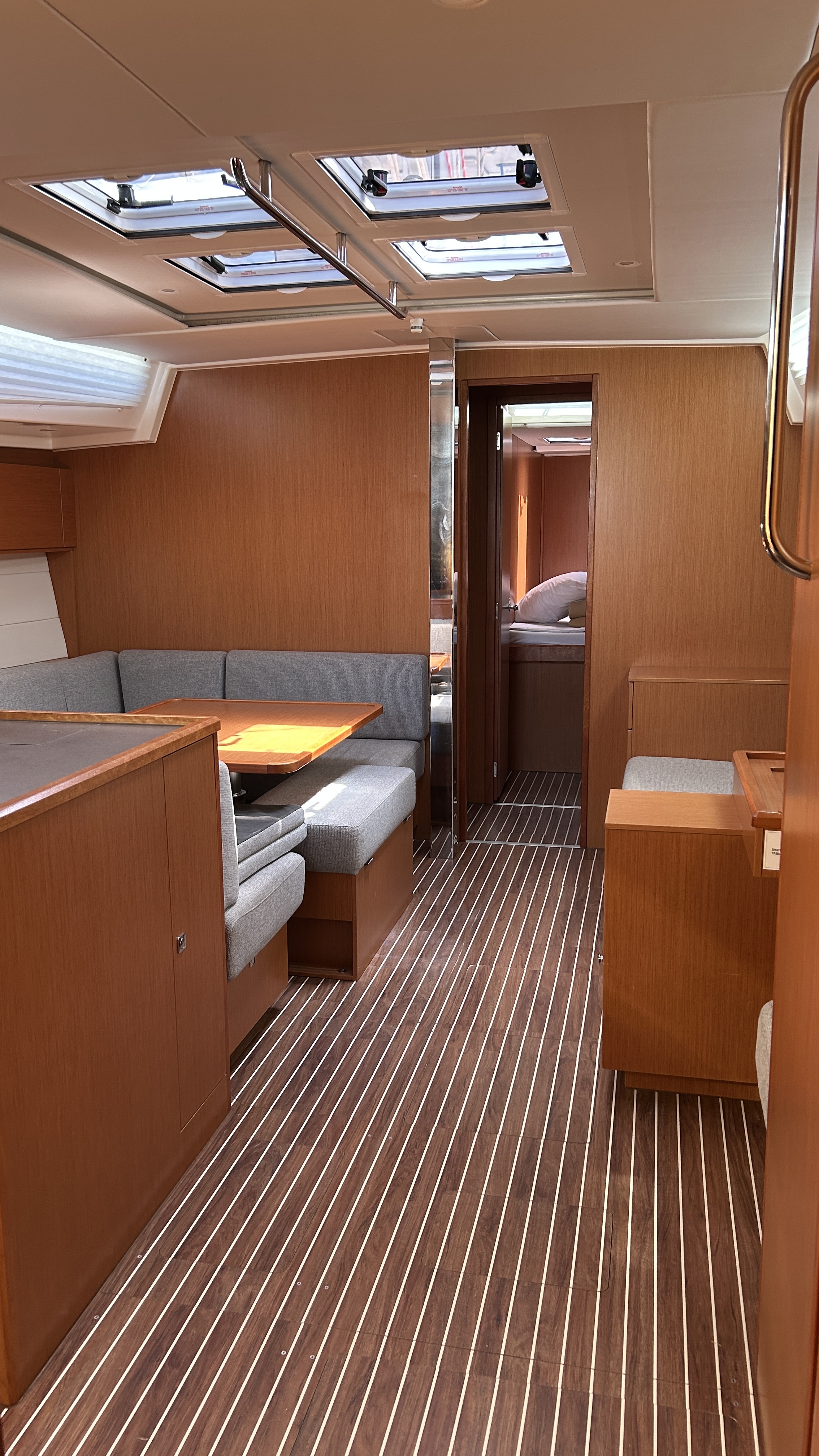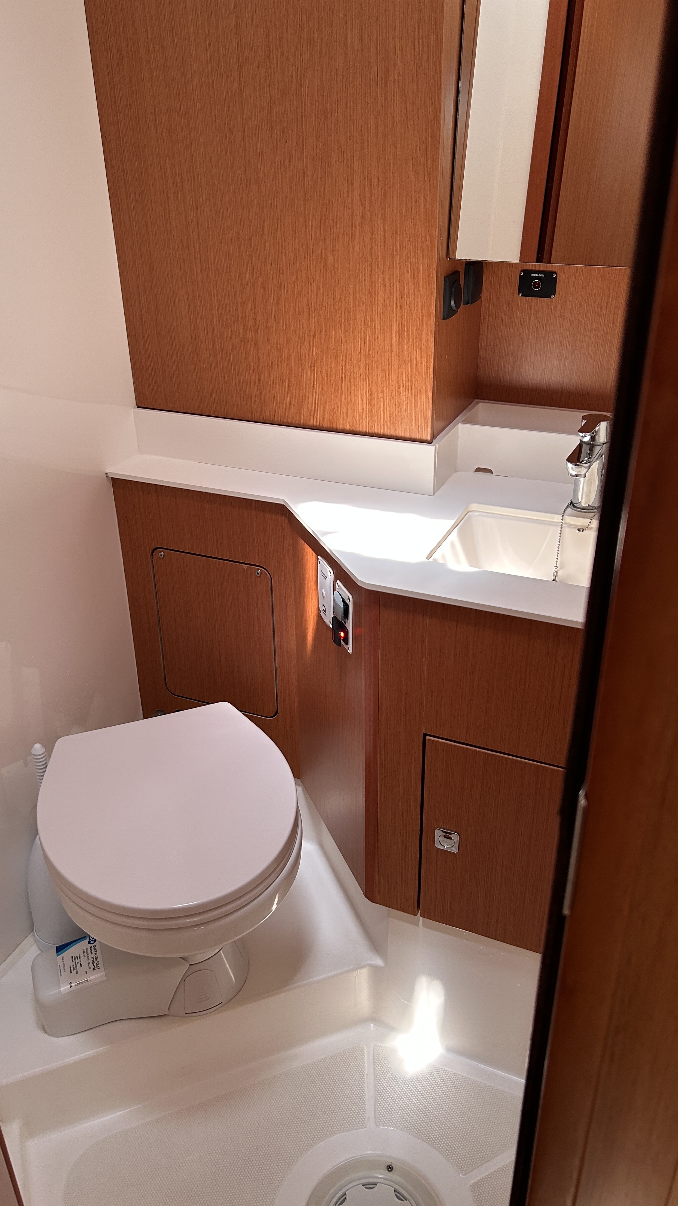 | Inside | Inverter 12V/220V, Kühlschrank, Kühlschrank mit Gefrierfach, Ladegerät, Luftpumpe für Beiboot, Pantryausstattung, Radio mit USB, Bluetooth und AUX-In, Salontisch absenkbar, Warmwasser, WC (elektr.) |
