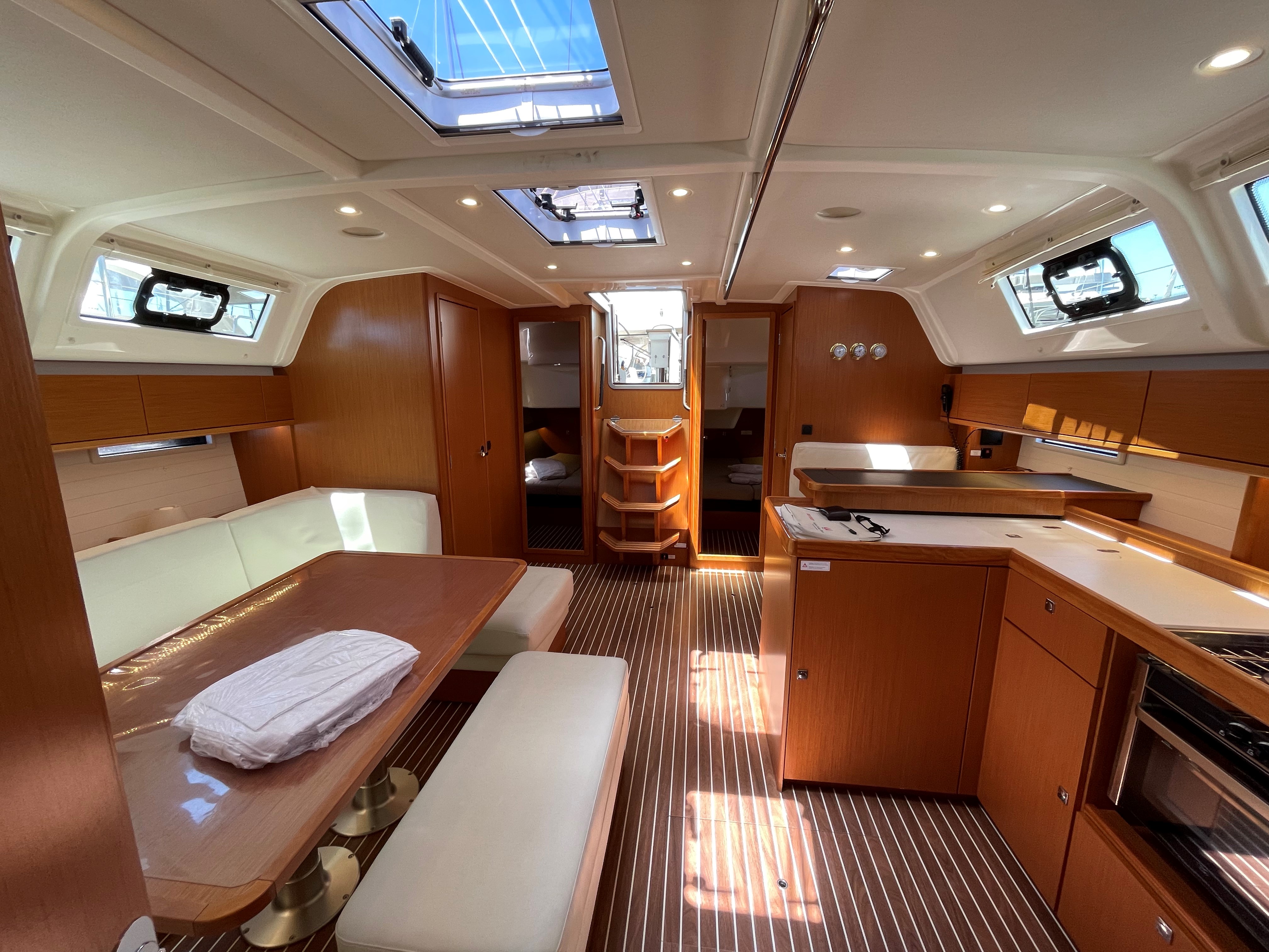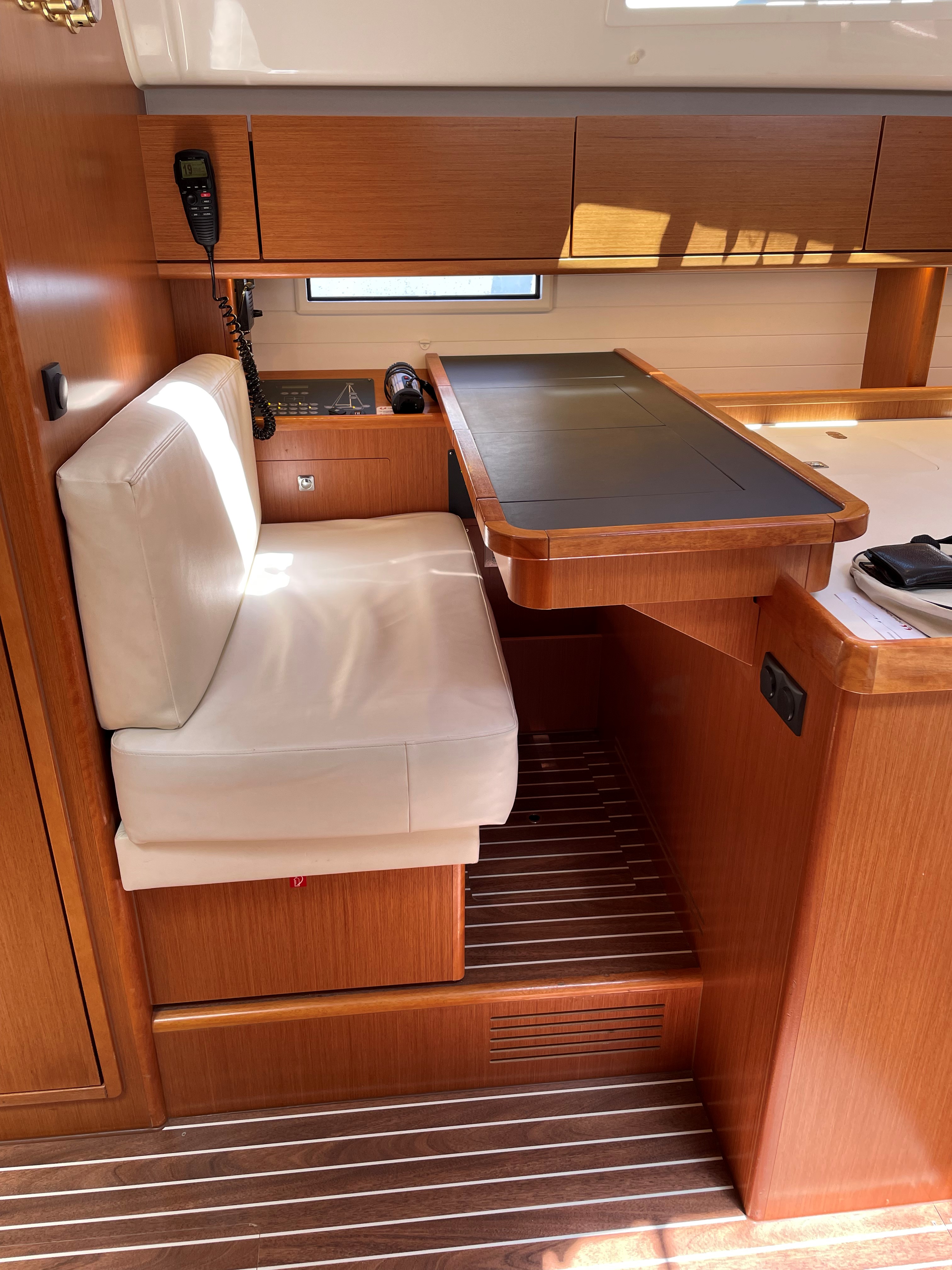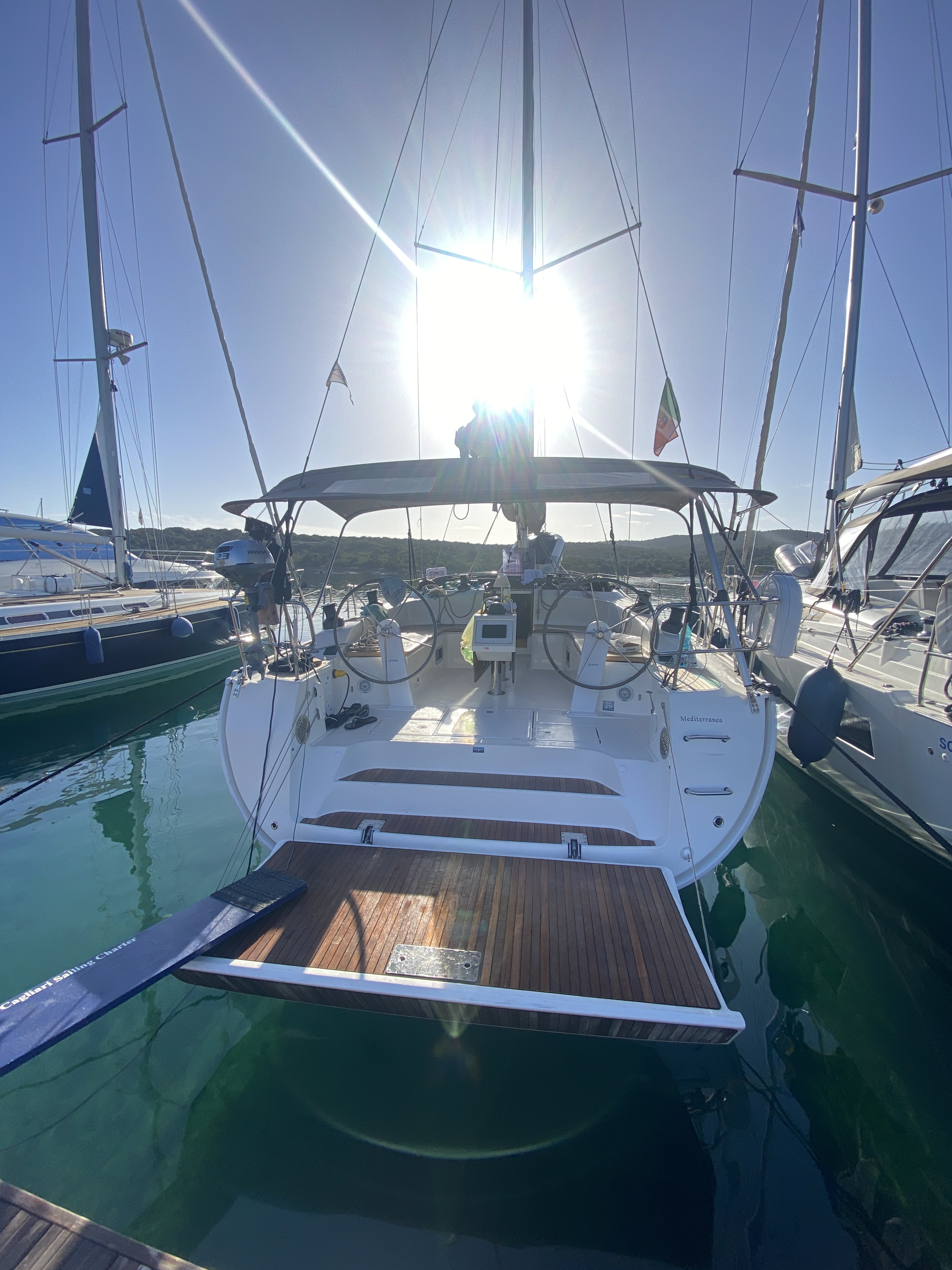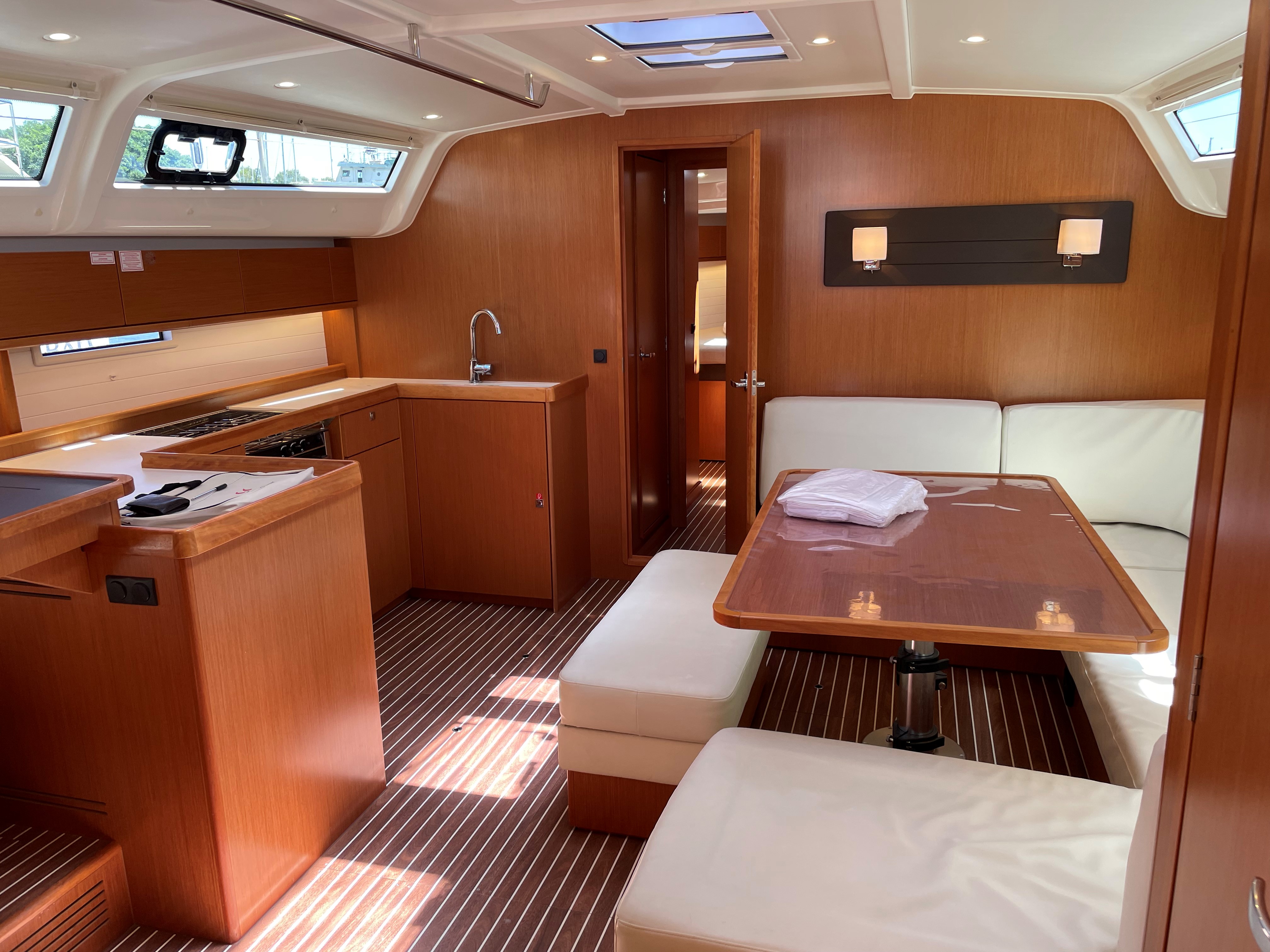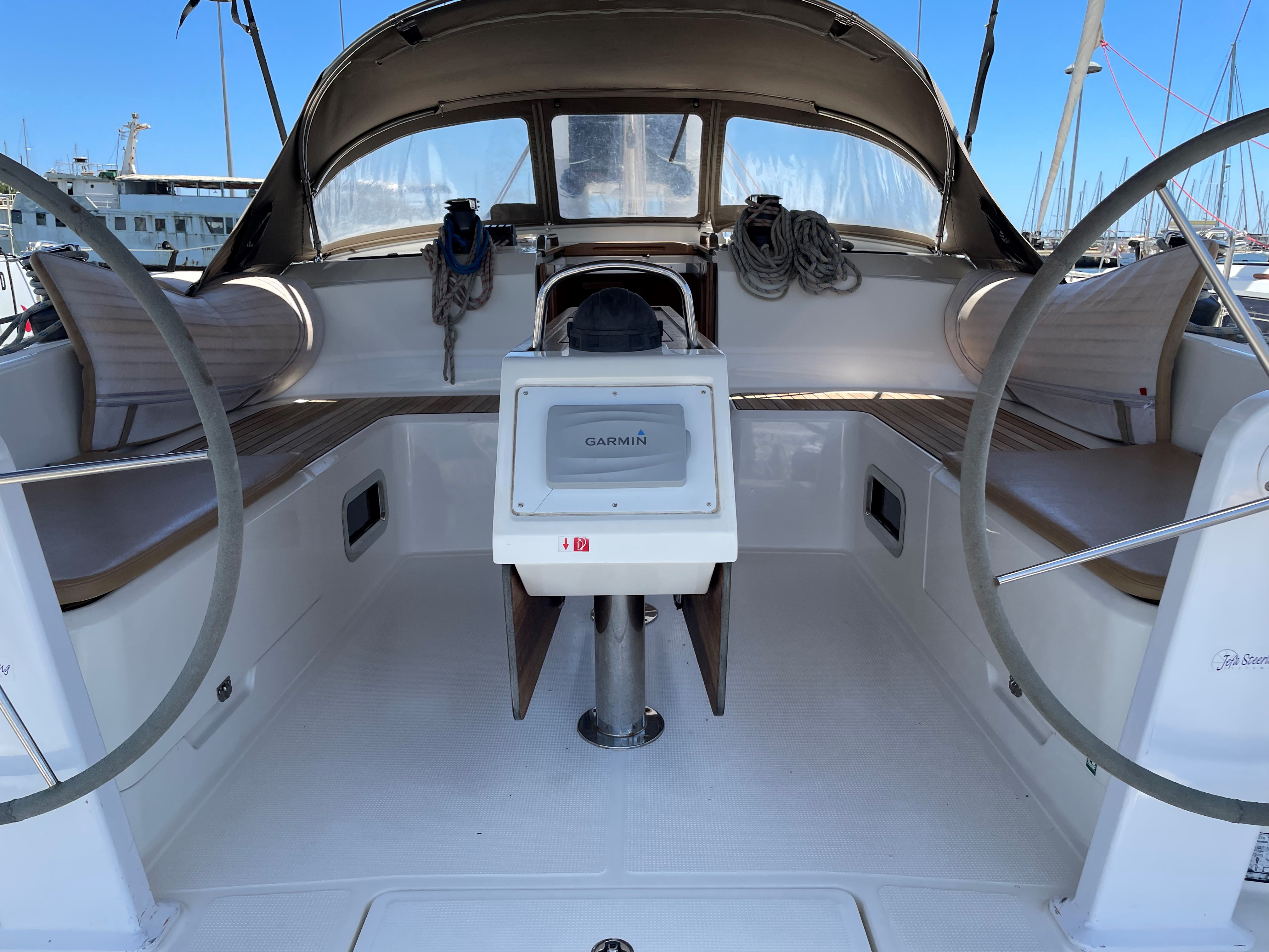 | Outside | Anker mit Kette, Außendusche, Badeplattform, Biminitop, Cockpitdusche, Cockpitlautsprecher, Cockpitpolster, Cockpittisch, elektr. Ankerwinsch, Gangway, Selbstholende Winschen, Sprayhood, Teak im Cockpit, Windex |