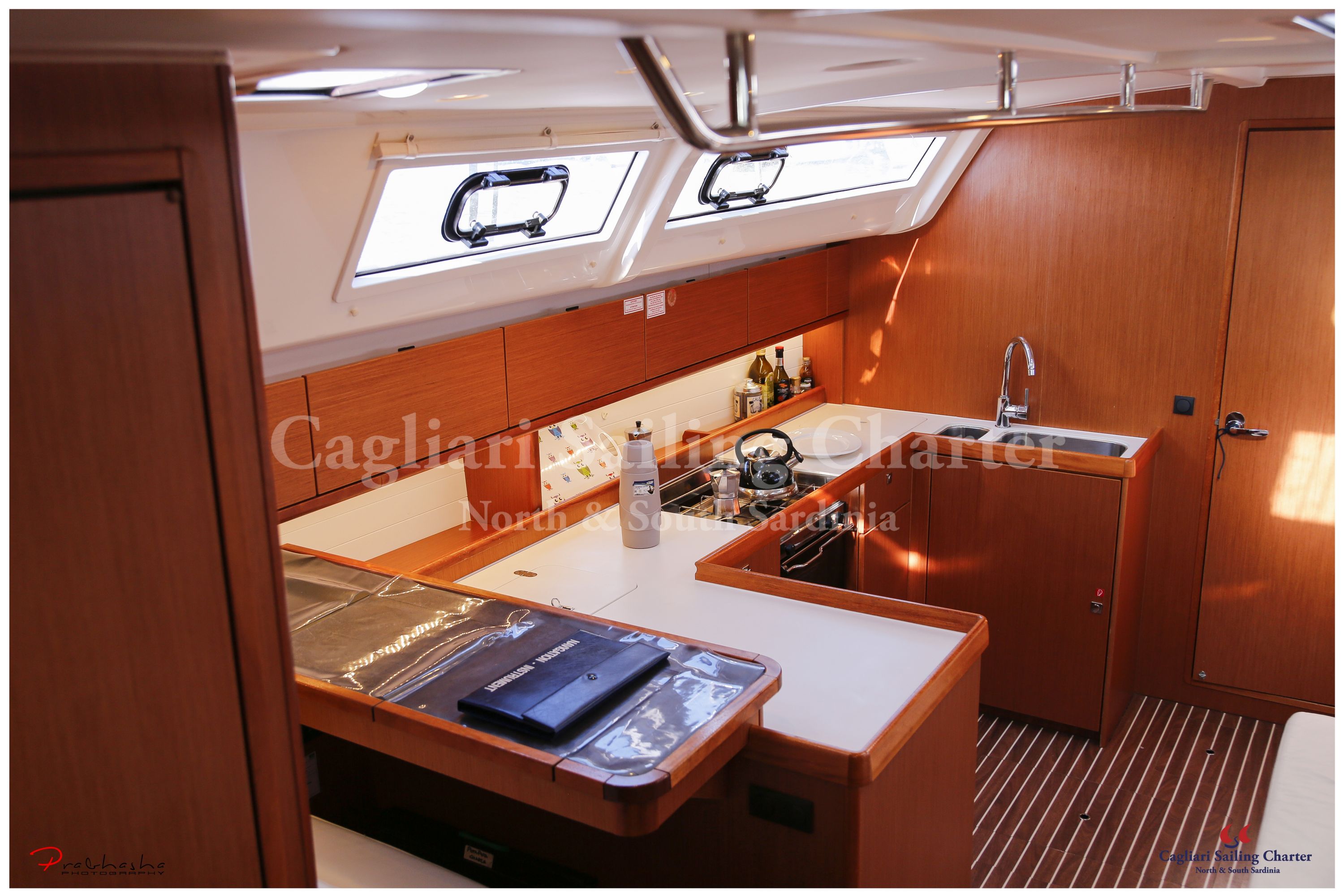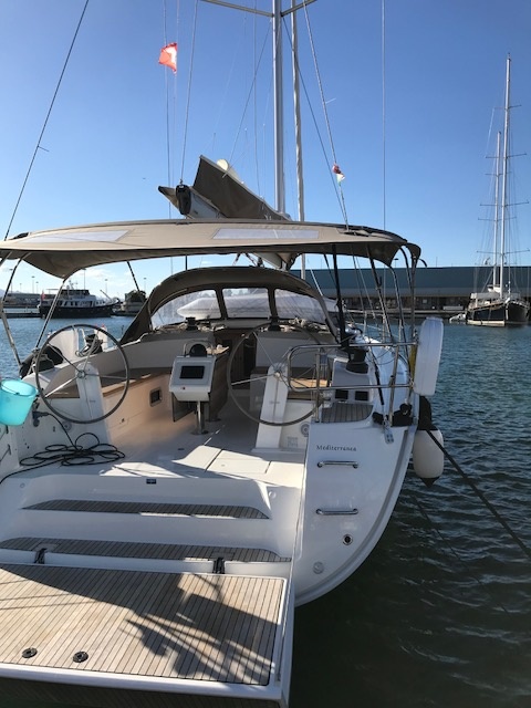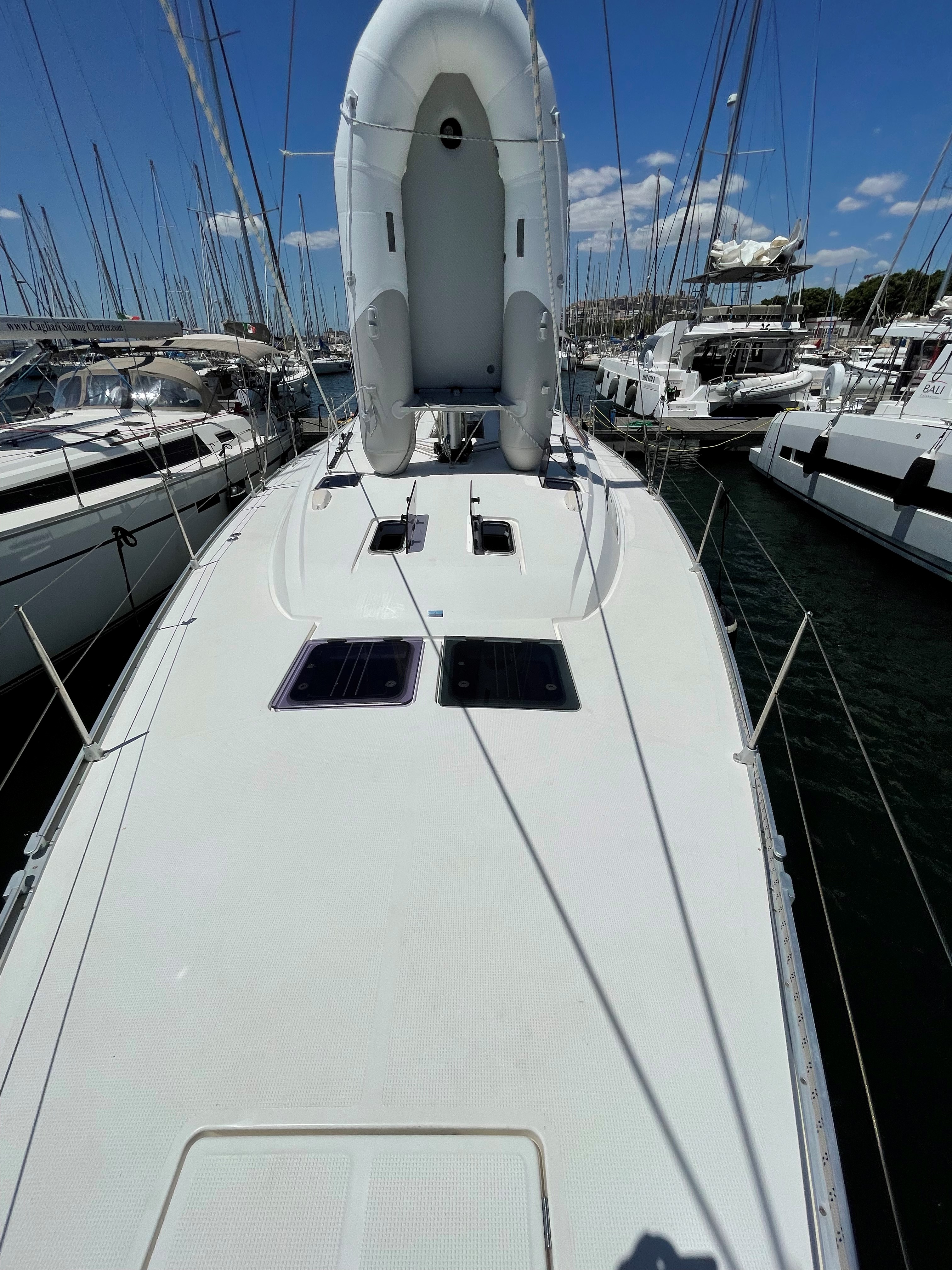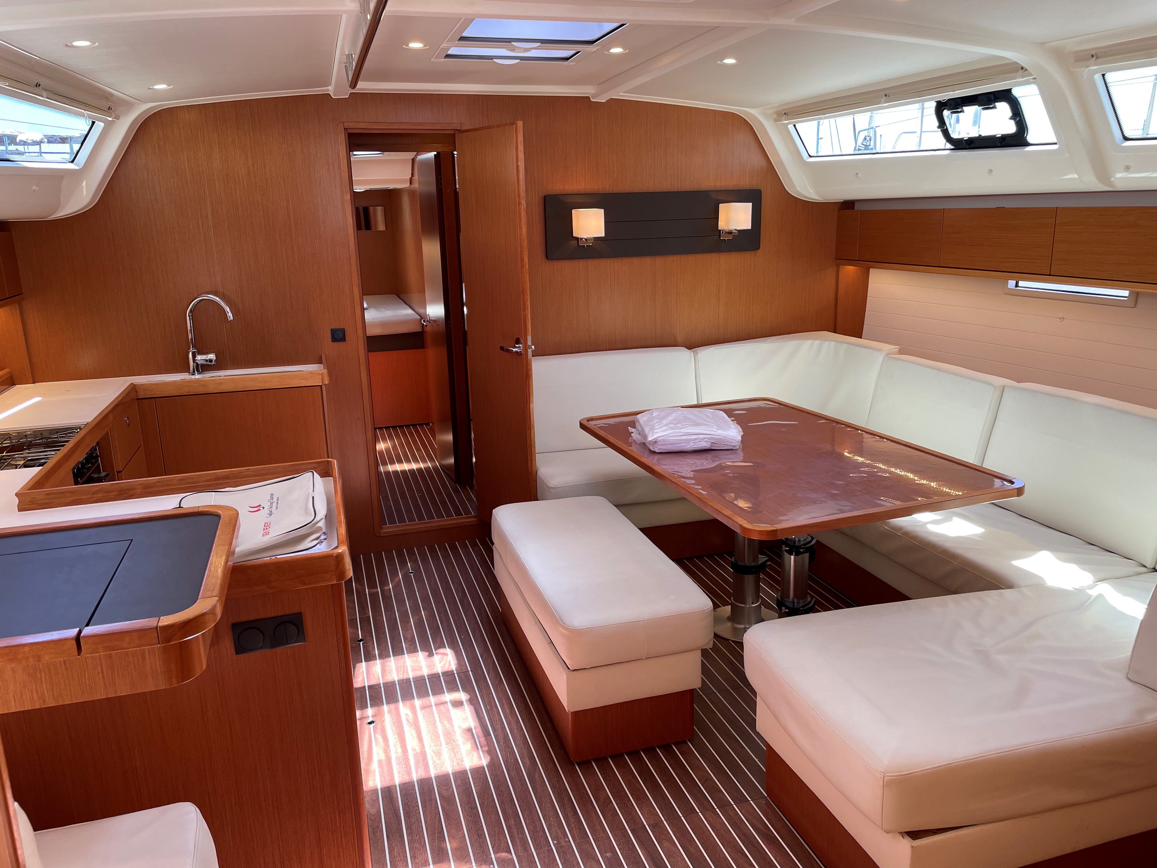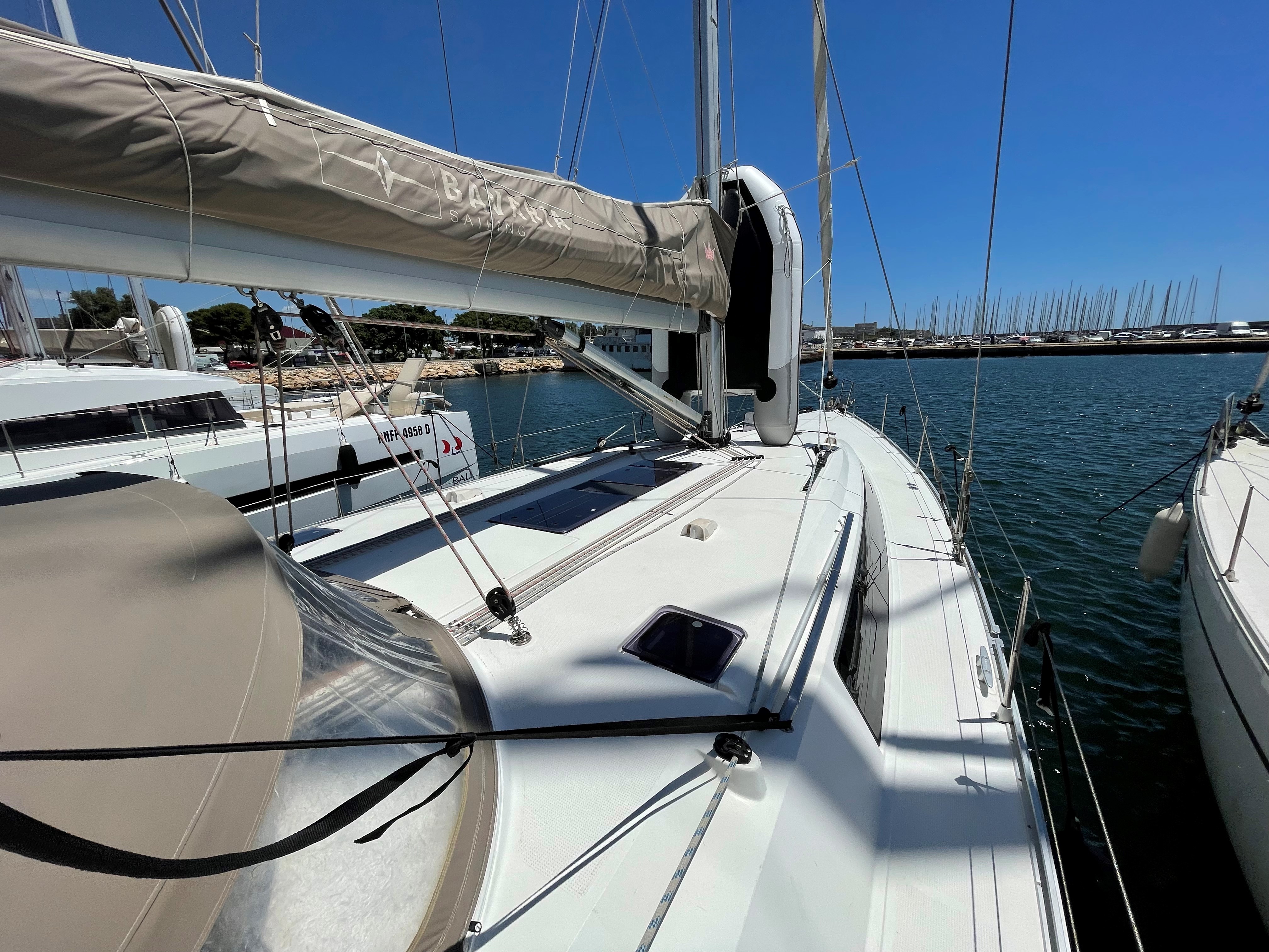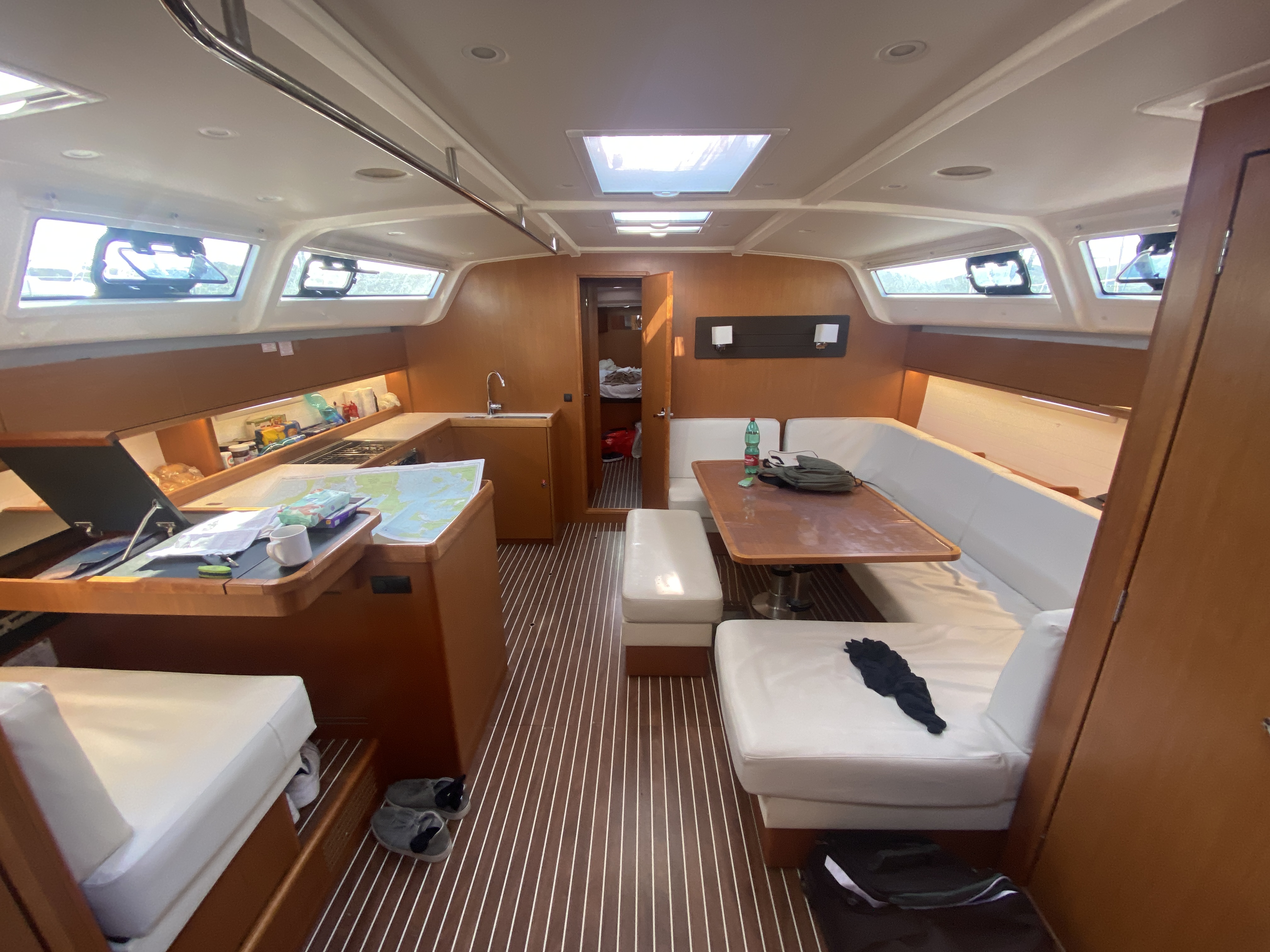 | Outside | Anker mit Kette, Außendusche, Badeplattform, Biminitop, Cockpitdusche, Cockpitlautsprecher, Cockpitpolster, Cockpittisch, elektr. Ankerwinsch, Gangway, Selbstholende Winschen, Sprayhood, Teak im Cockpit, Windex |