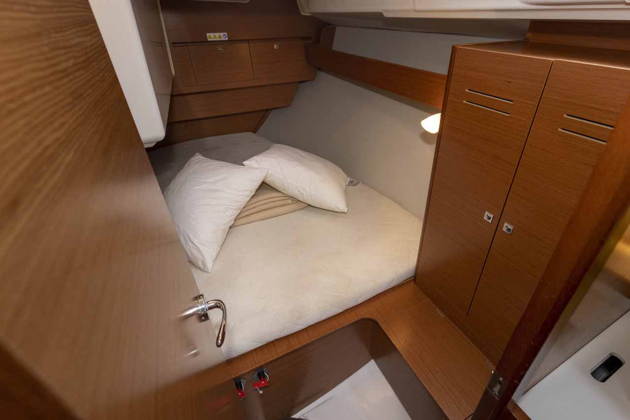 | Safety | Automatikwesten, Autopilot, Blitzboje, Bootsmannstuhl, Bordapotheke, Bordwerkzeug, Feuerlöscher, Lifebelts, Motor-Ersatzteile, Nebelhorn, Notsignale, Radarreflektor, Reparaturset für Beiboot, Rettungsinsel, Suchscheinwerfer, Taschenlampe, UKW-Funk m. DSC, Zweitanker |