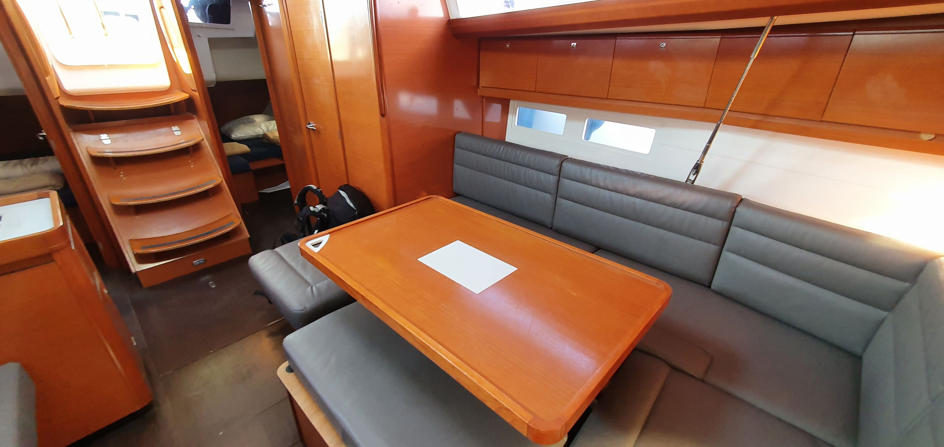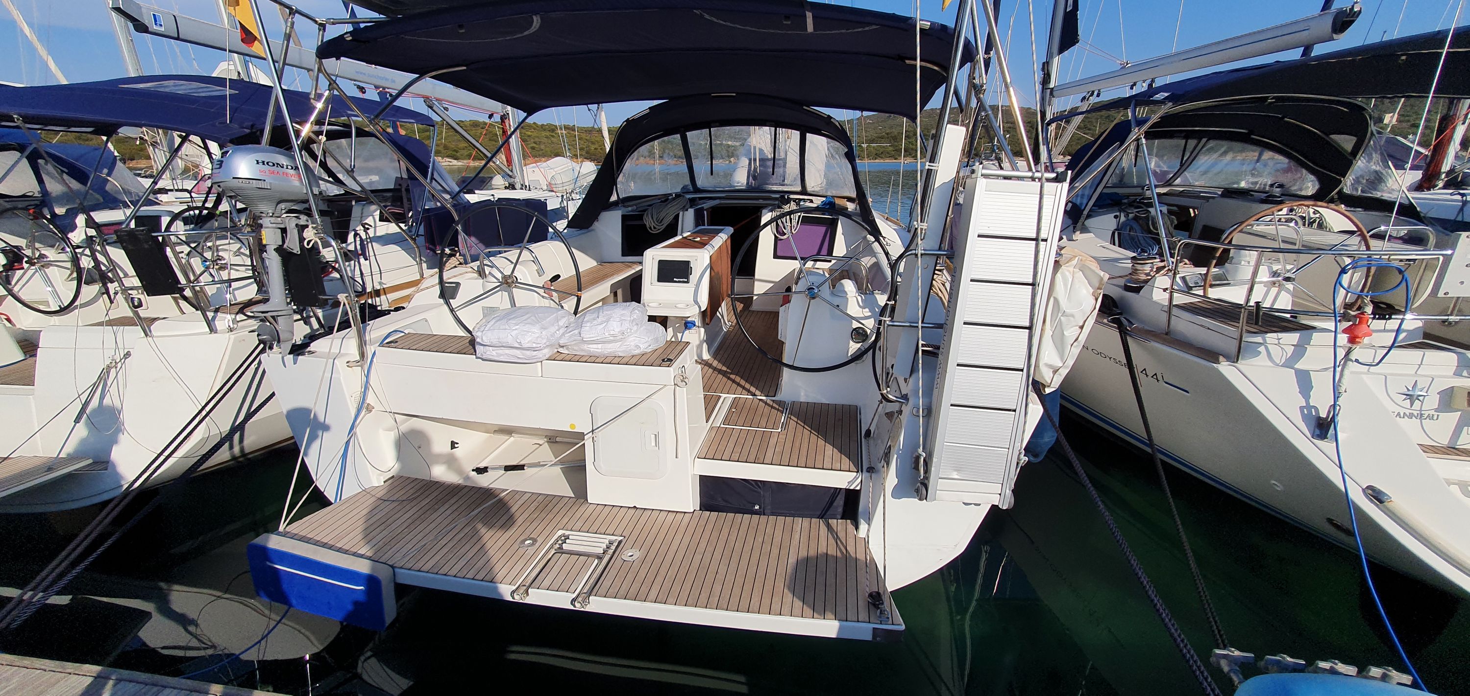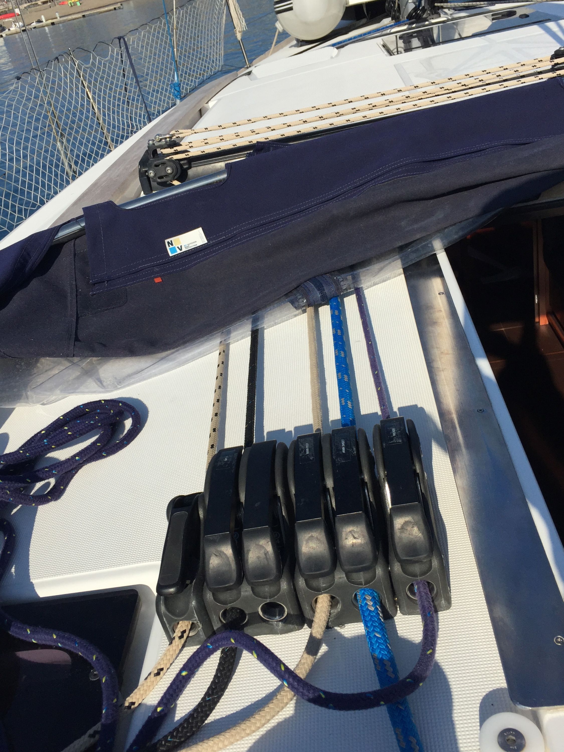 | Outside | 220 V-Landanschluss, Anker mit Kette, Ankerwinsch, Biminitop, Bootshaken, Cockpitdusche, Cockpitlautsprecher, Cockpitpolster, Cockpittisch, Dieselkanister , elektr. Ankerwinsch, Fender, Festmacherleinen, Gangway, Kugelfender, Kunststoff-Eimer (Pütz), Lifeline System, Sprayhood, Teak im Cockpit, Wantenschneider, Wasserkanister , Wasserschlauch, Windex |