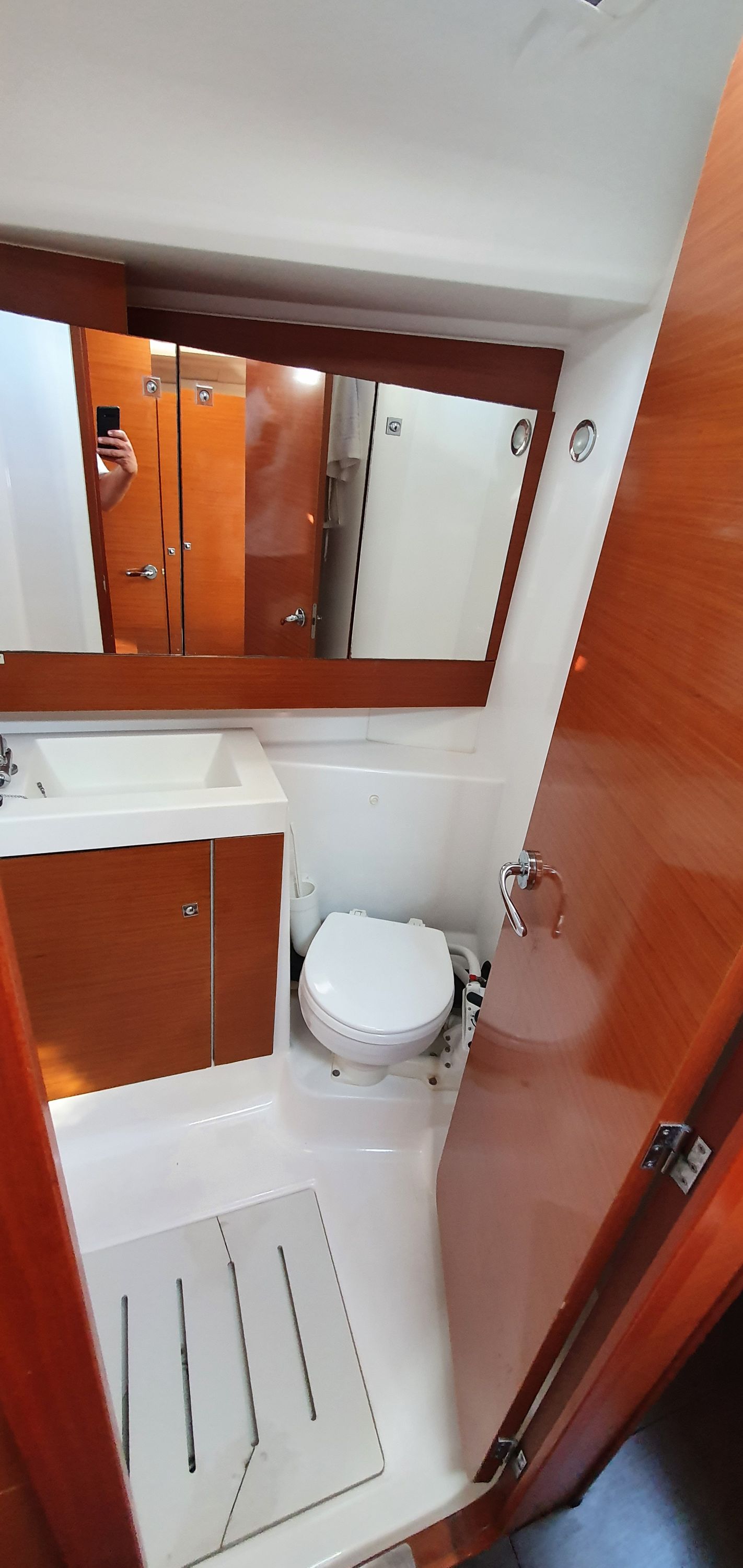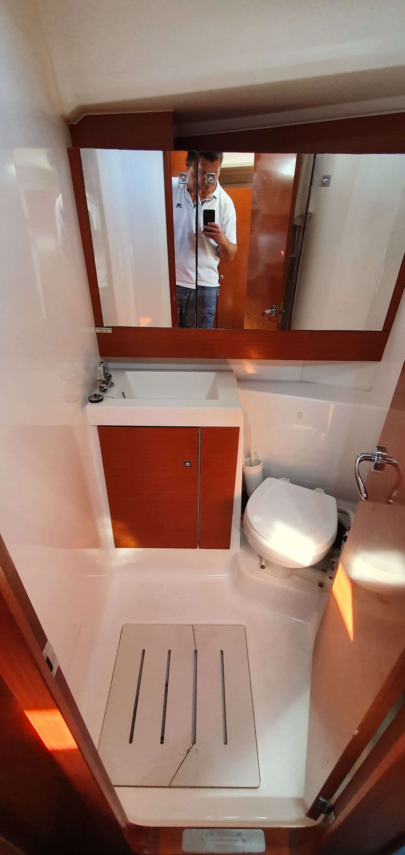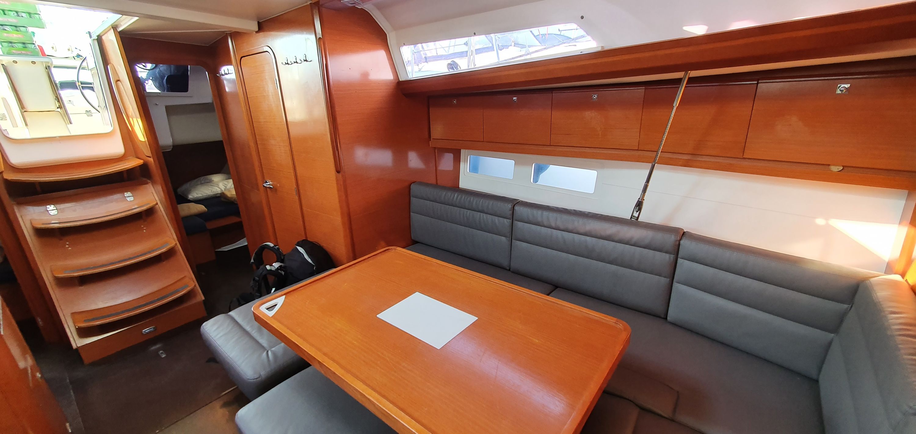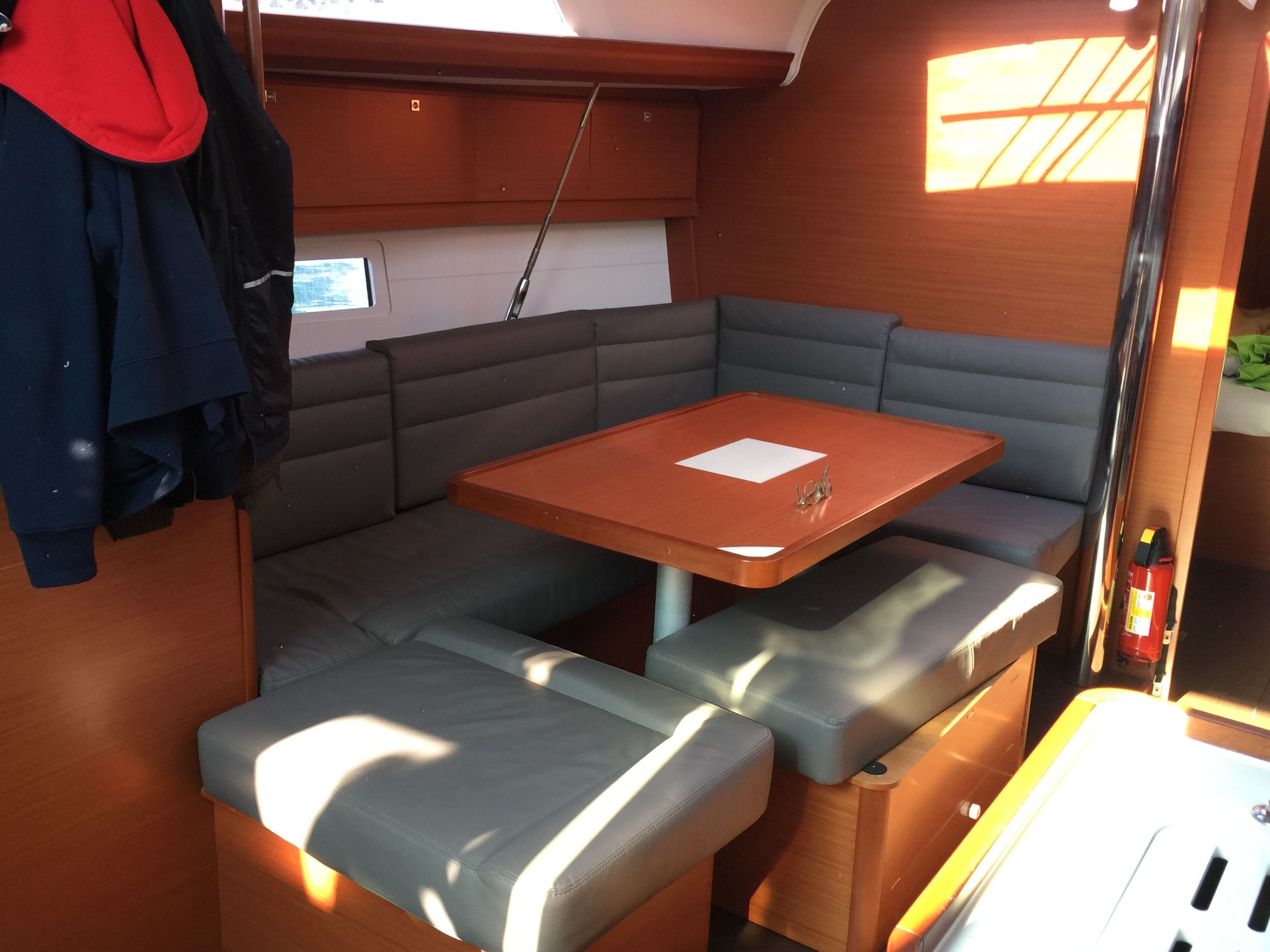 | Outside | 220 V-Landanschluss, Anker mit Kette, Ankerwinsch, Biminitop, Bootshaken, Cockpitdusche, Cockpitlautsprecher, Cockpitpolster, Cockpittisch, Dieselkanister , elektr. Ankerwinsch, Fender, Festmacherleinen, Gangway, Kugelfender, Kunststoff-Eimer (Pütz), Lifeline System, Sprayhood, Teak im Cockpit, Wantenschneider, Wasserkanister , Wasserschlauch, Windex |